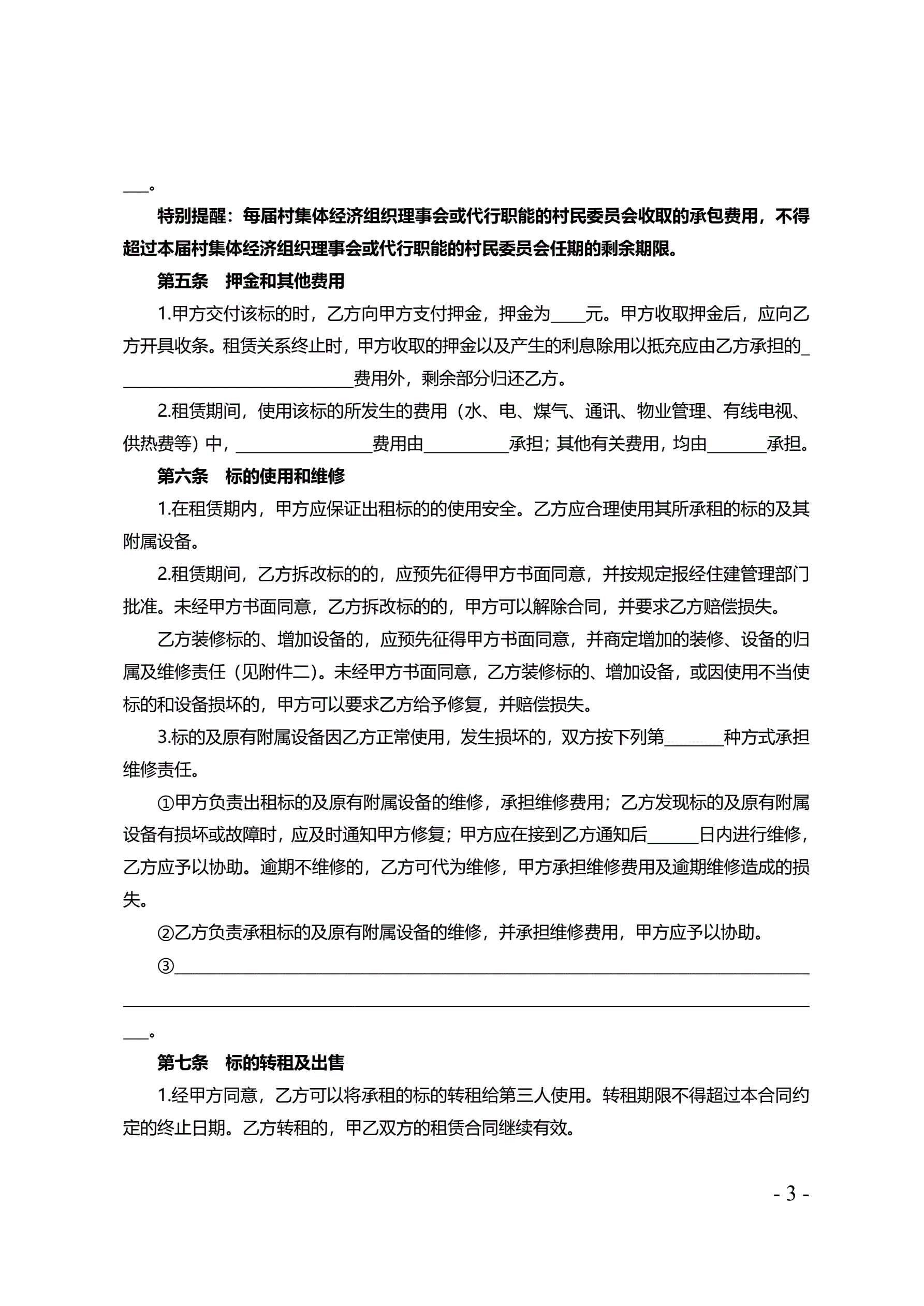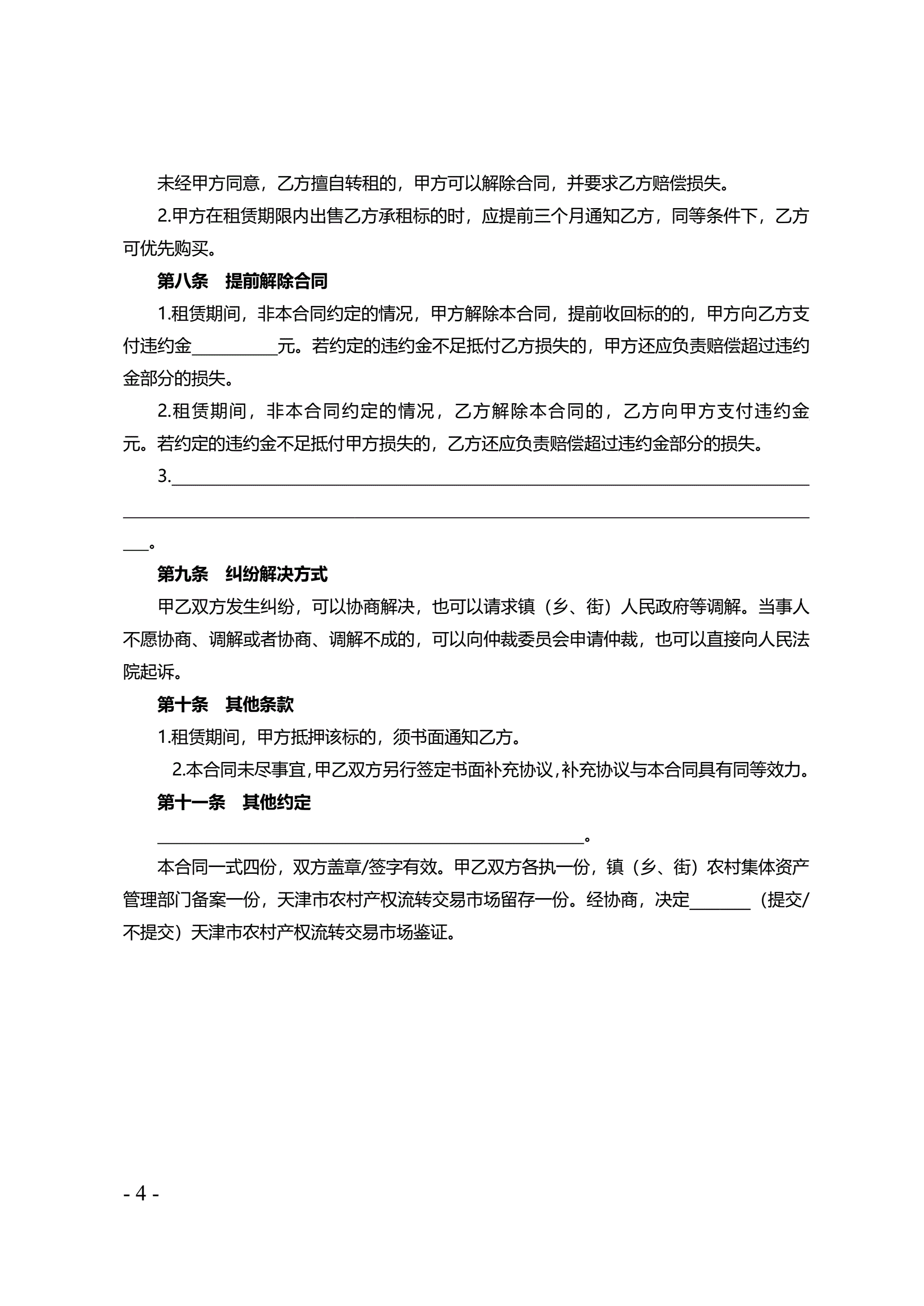 >天津市农村集体房屋租赁合同
