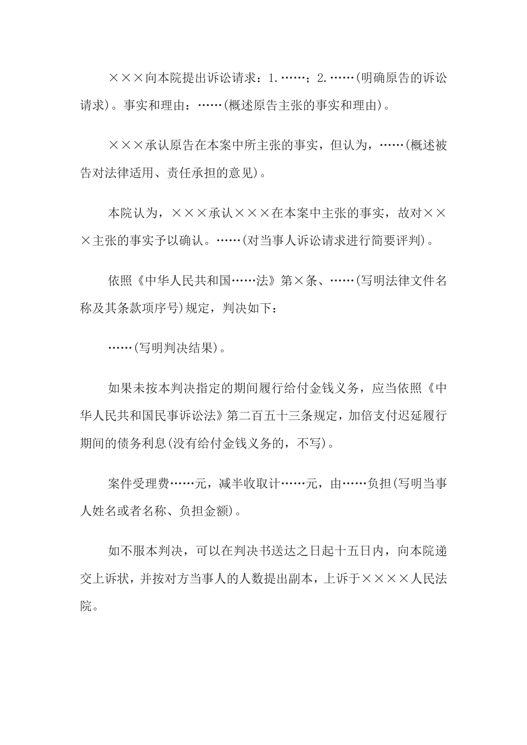 >民事判决书(当事人对案件事实没有争议的用)