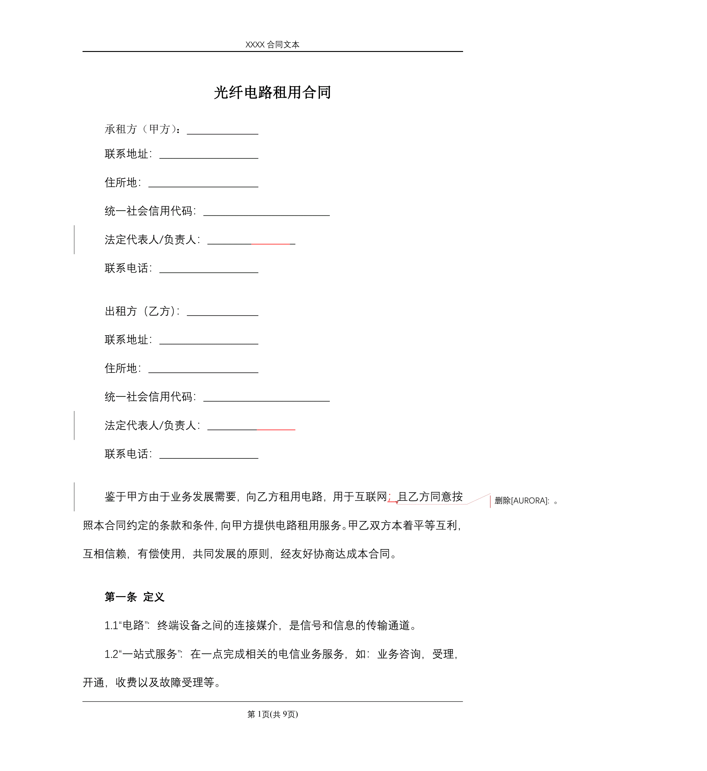 光纤电路租用合同