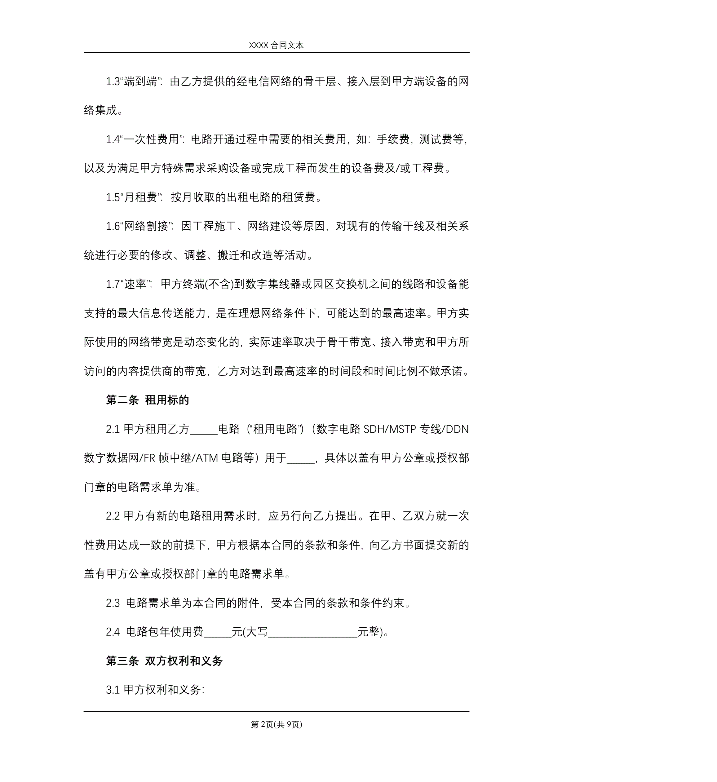 >光纤电路租用合同
