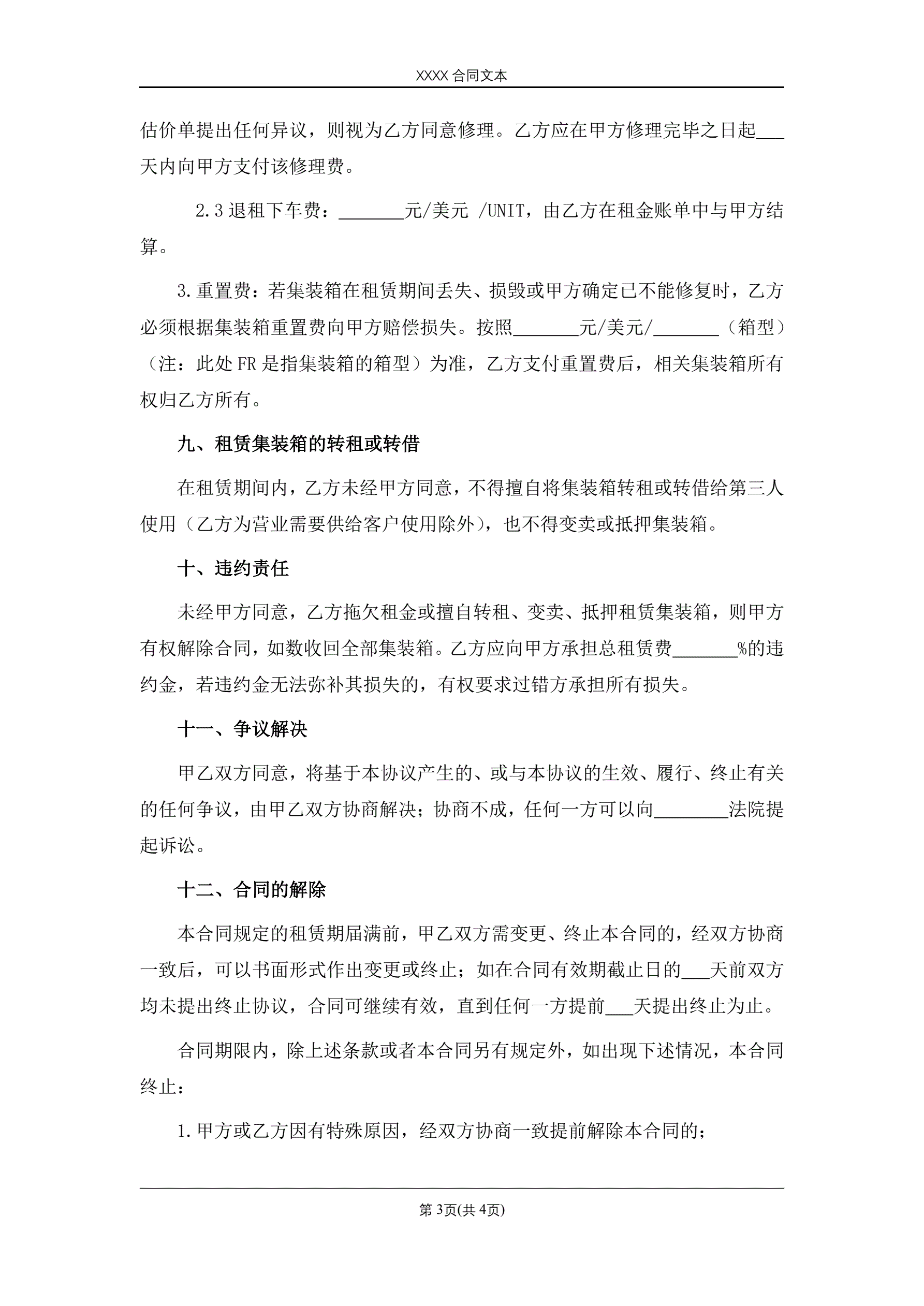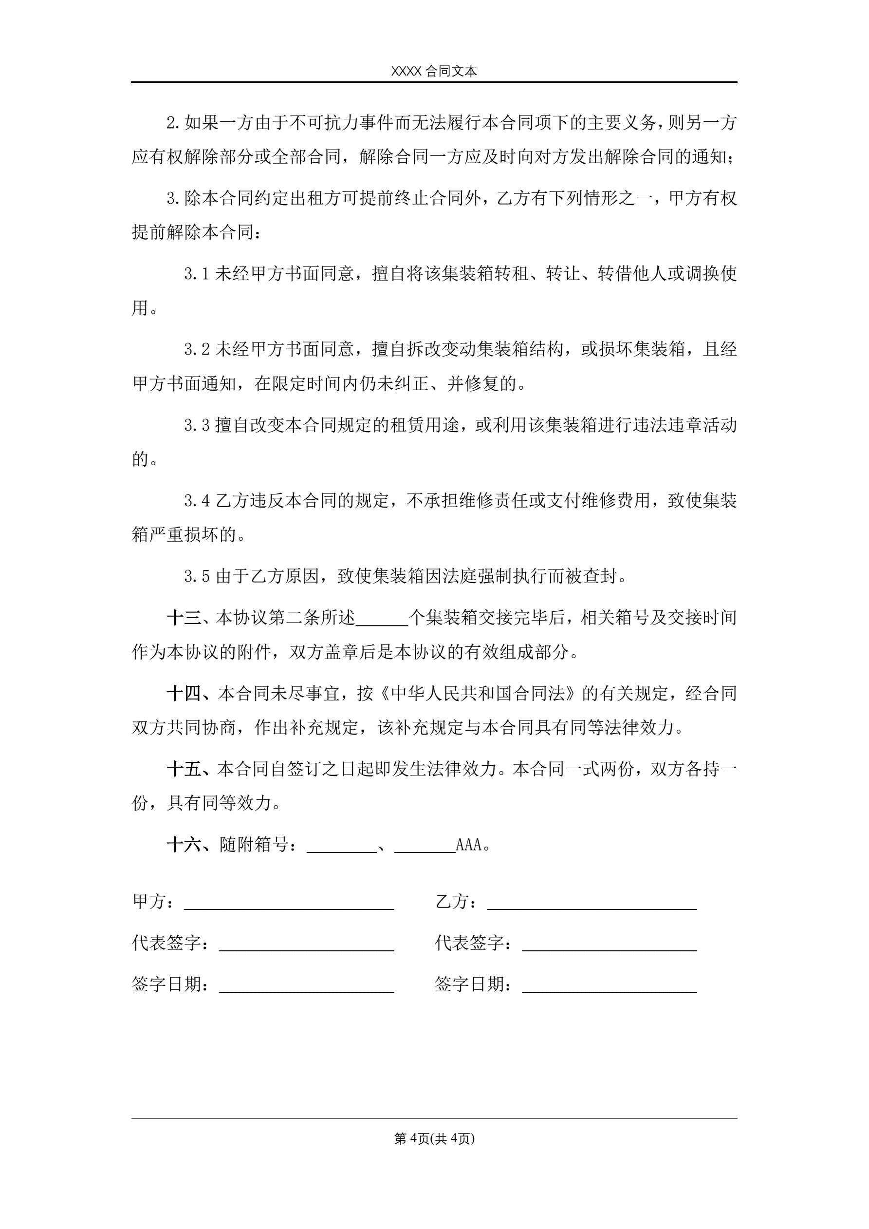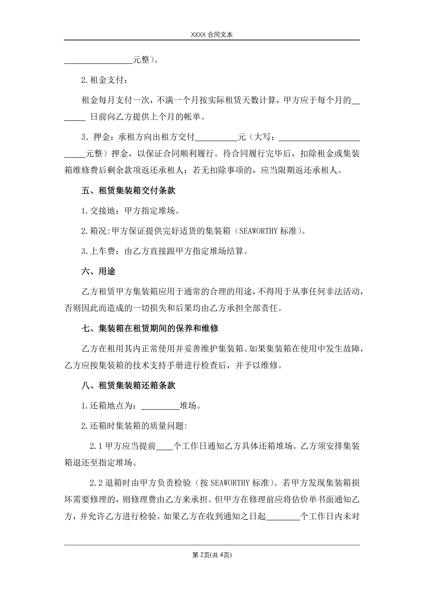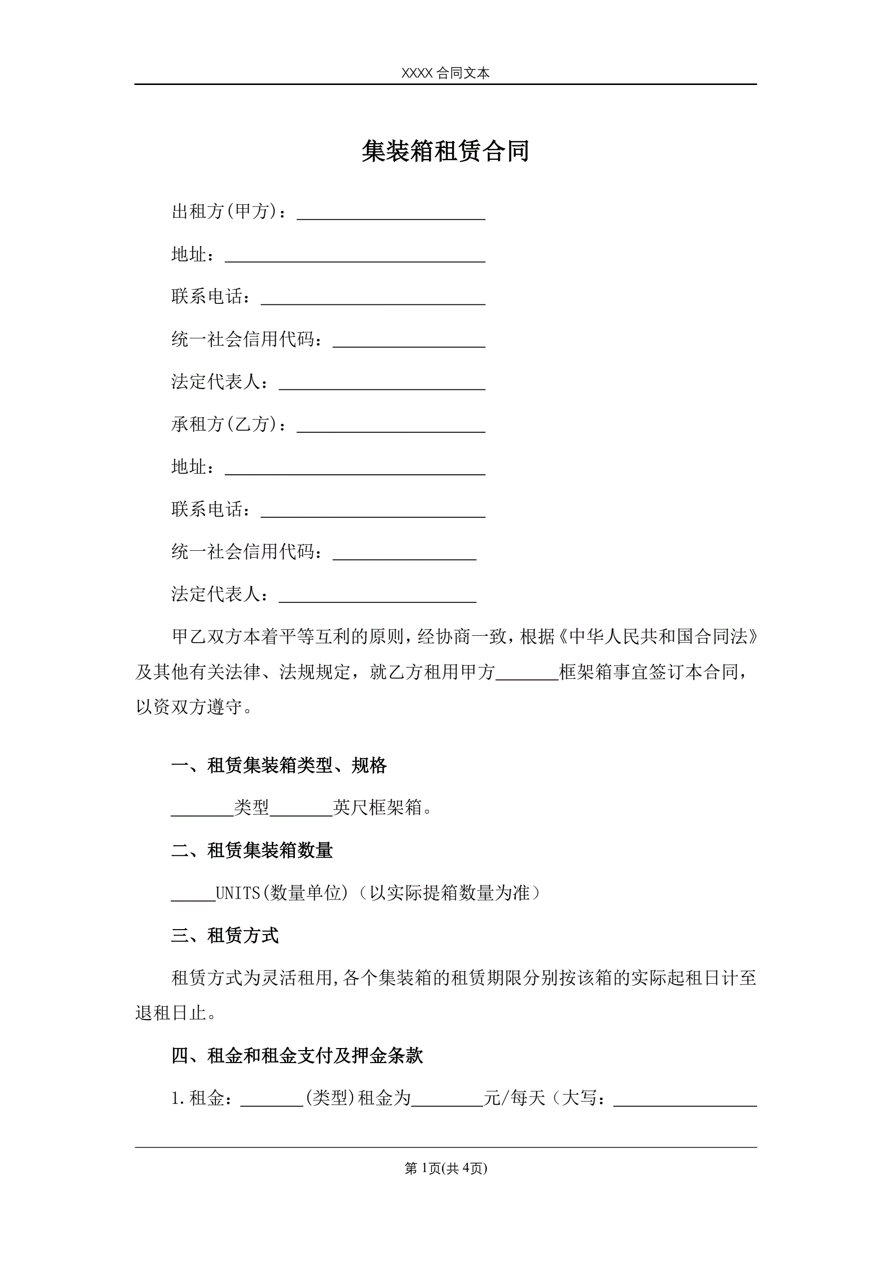 合同名称:集装箱租赁合同