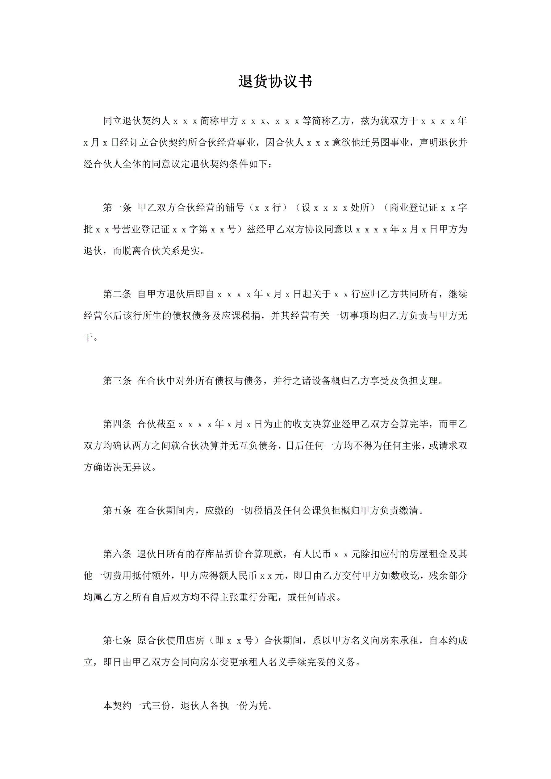 >退伙协议
