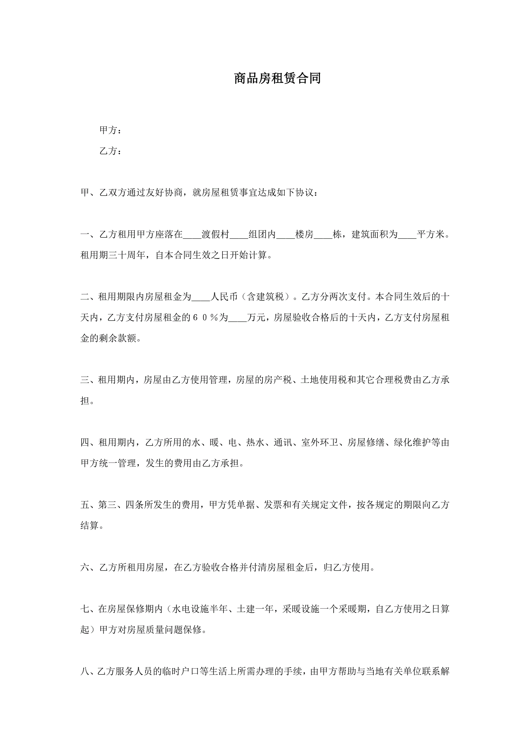 合同名称:商品房租赁合同