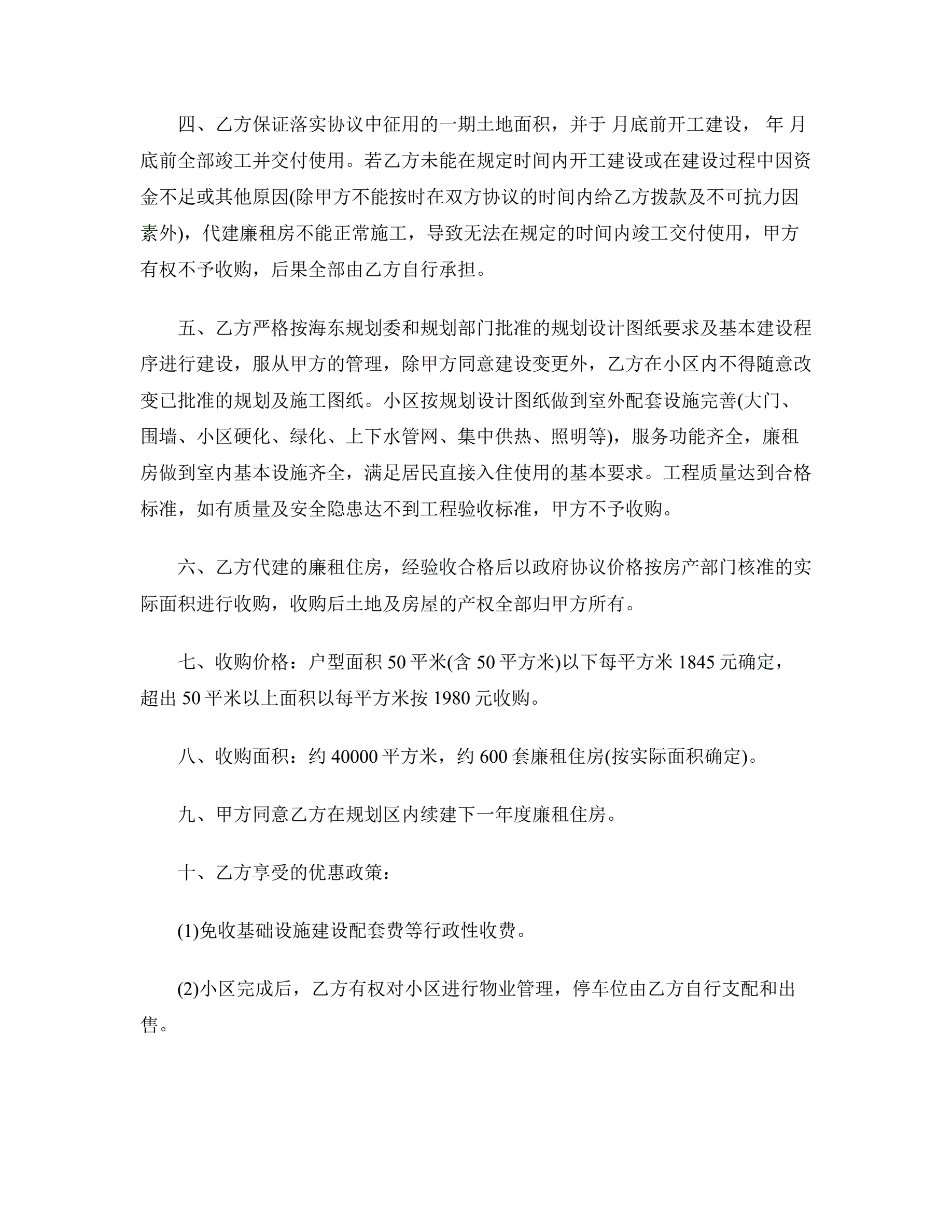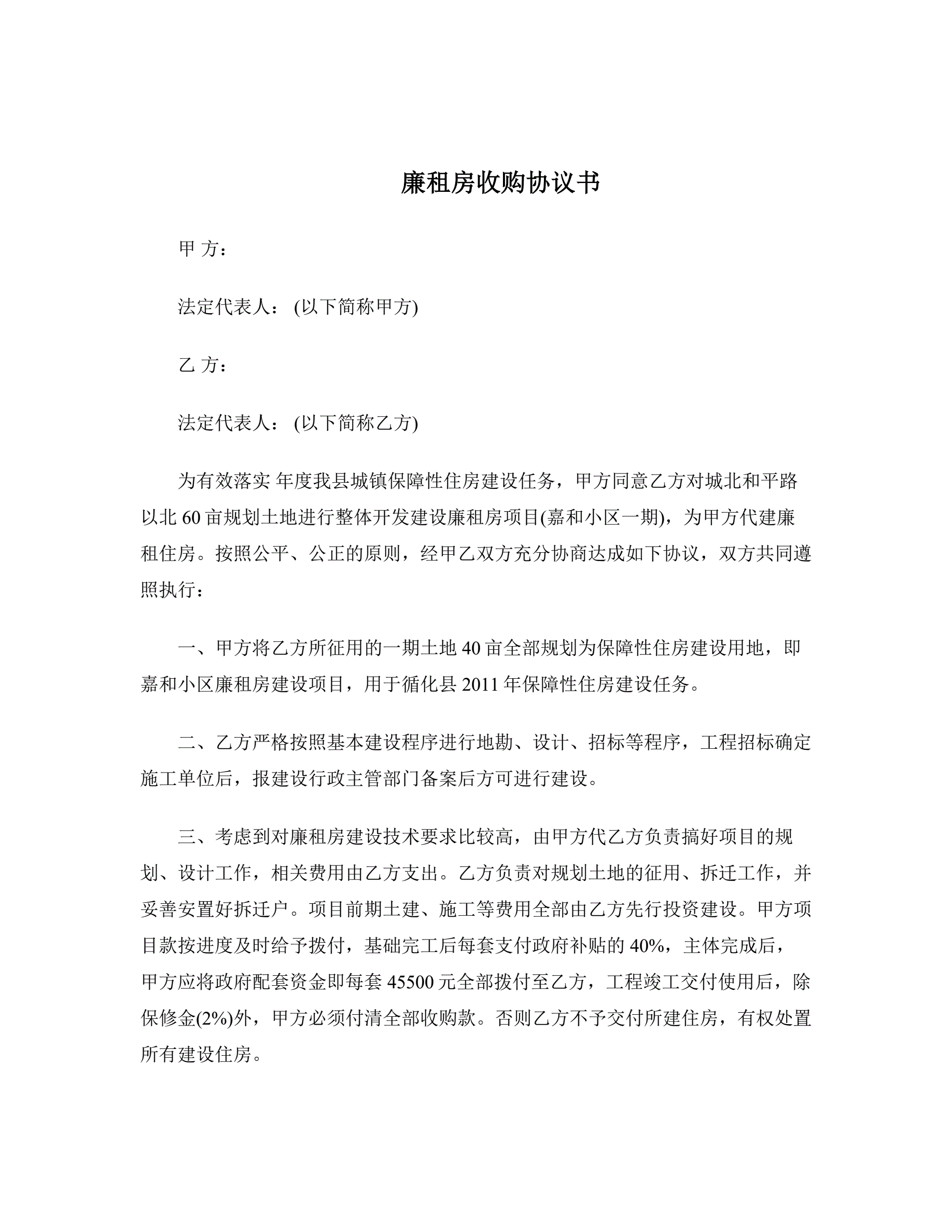 >廉租房收购协议书