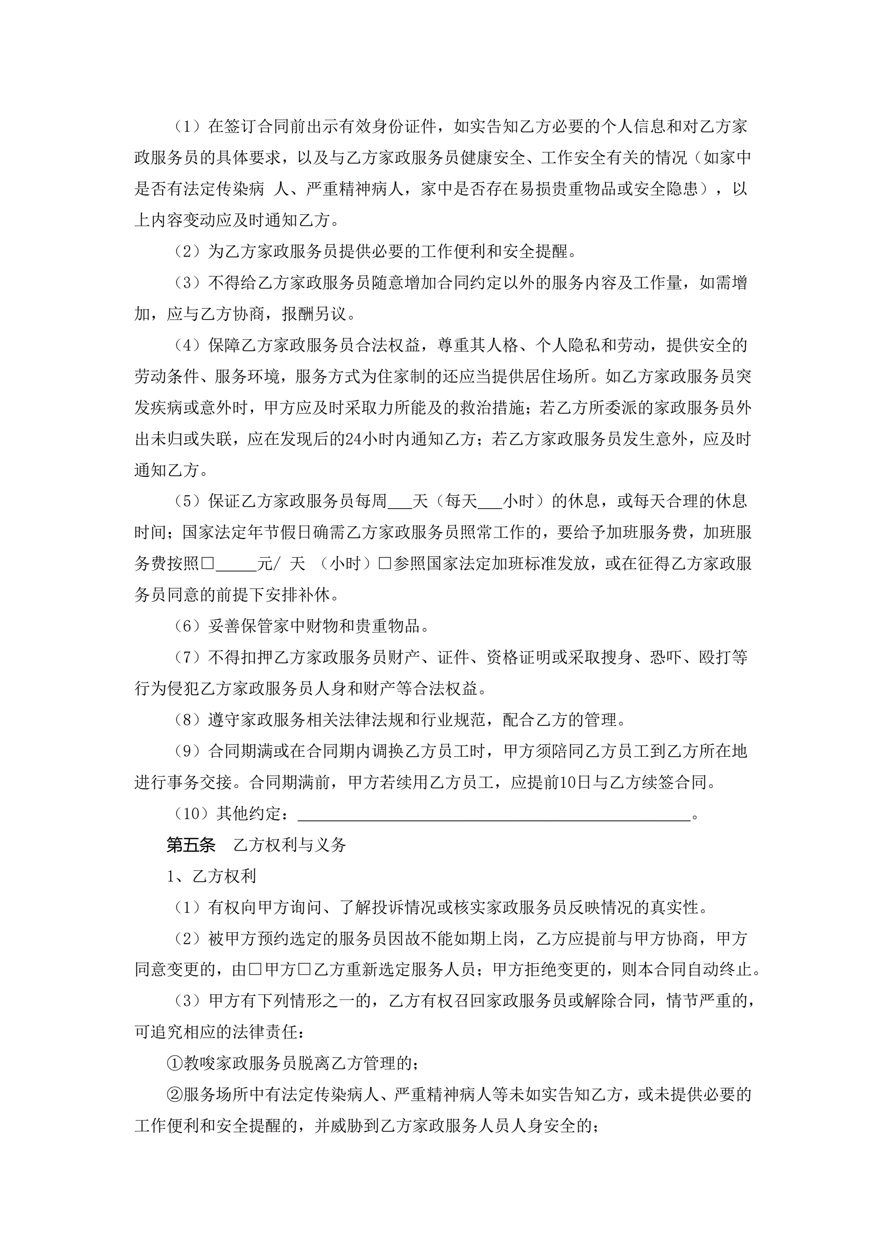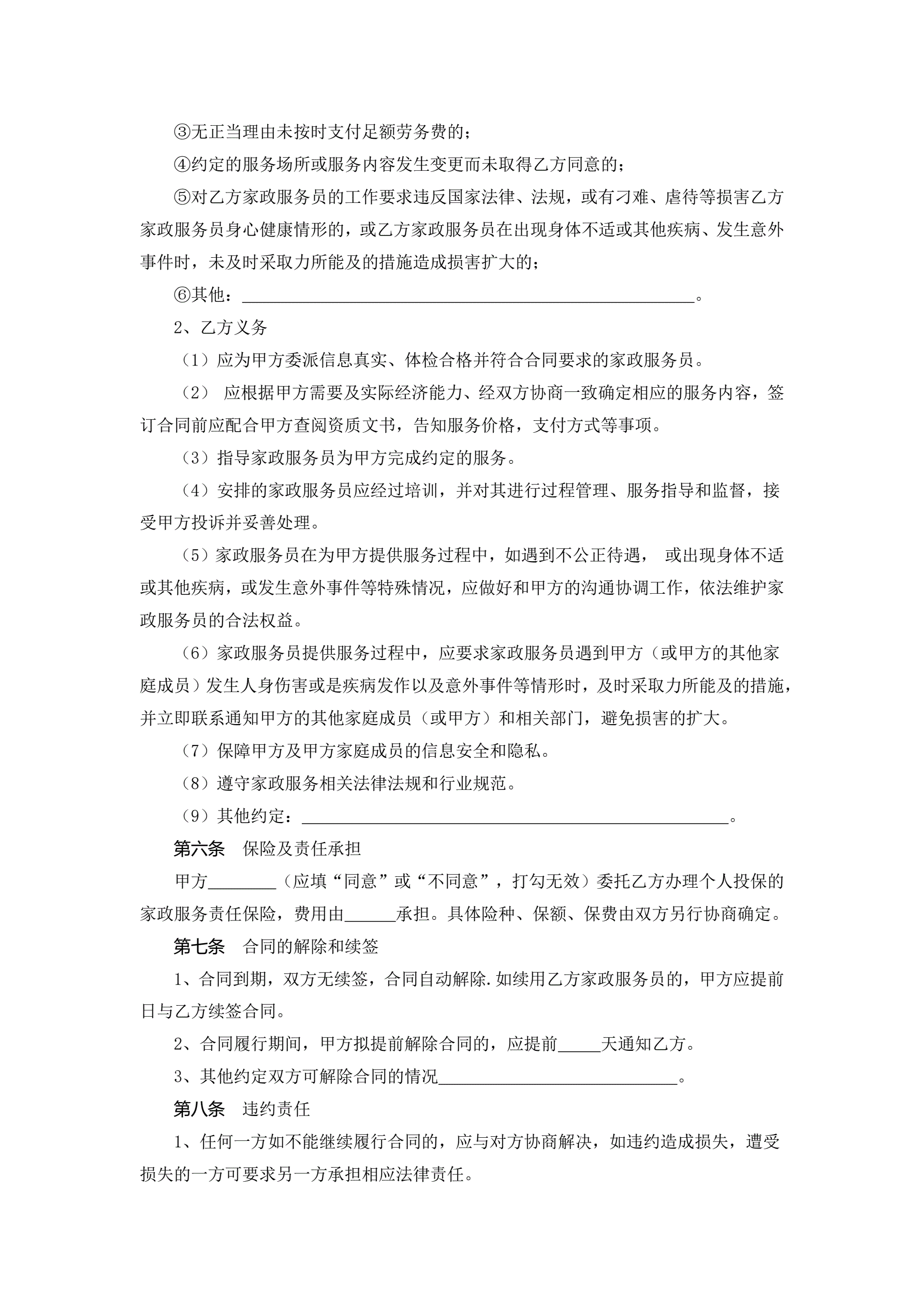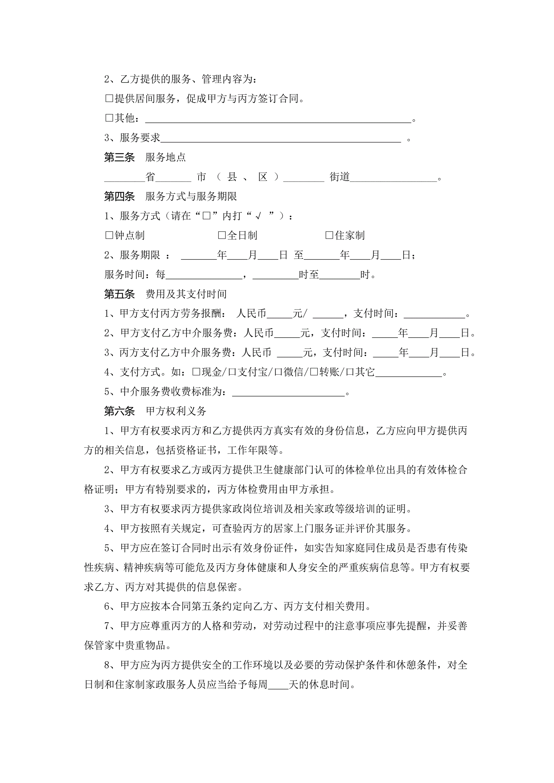 浙江省家政服务合同示范文本