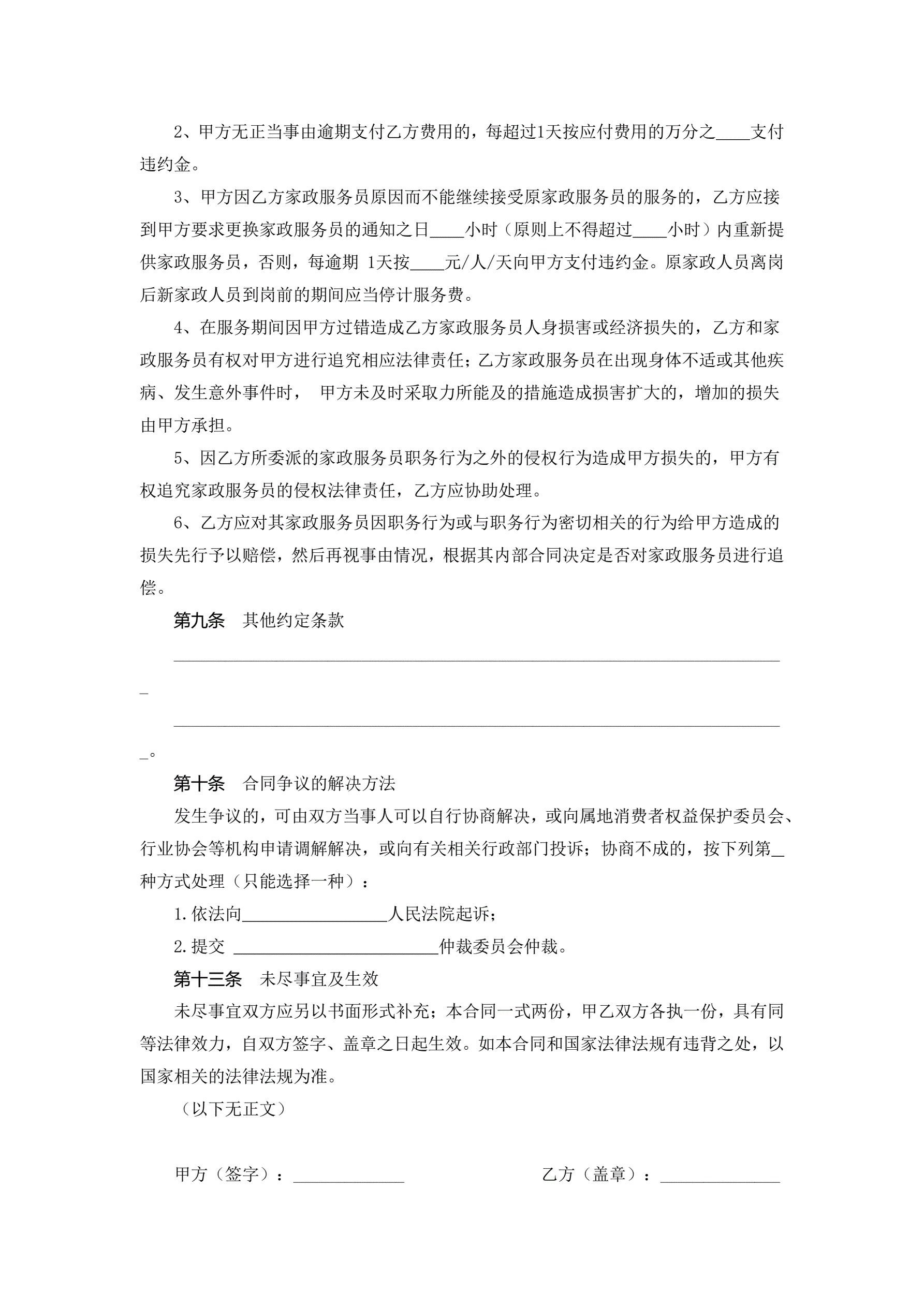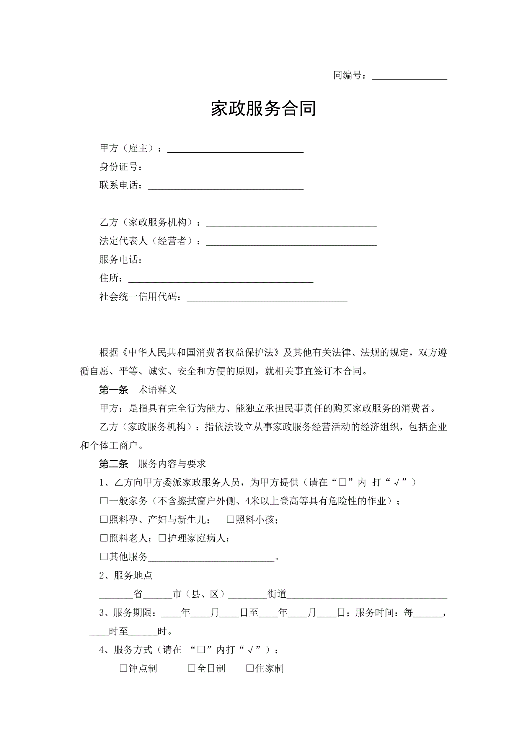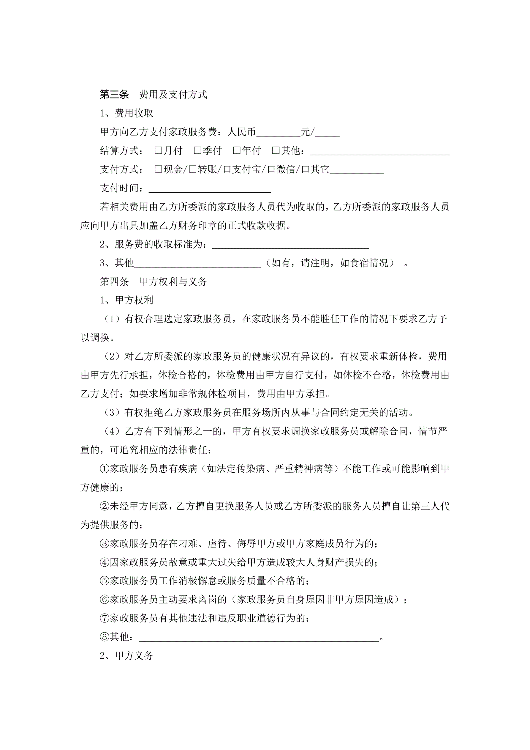 浙江省家政服务合同示范文本
