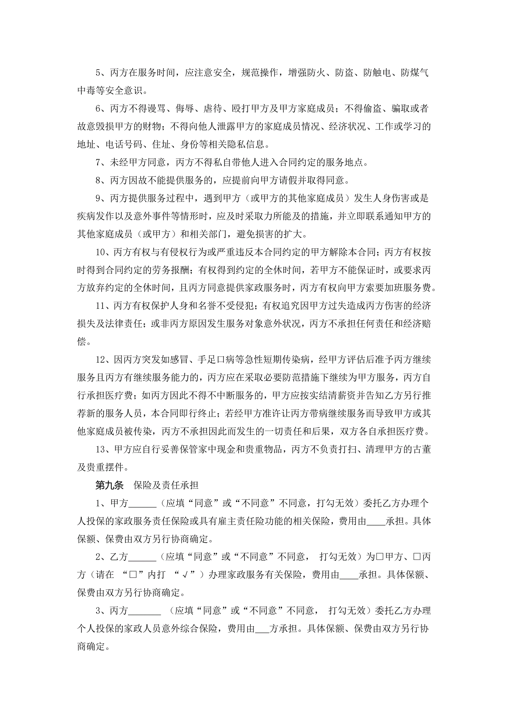 >浙江省家政服务合同示范文本