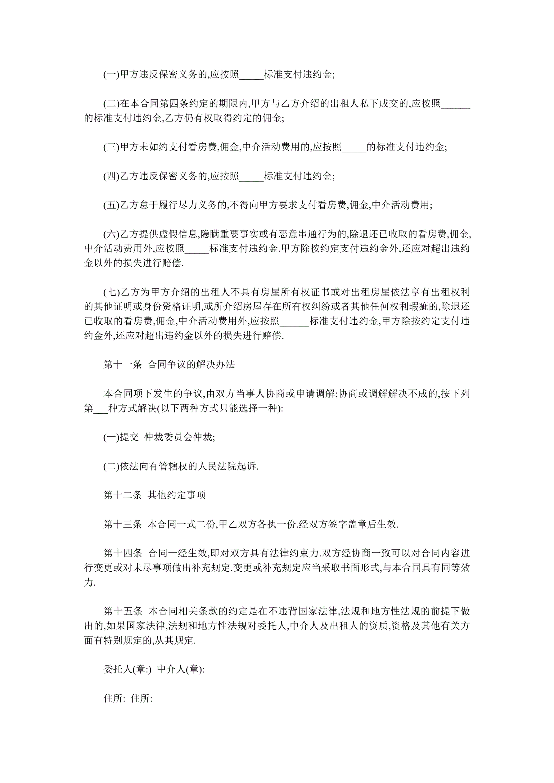 房屋中介合同