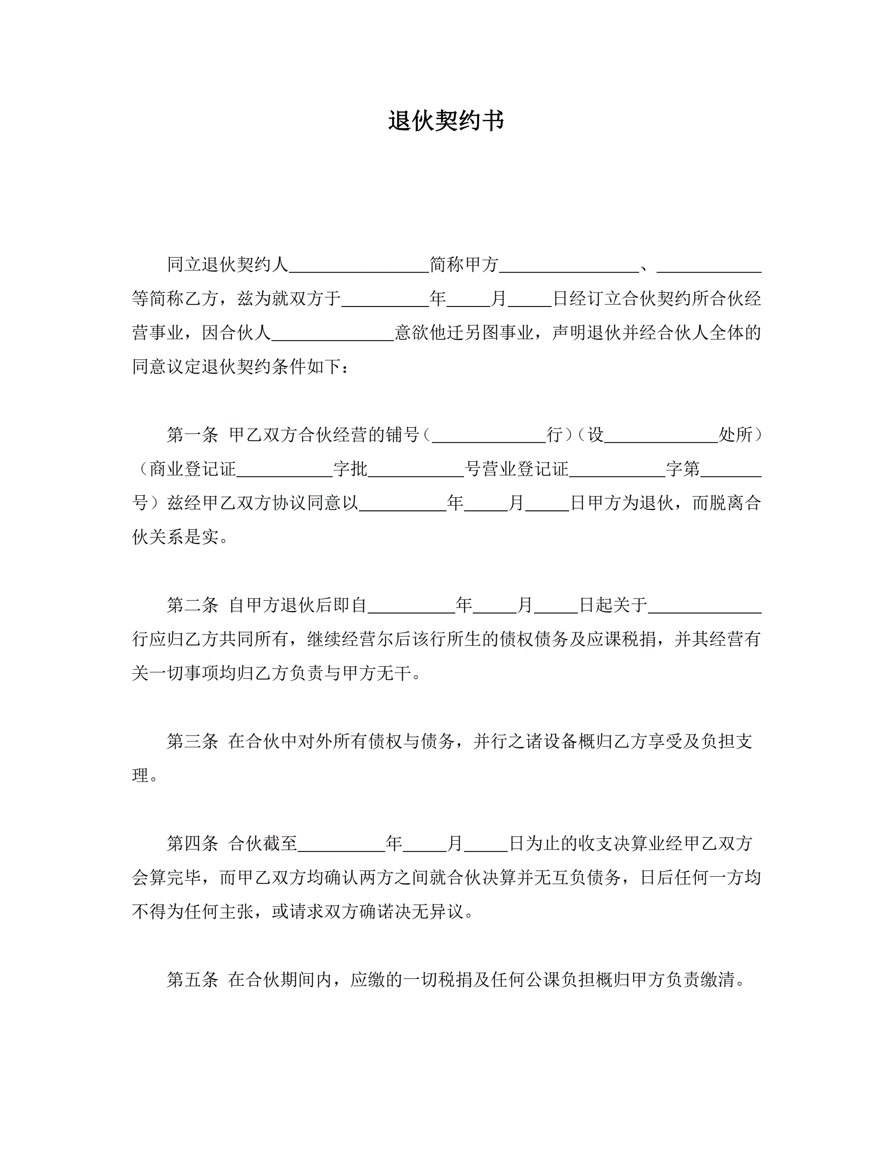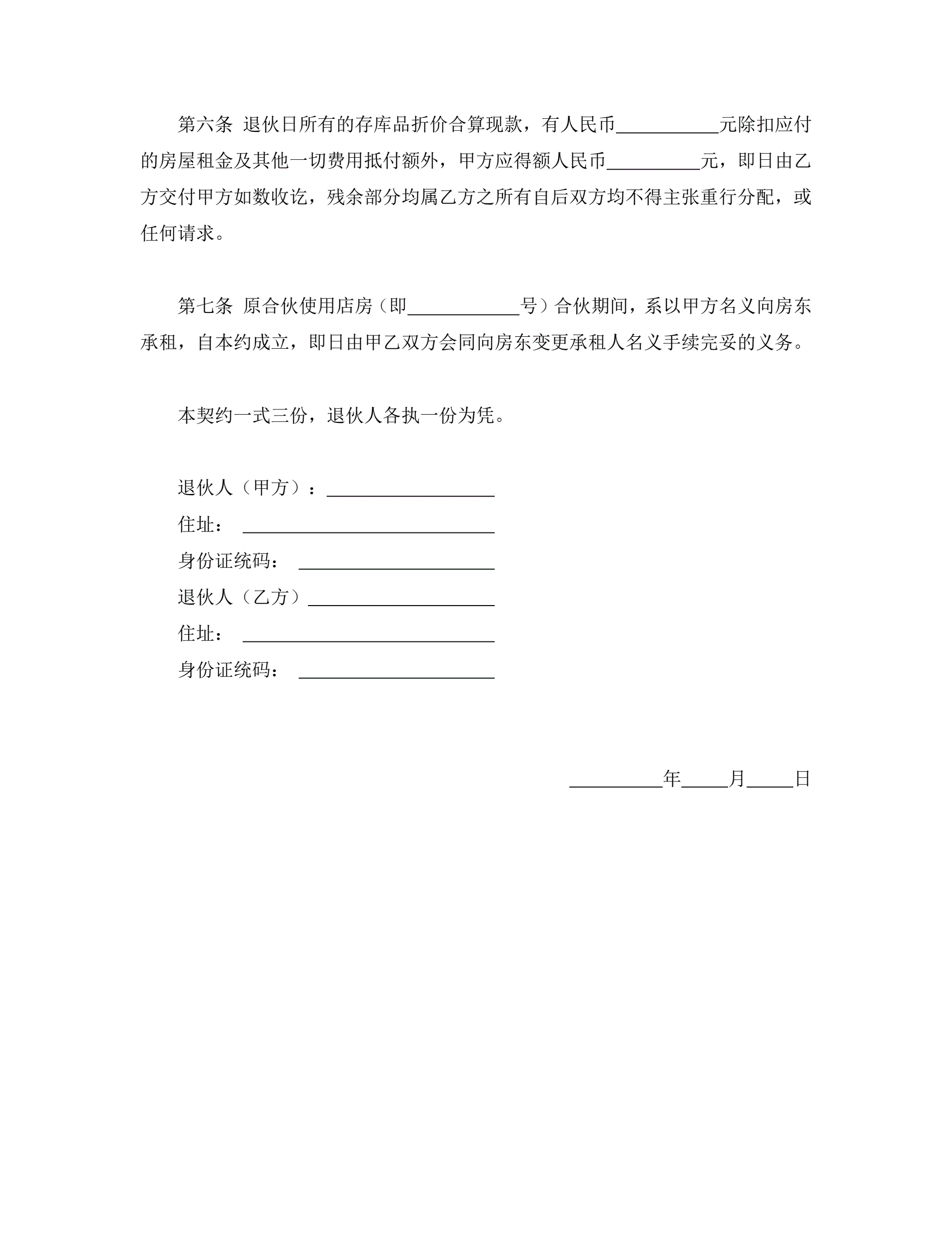 >退伙契约书