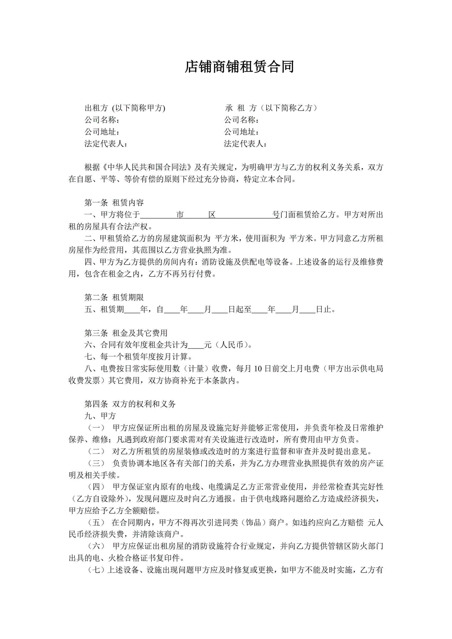 店铺租赁合同