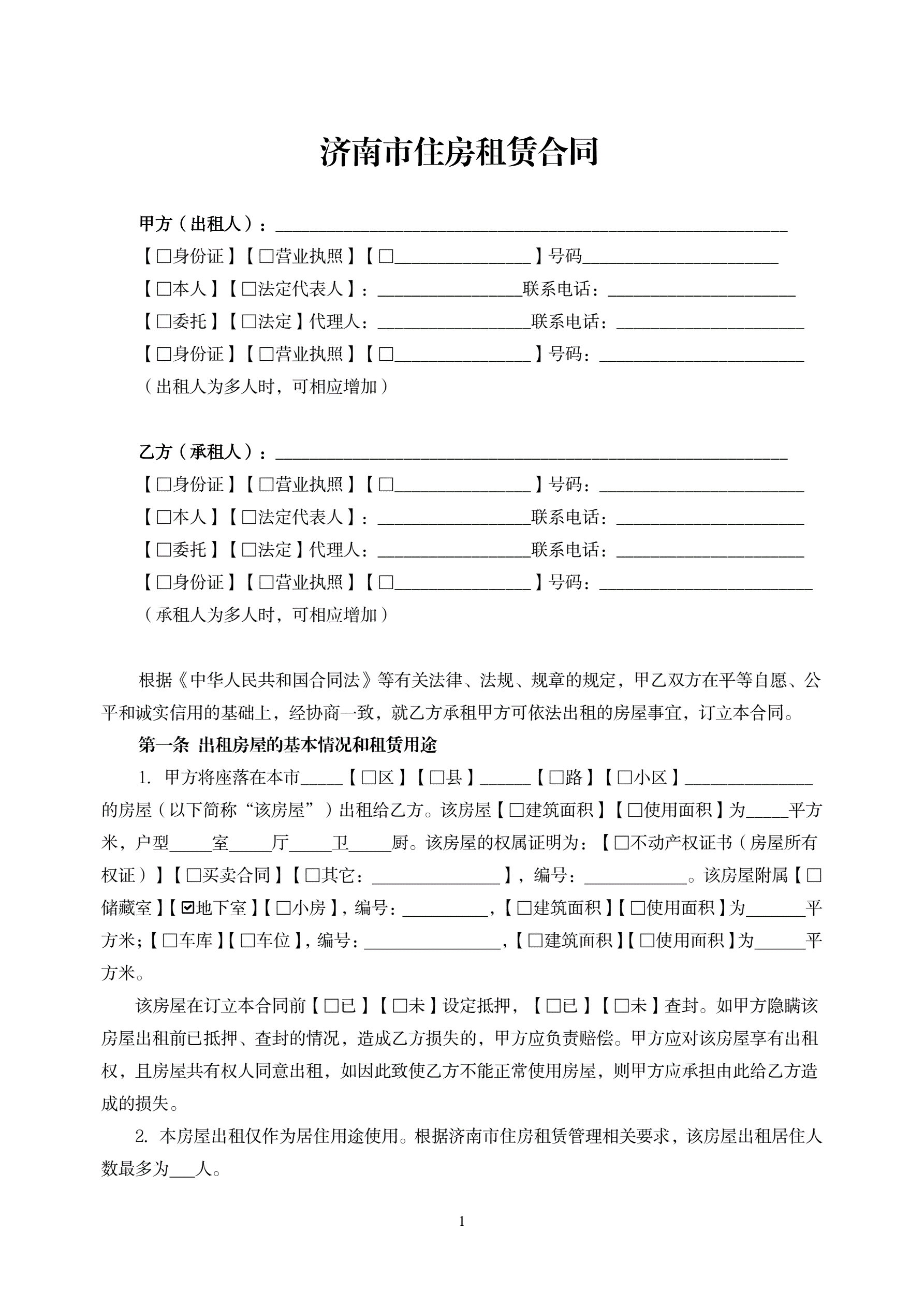 >济南市住房租赁合同