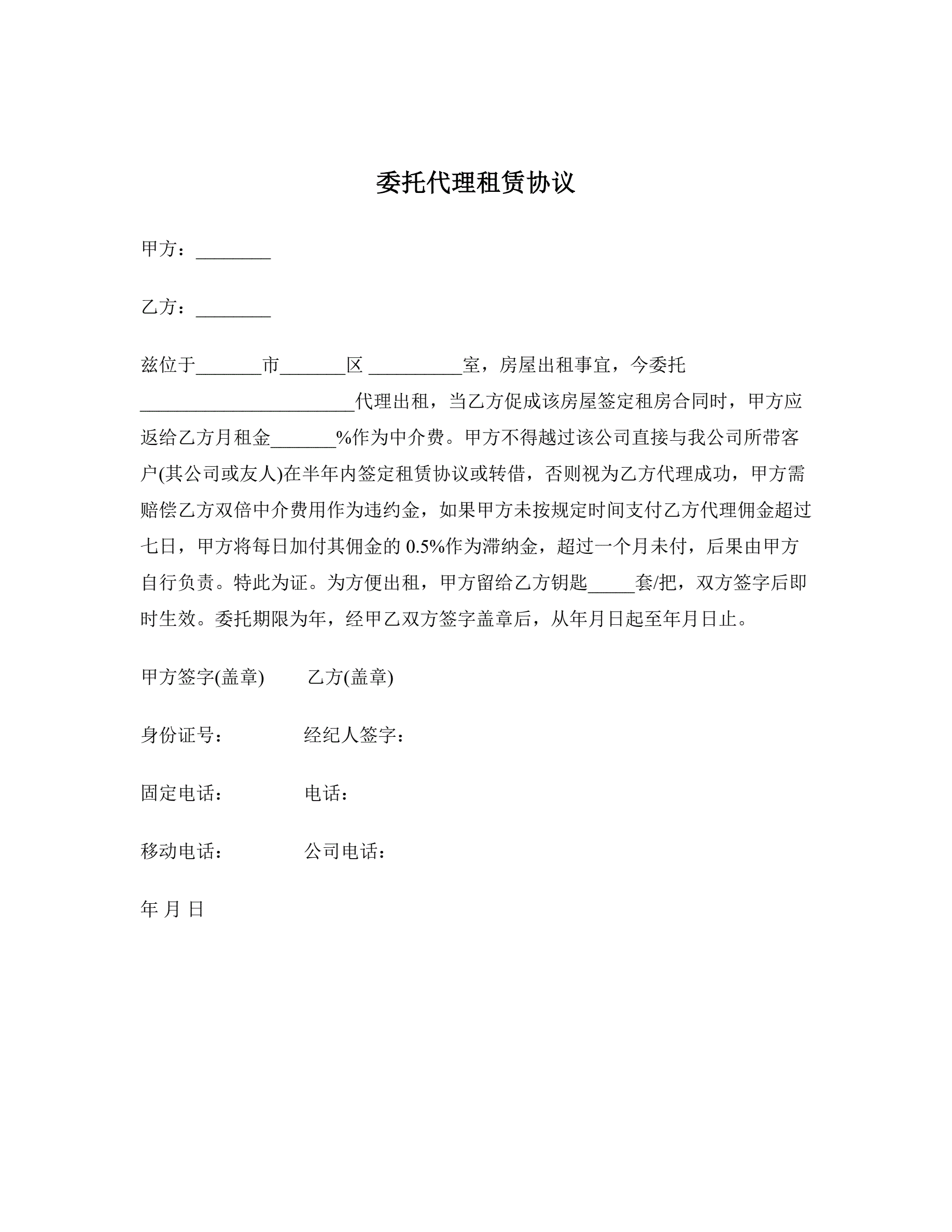 委托代理租赁协议