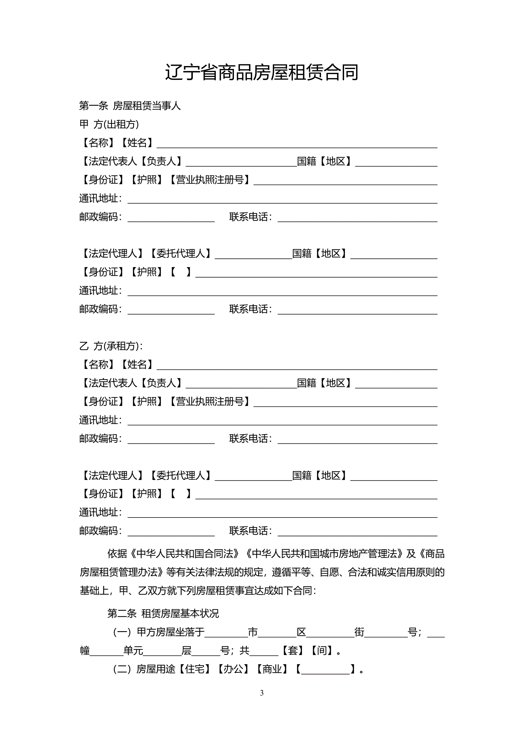 >辽宁省商品房屋租赁合同(示范文本)