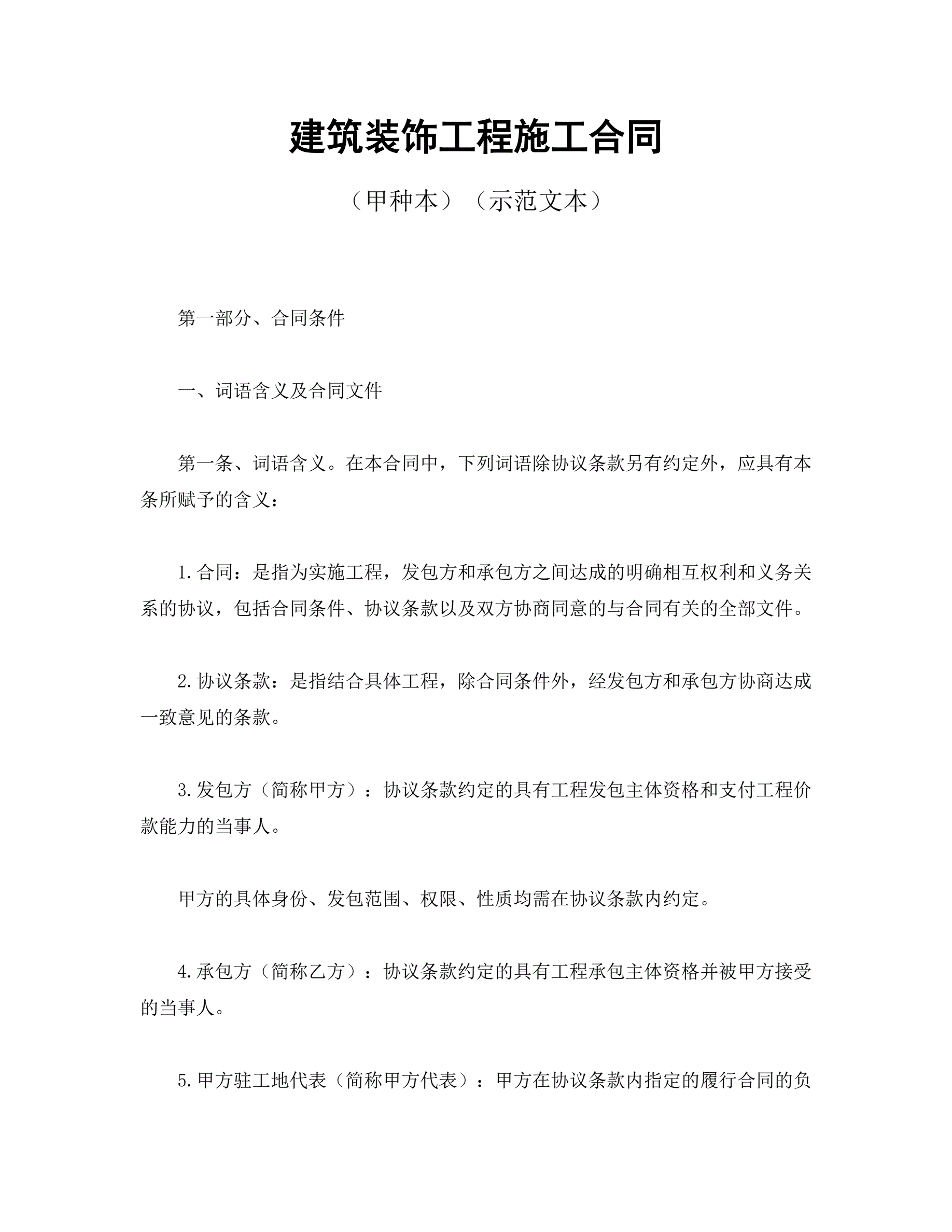 >建筑装饰工程施工合同
