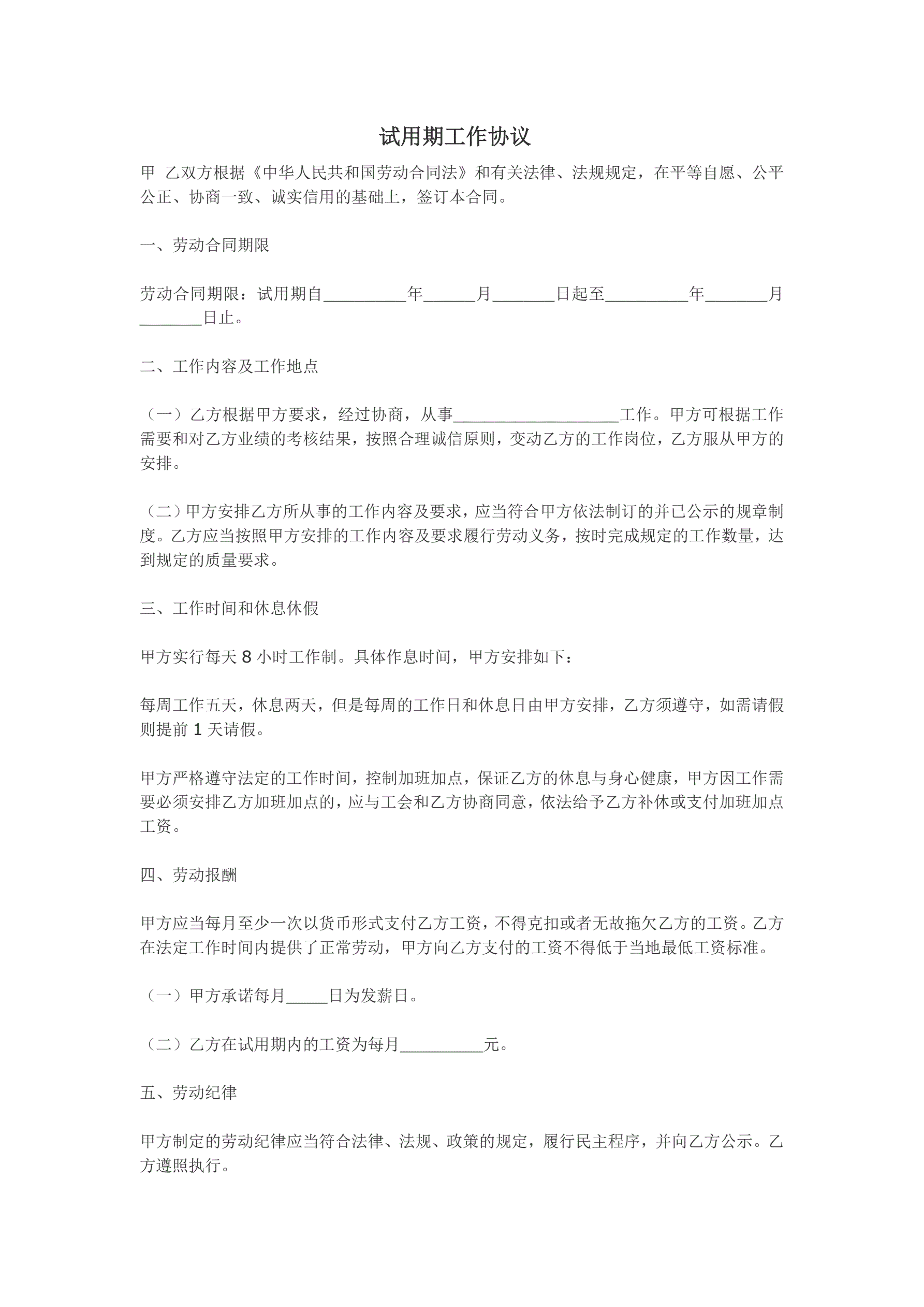 试用期3个月工作协议