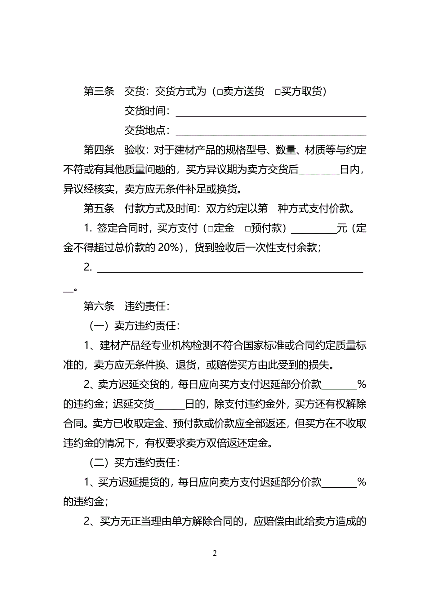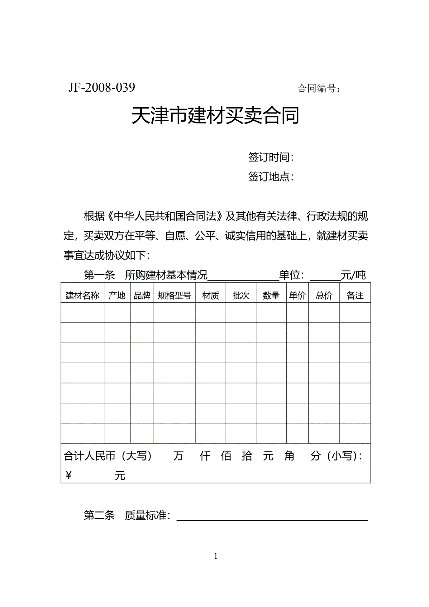 >天津市建材买卖合同