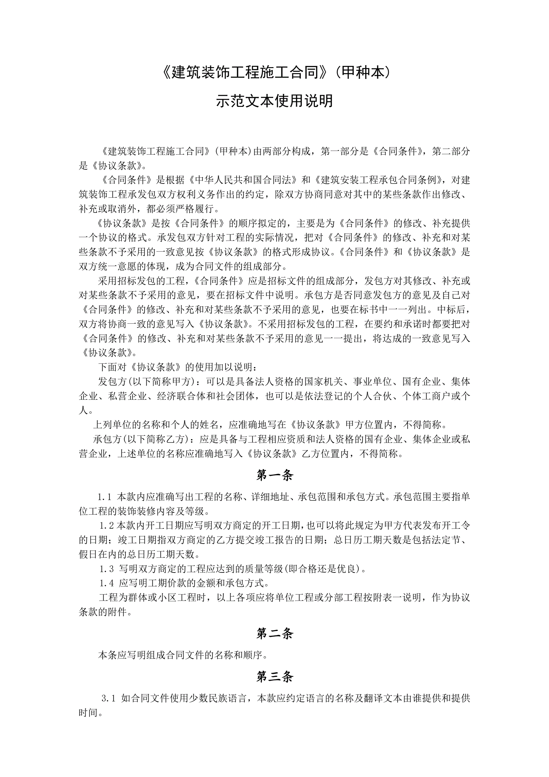 >《建筑装饰工程施工合同》[甲种本]示范文本使用说明