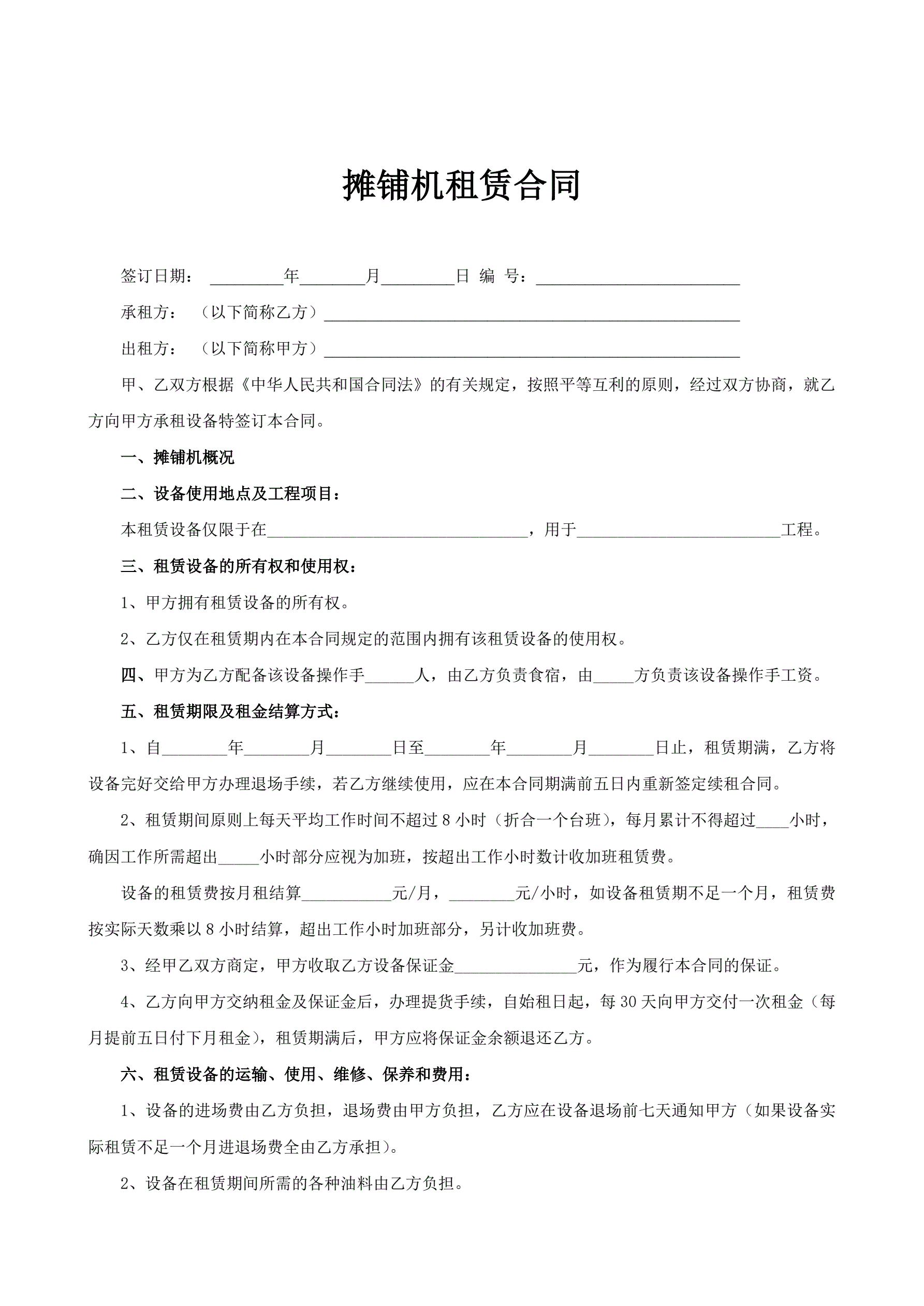 摊铺机租赁合同