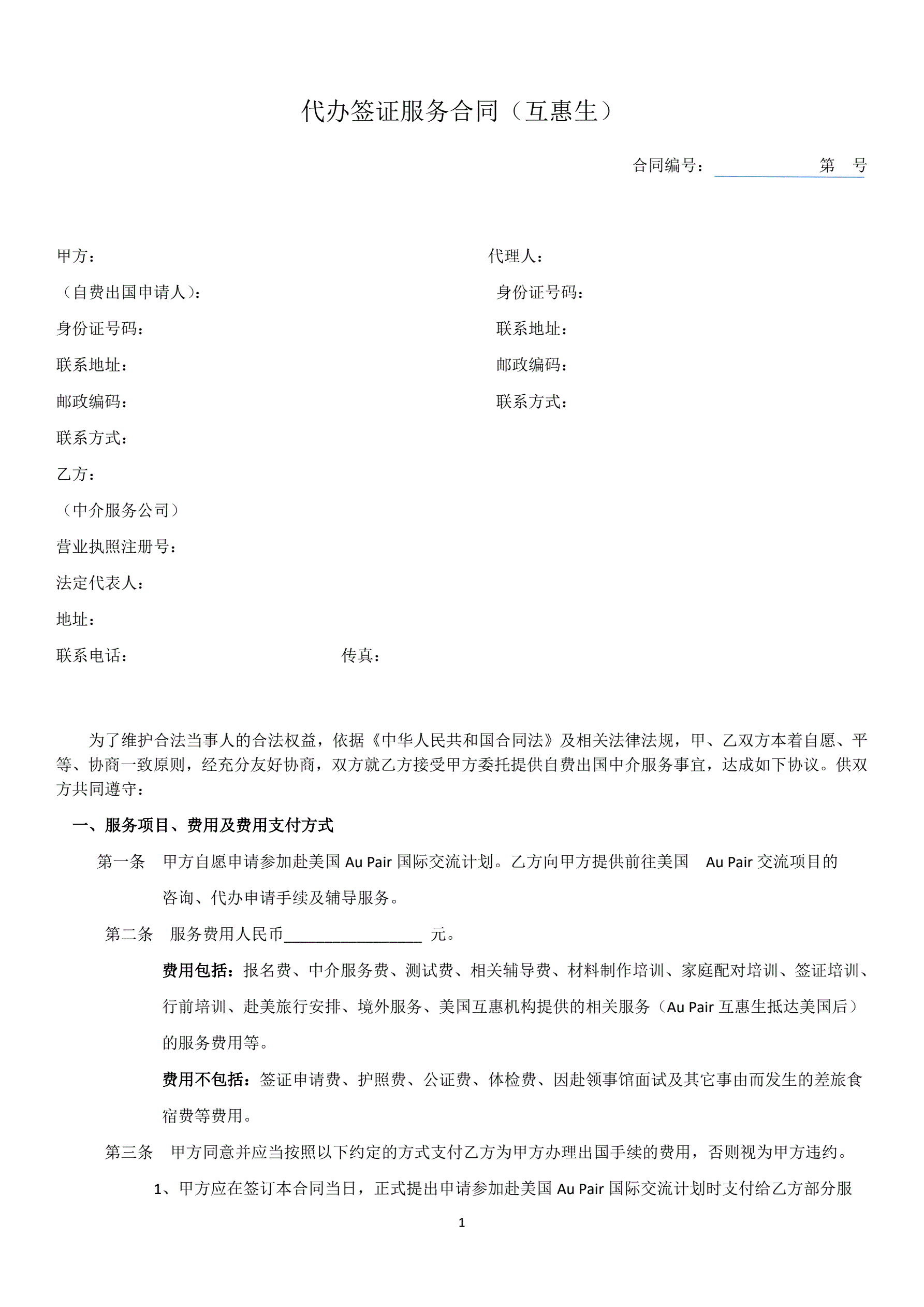 代办签证服务合同