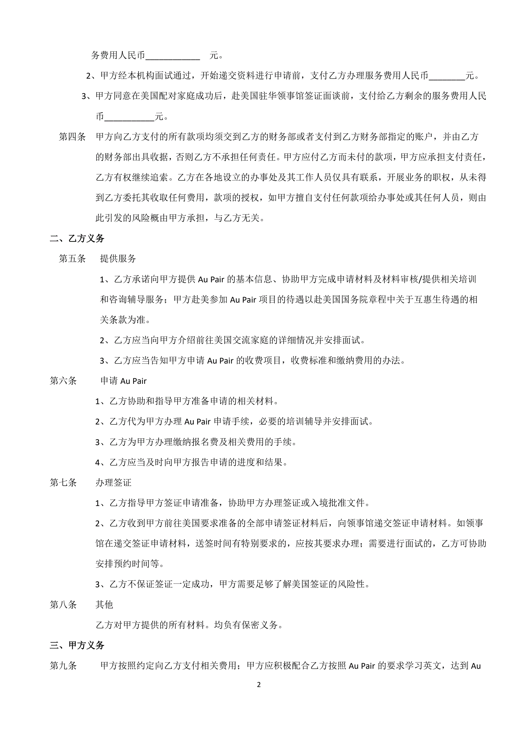 >代办签证服务合同