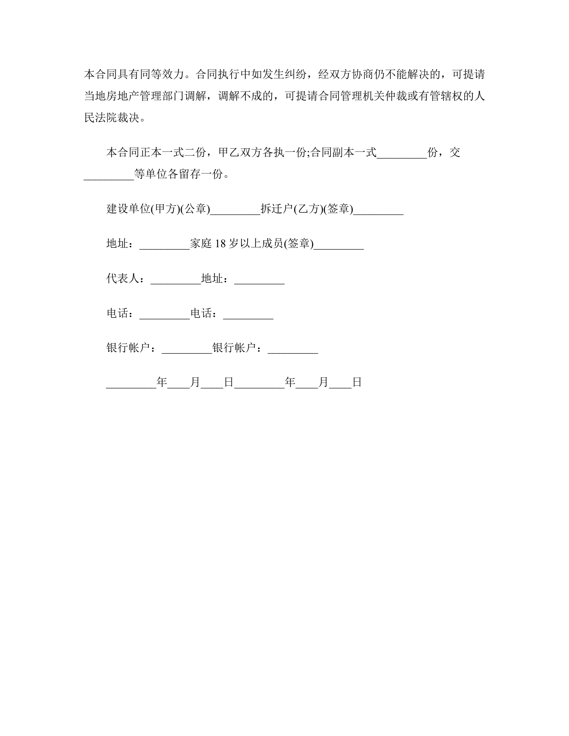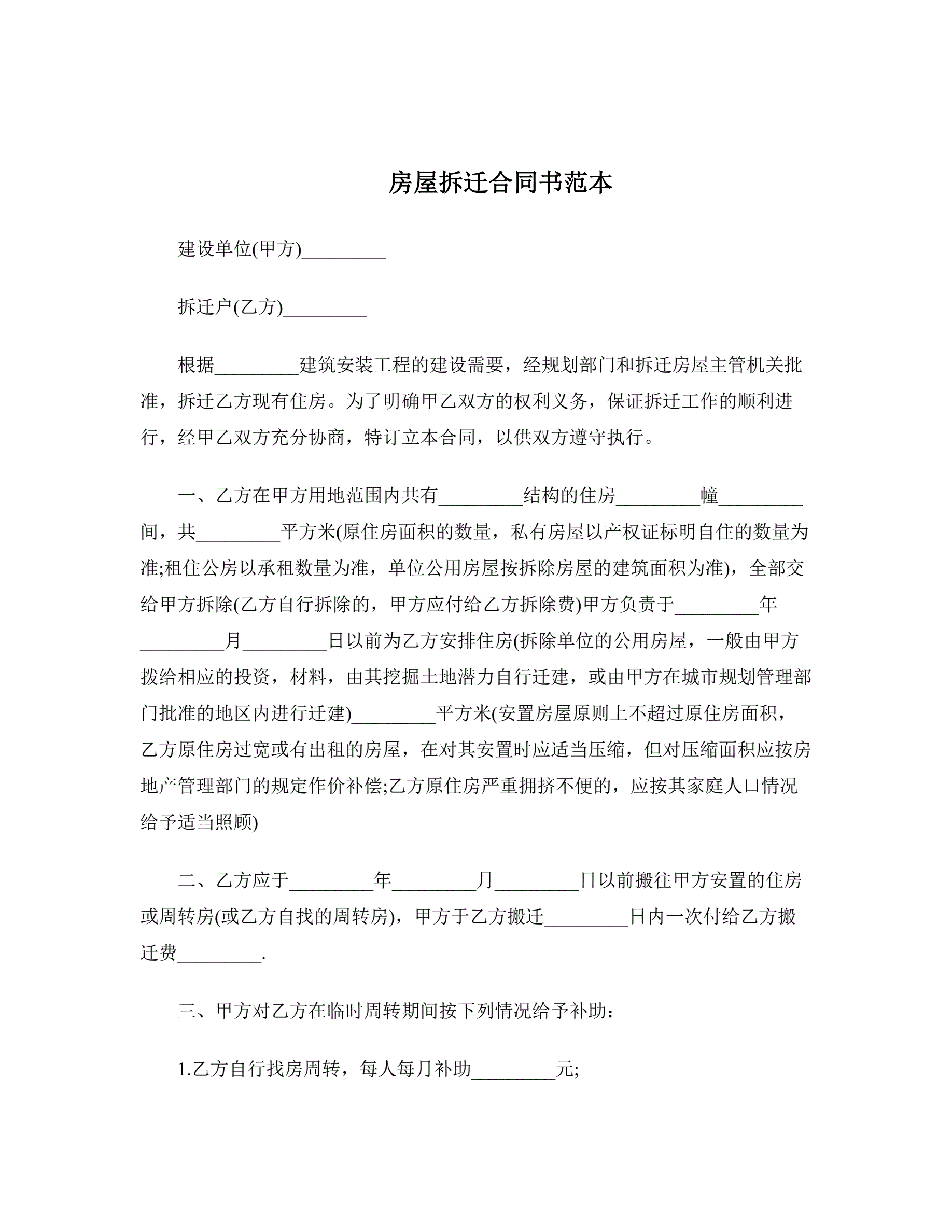 房屋拆迁合同书范本