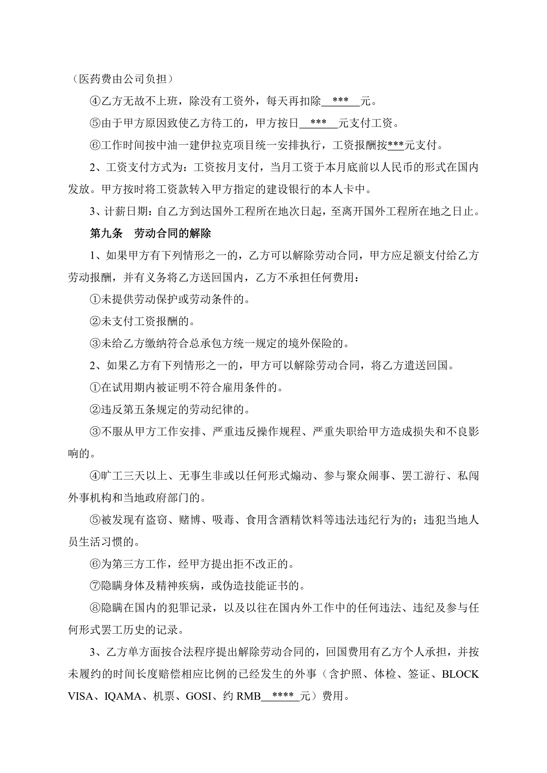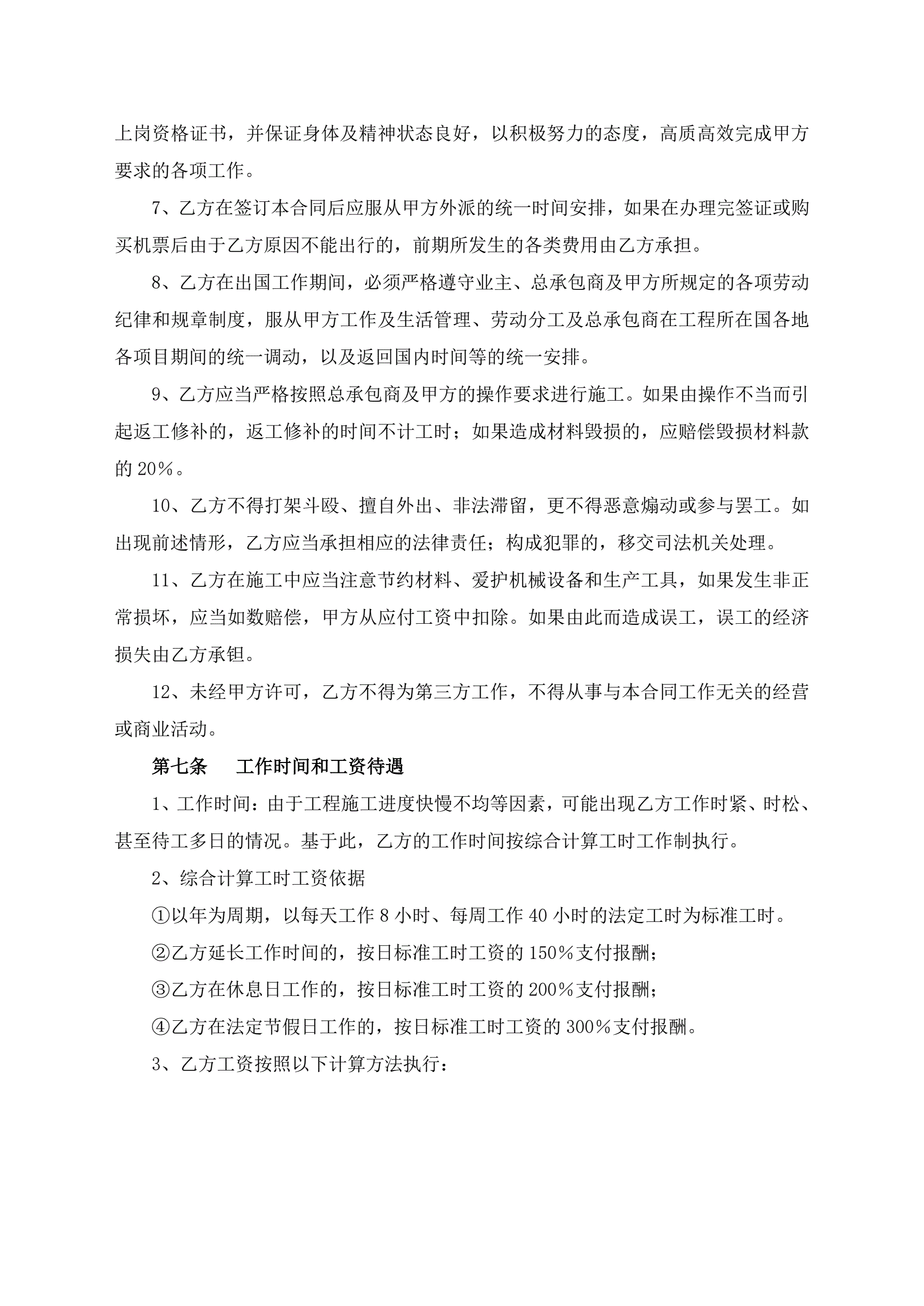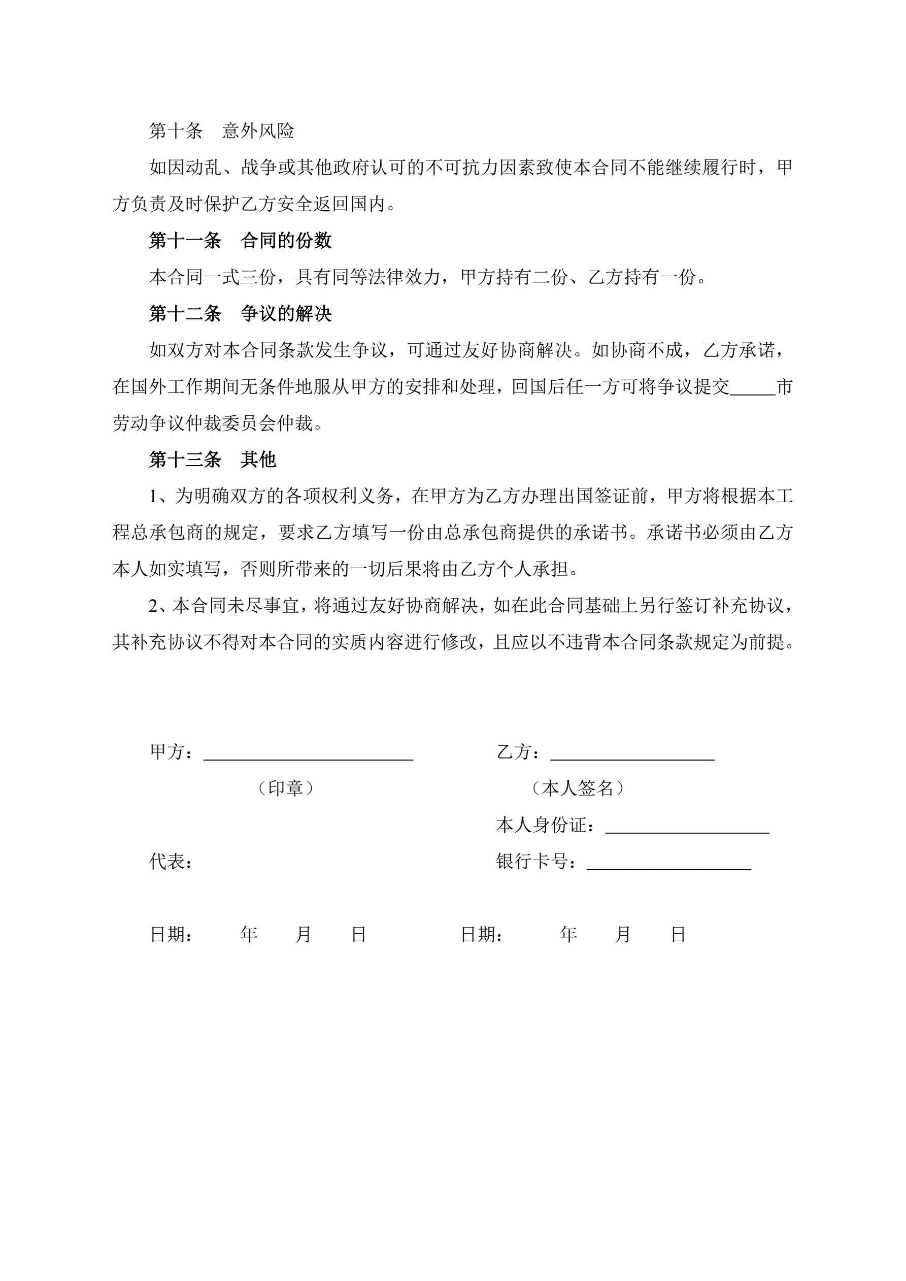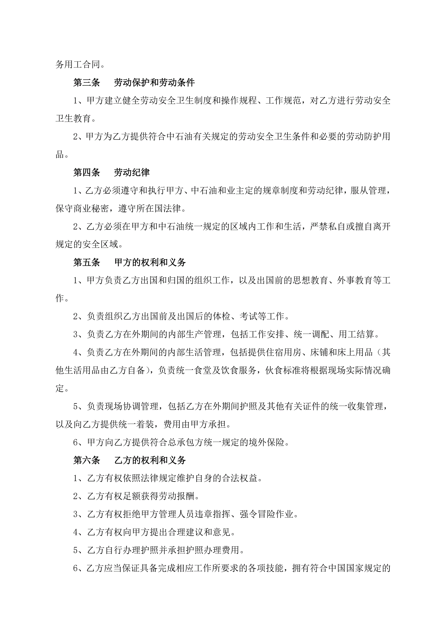 >出国劳务合同