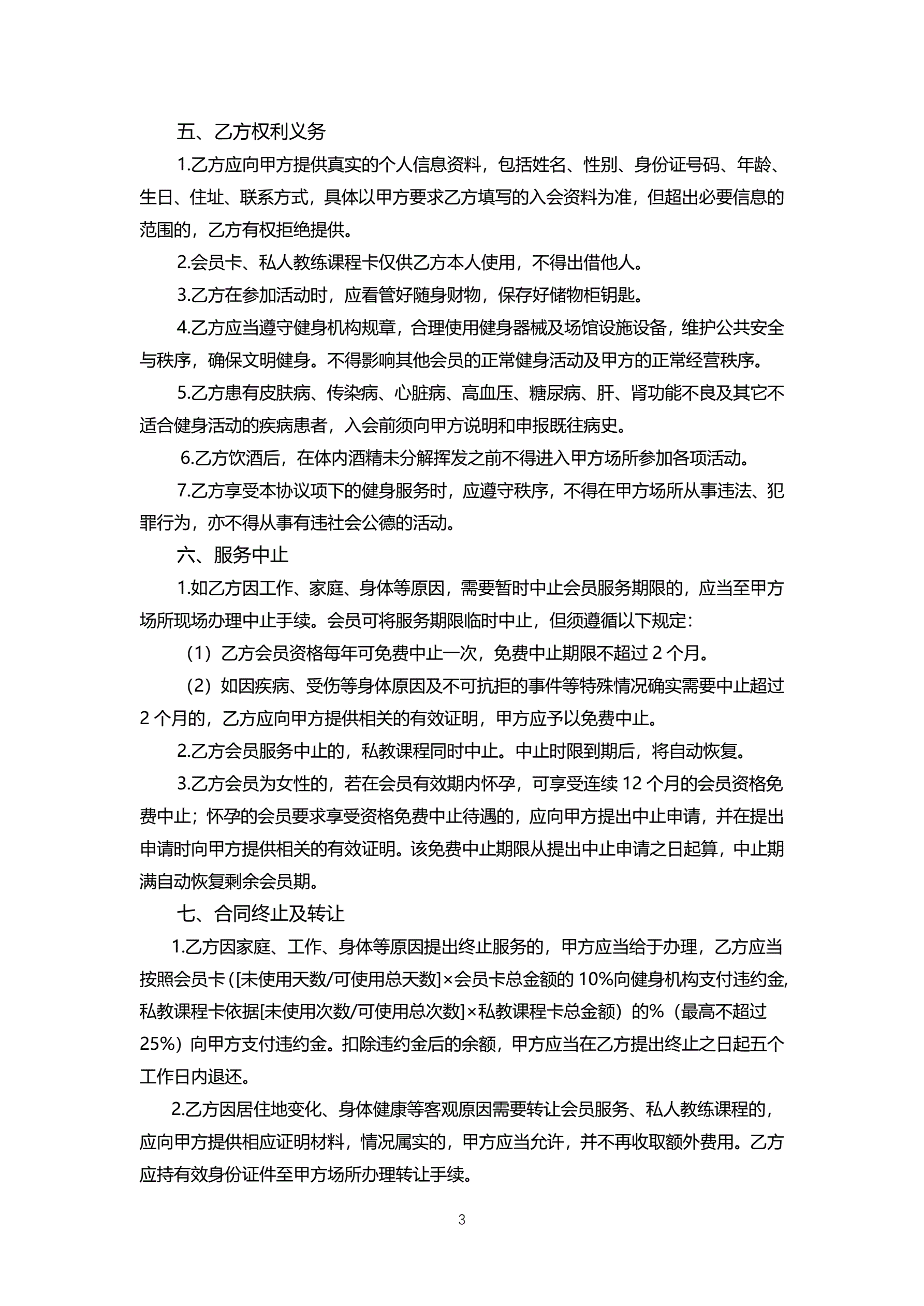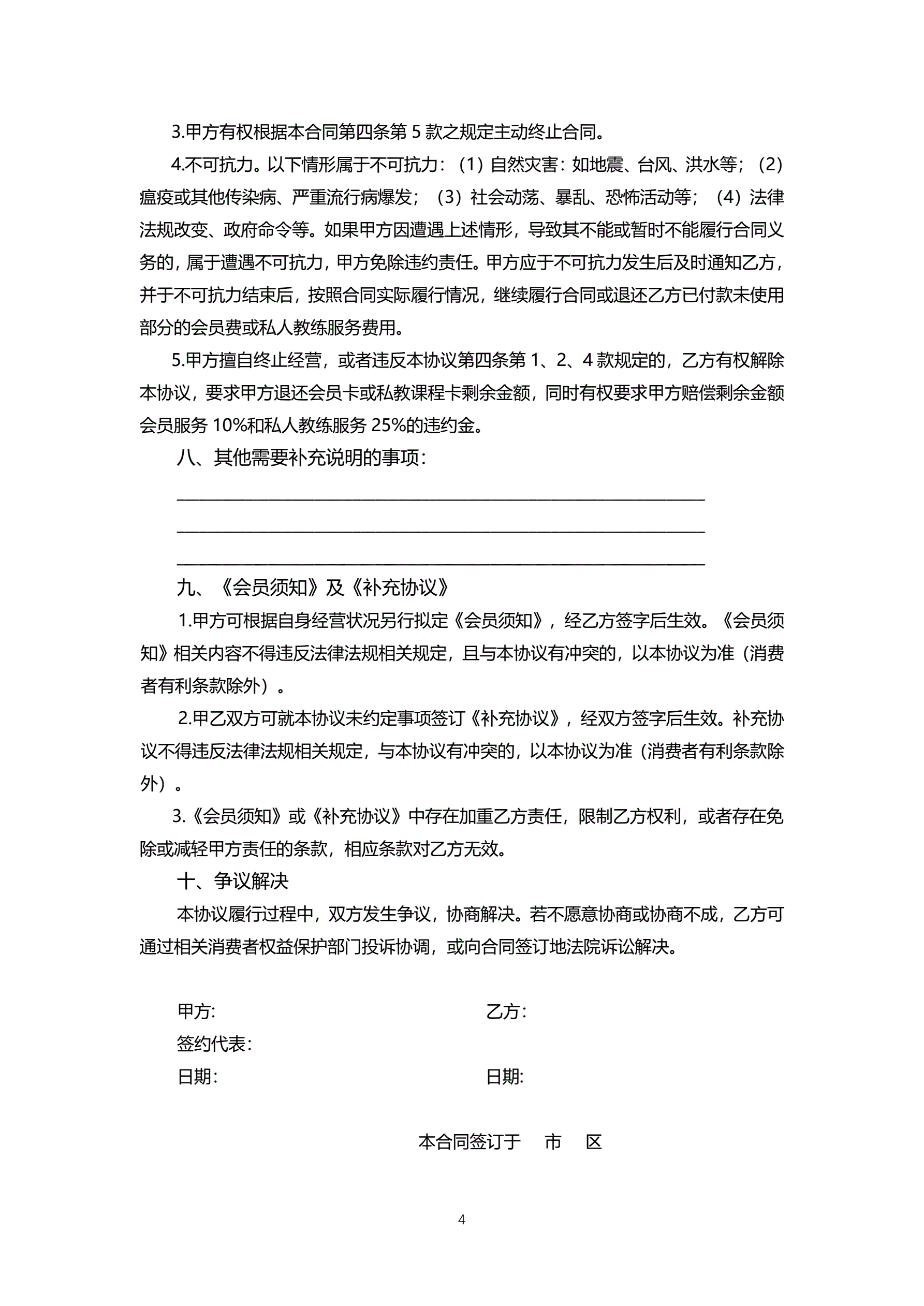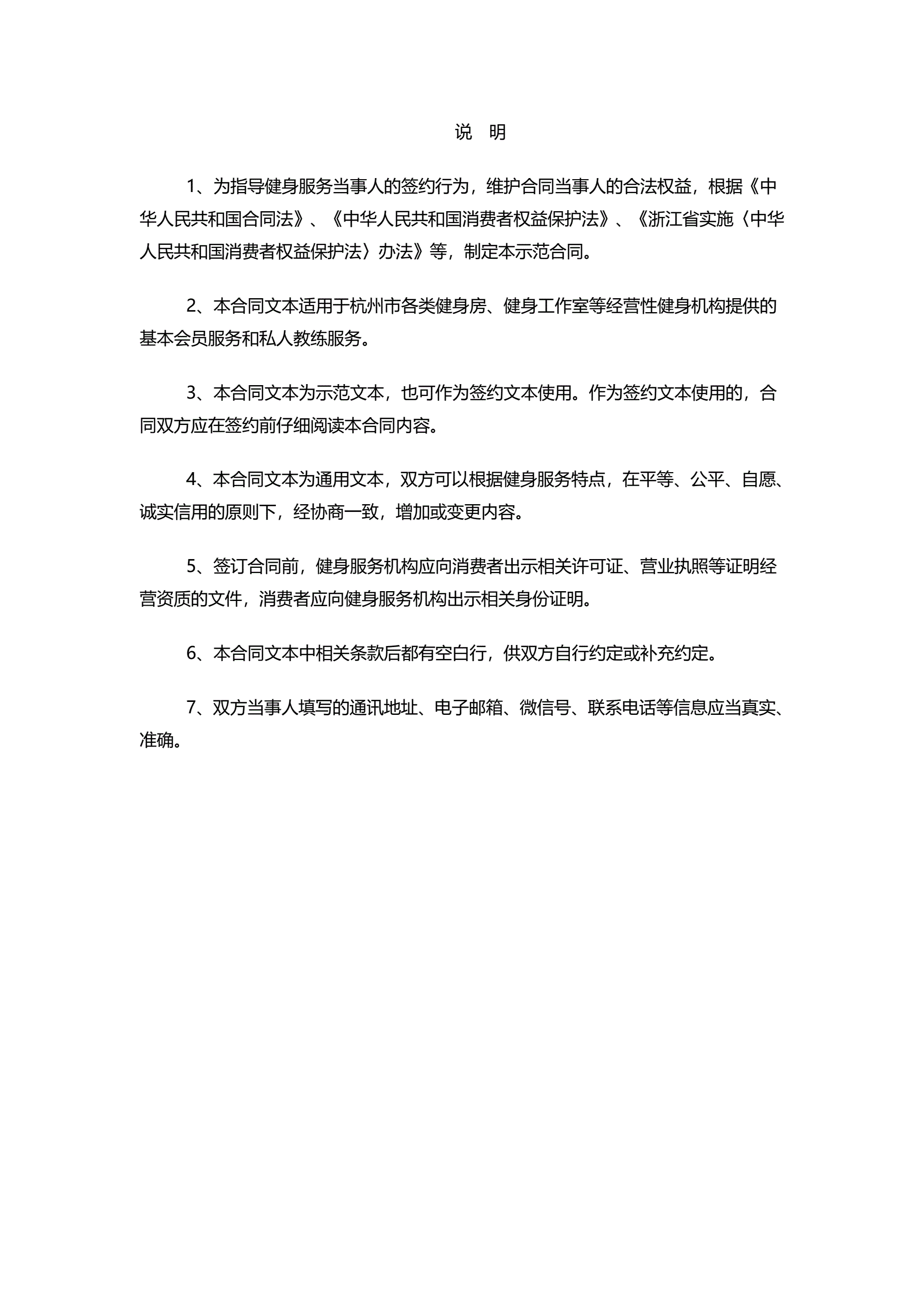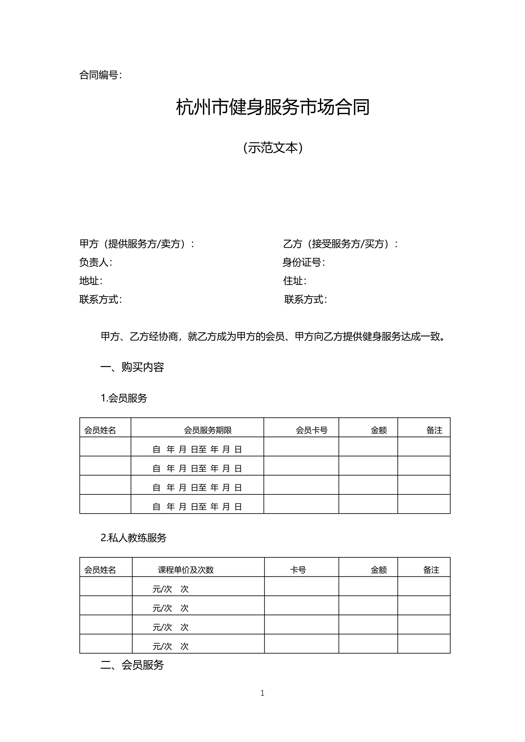 杭州市健身服务市场合同
