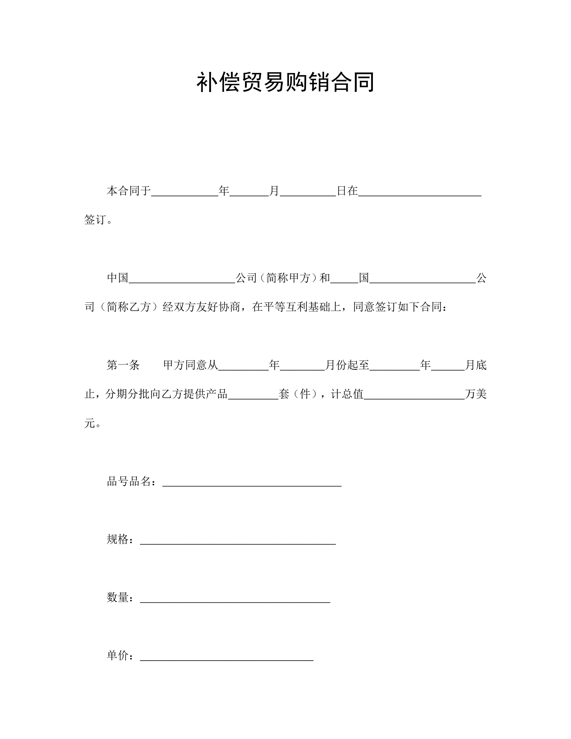 补偿贸易购销合同