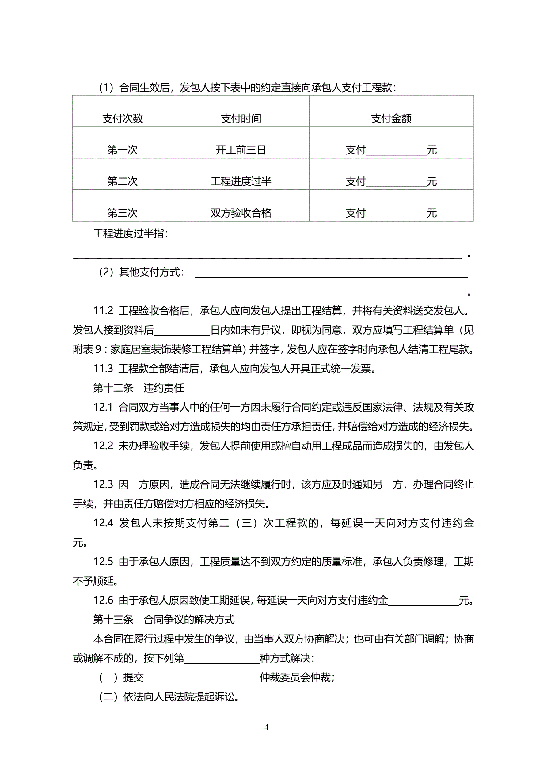 >002-家庭居室装饰装修工程施工合同