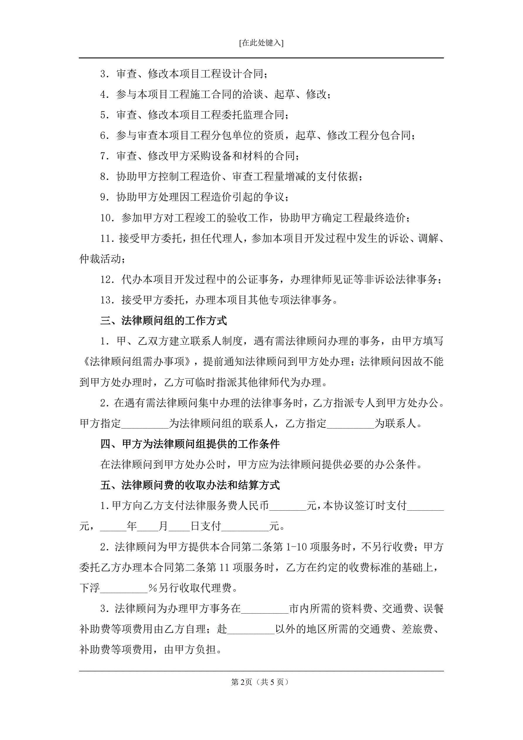 房地产项目法律服务合同
