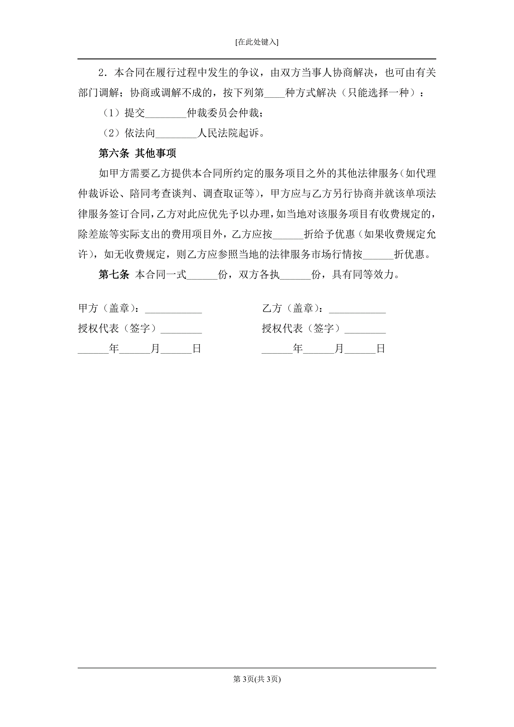 >家庭法律顾问服务合同