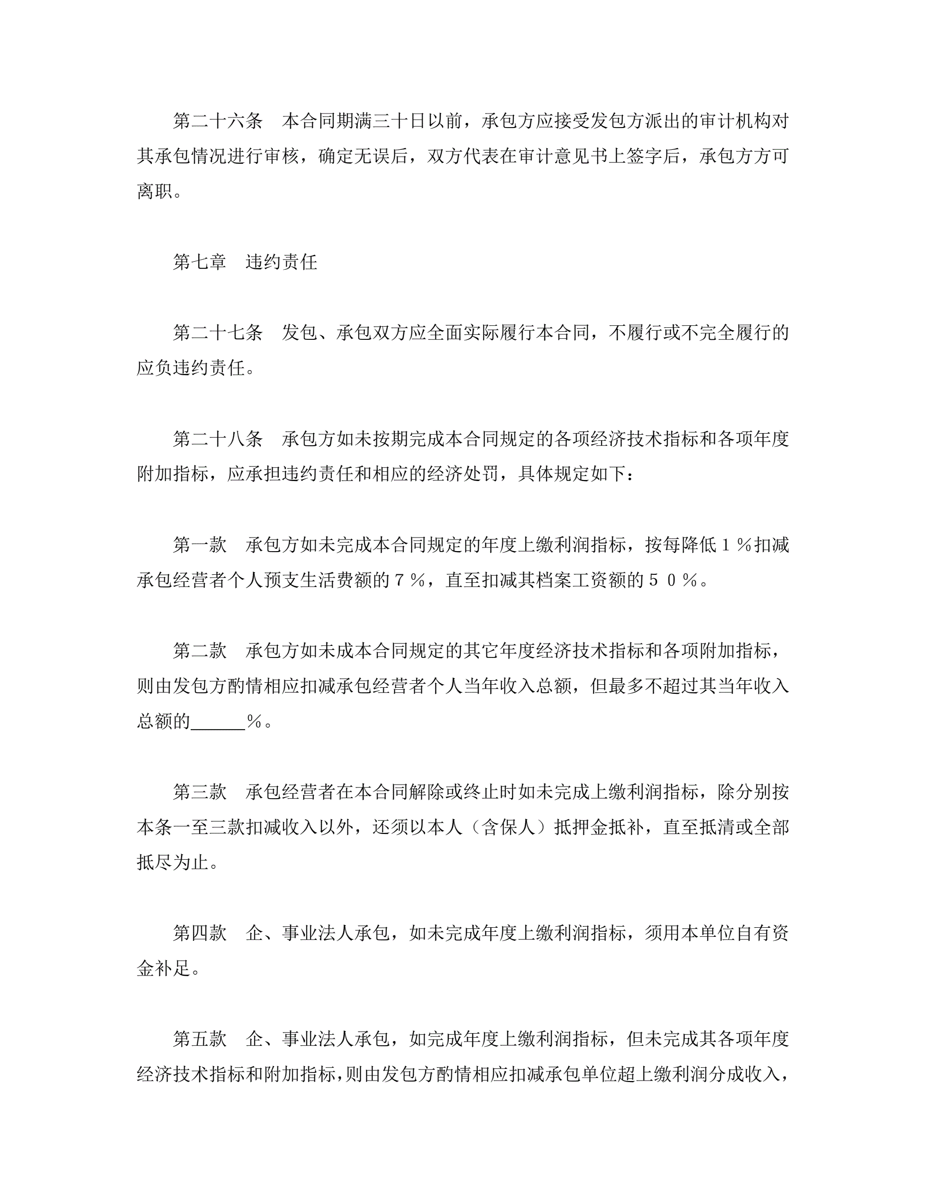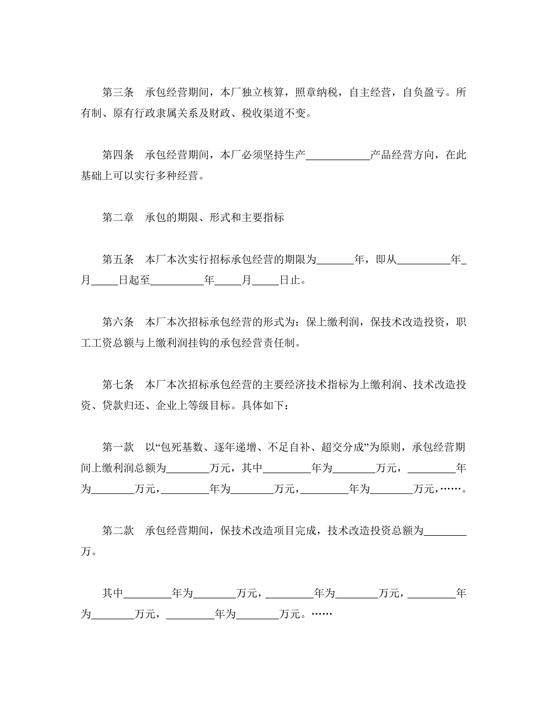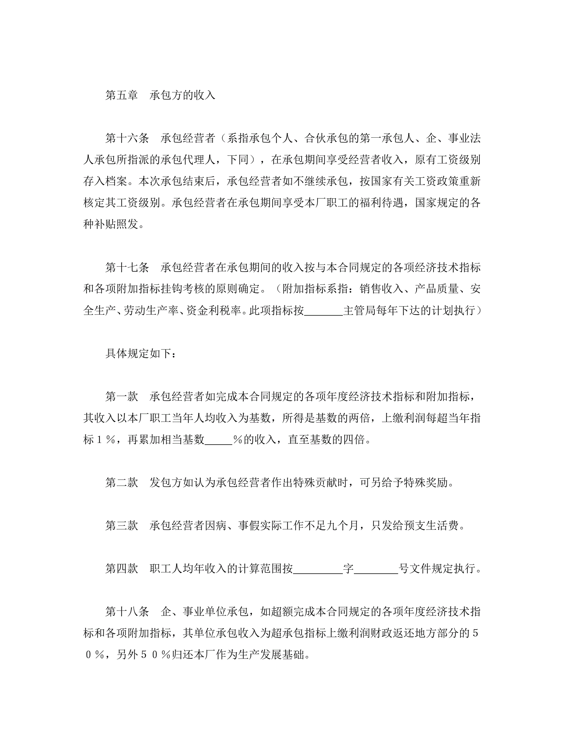 承包合同书(企业1)