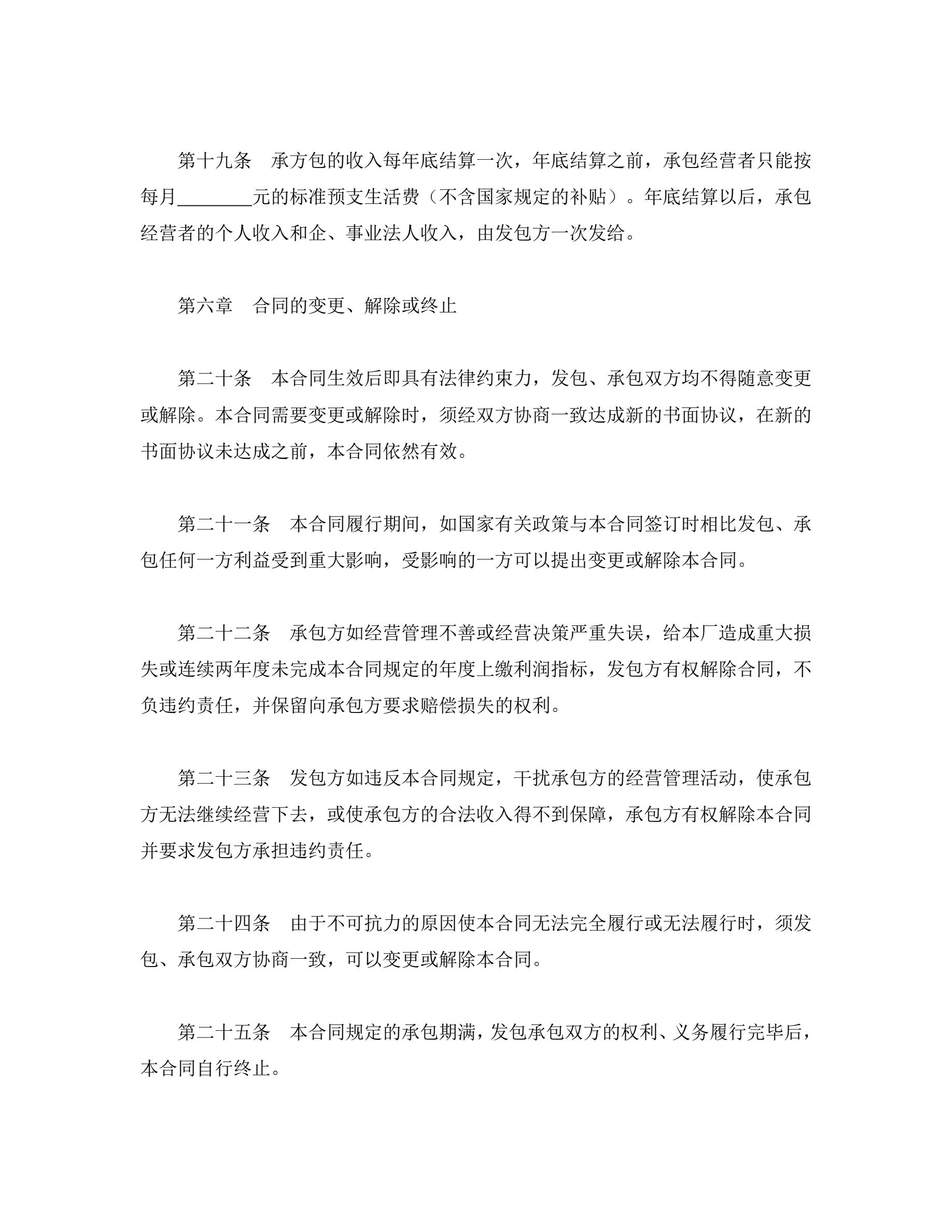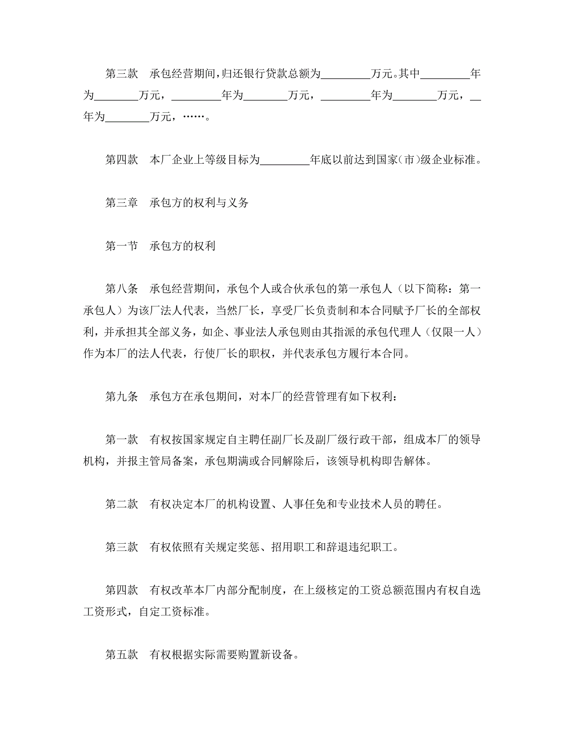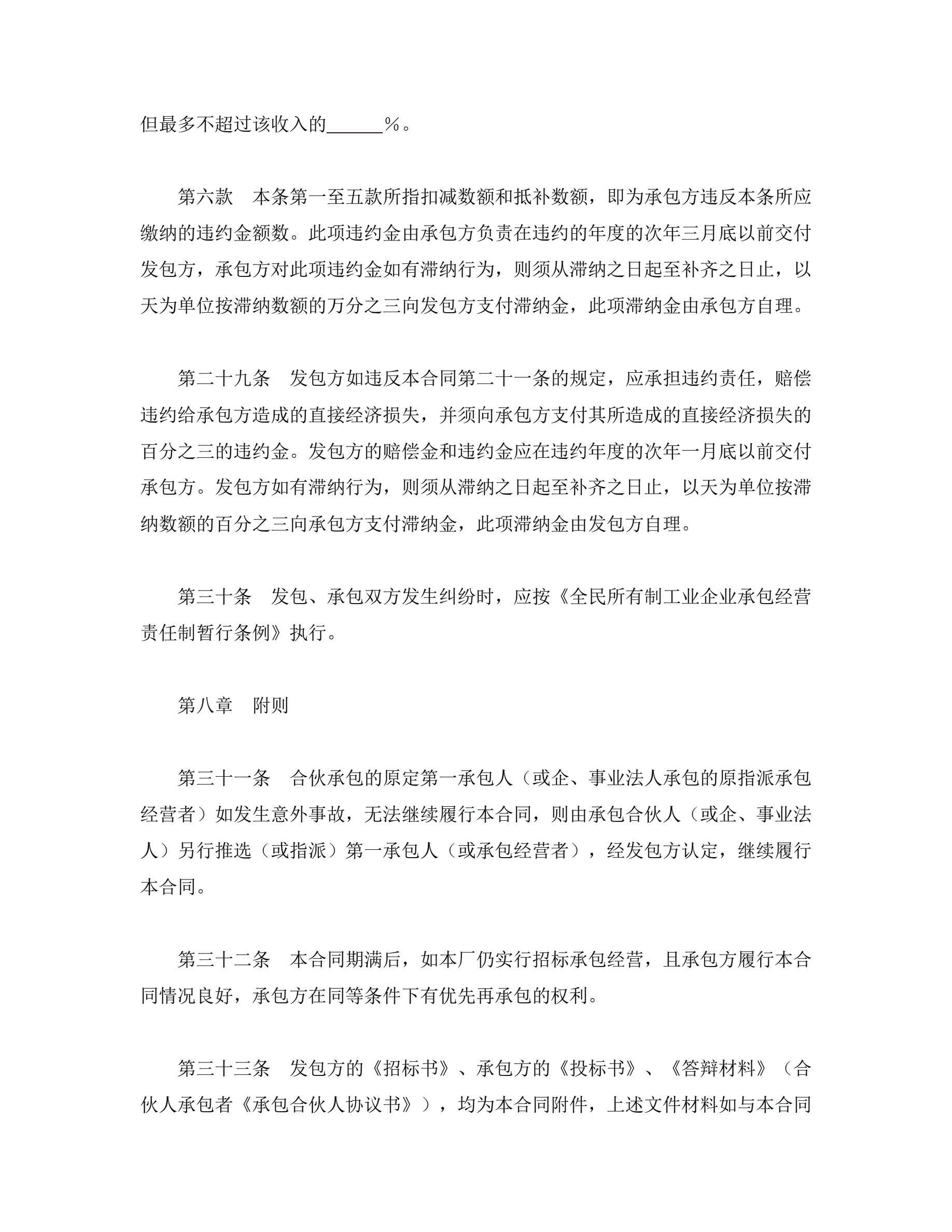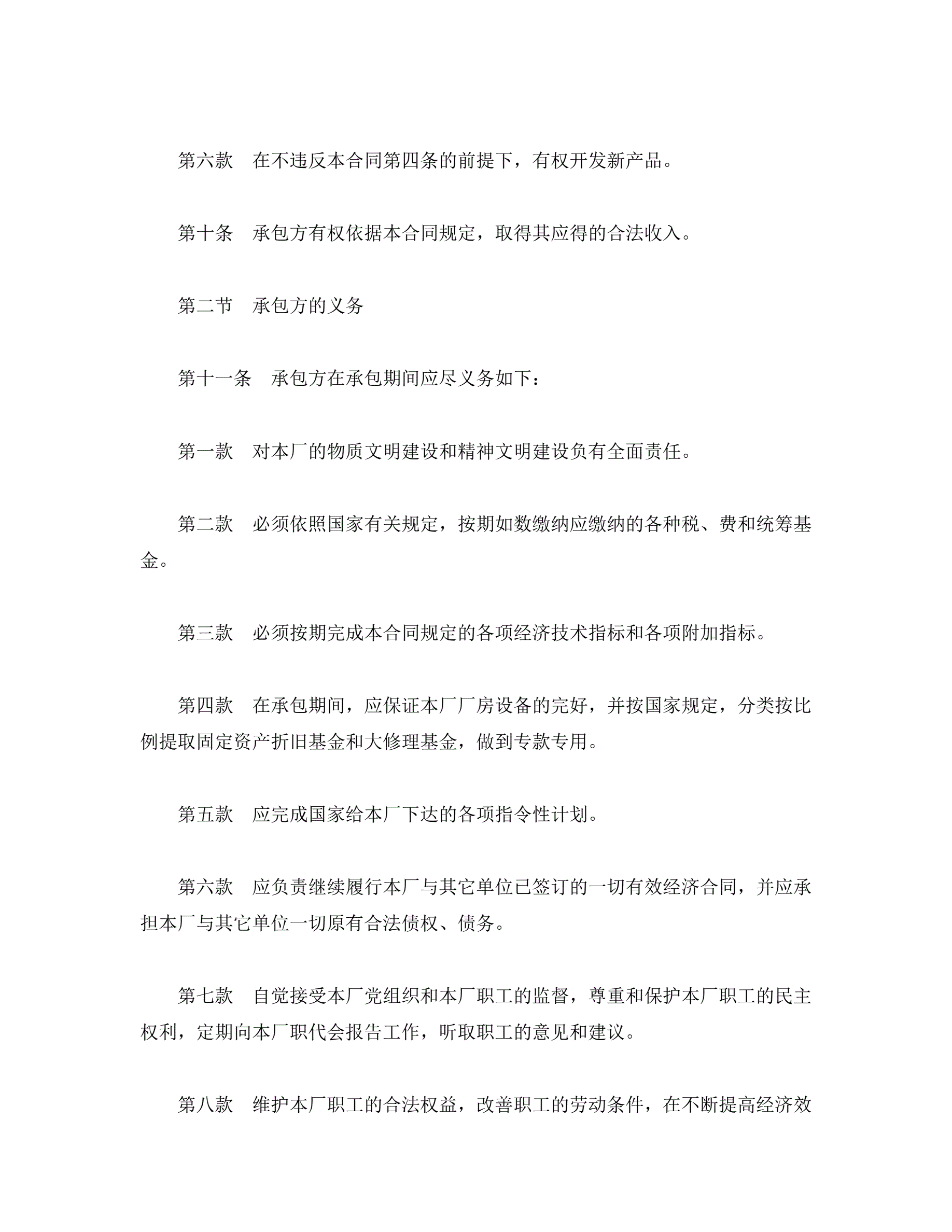 承包合同书(企业1)