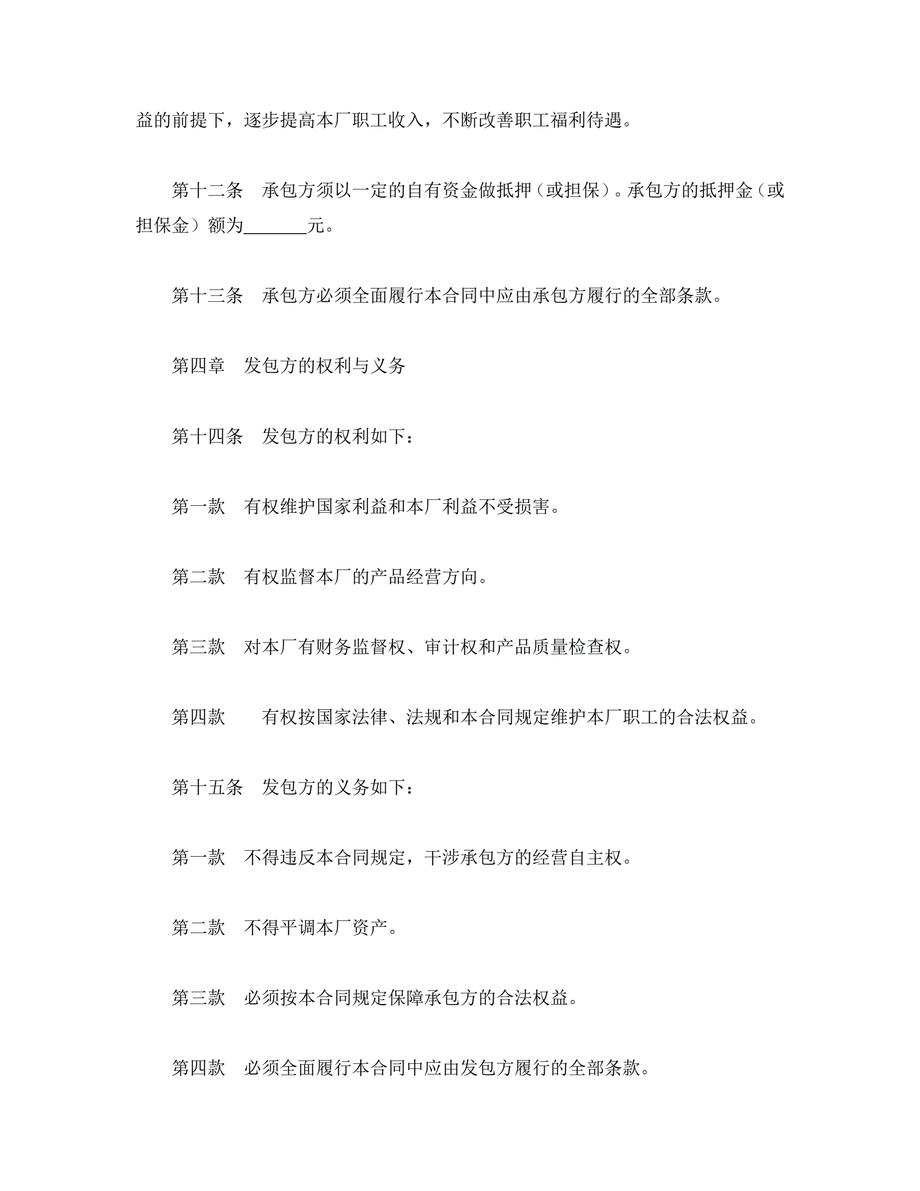 >承包合同书(企业1)