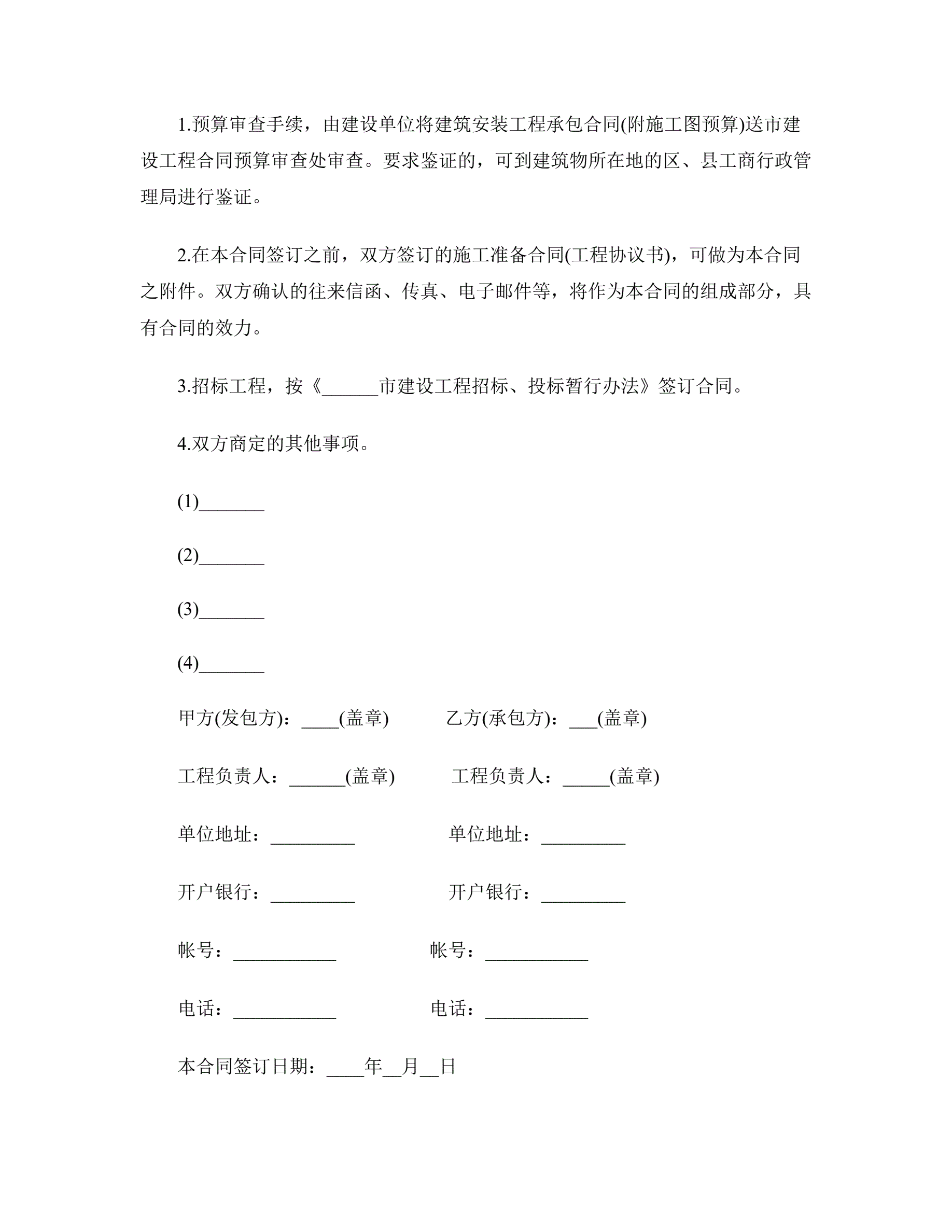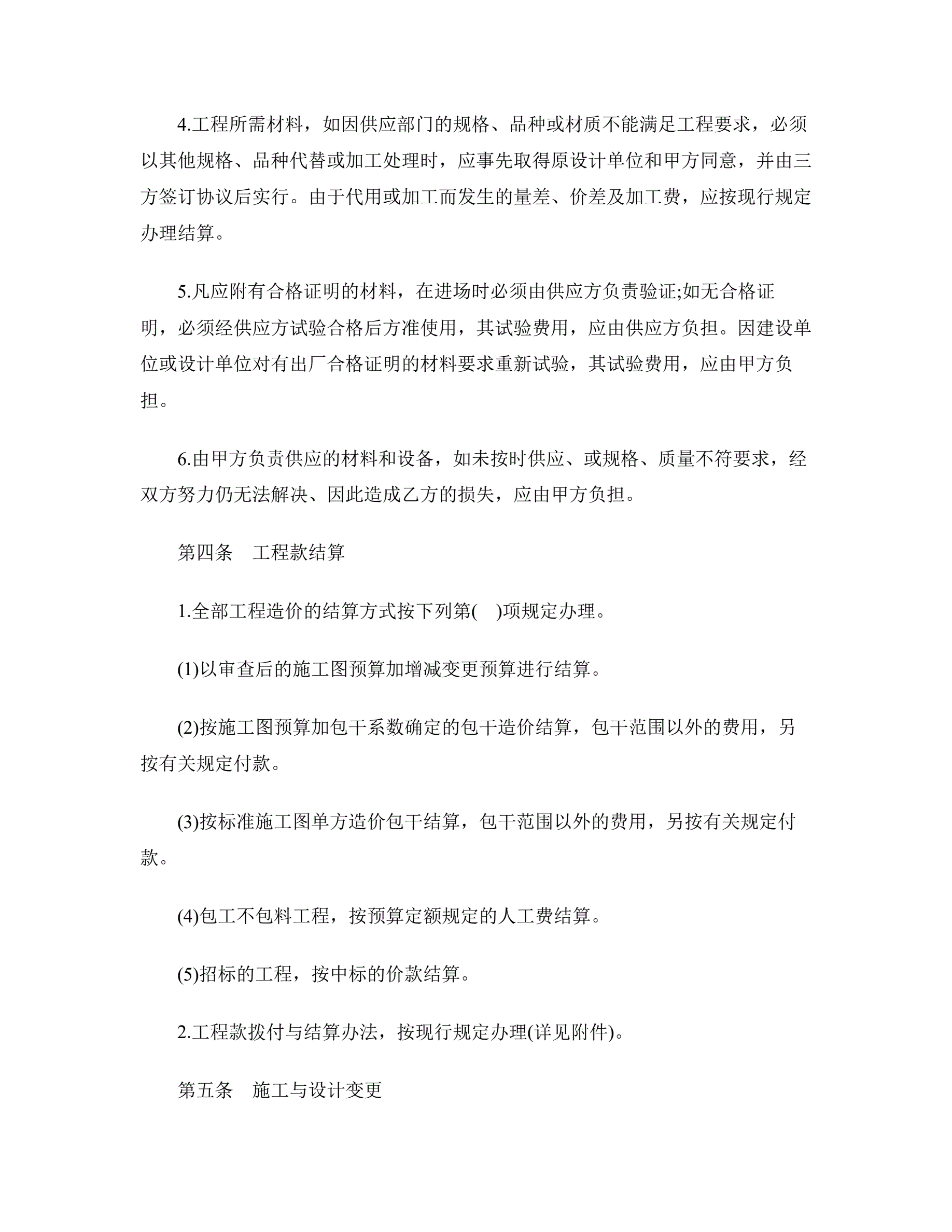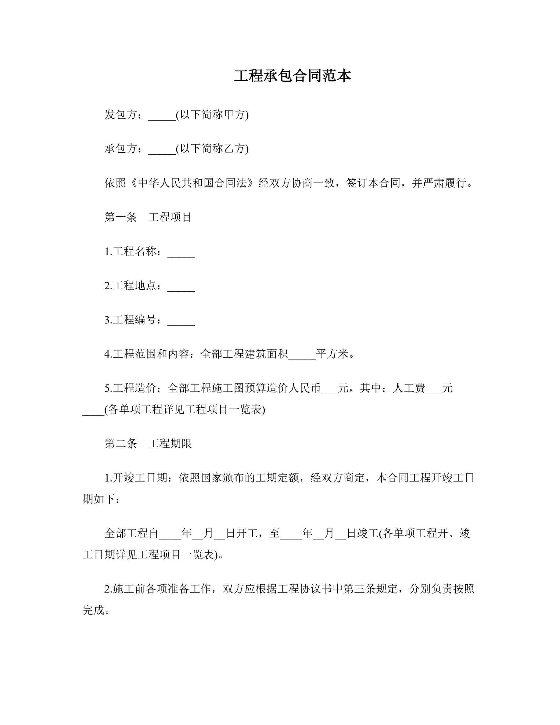 工程承包合同范本