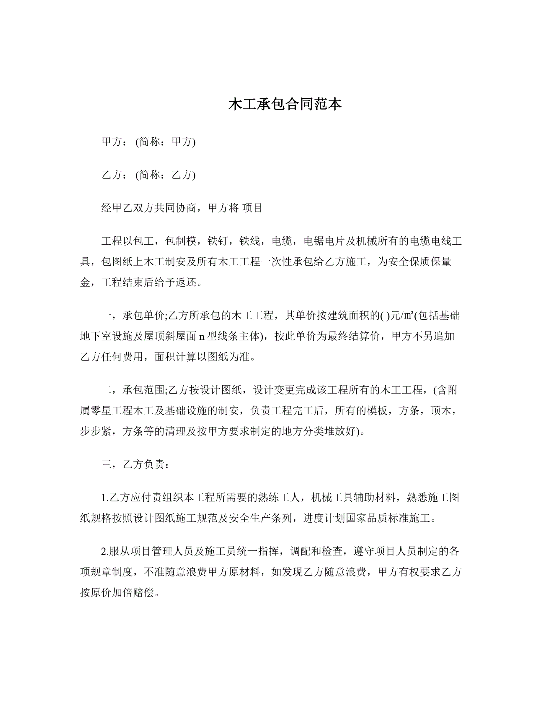 >木工承包合同范本