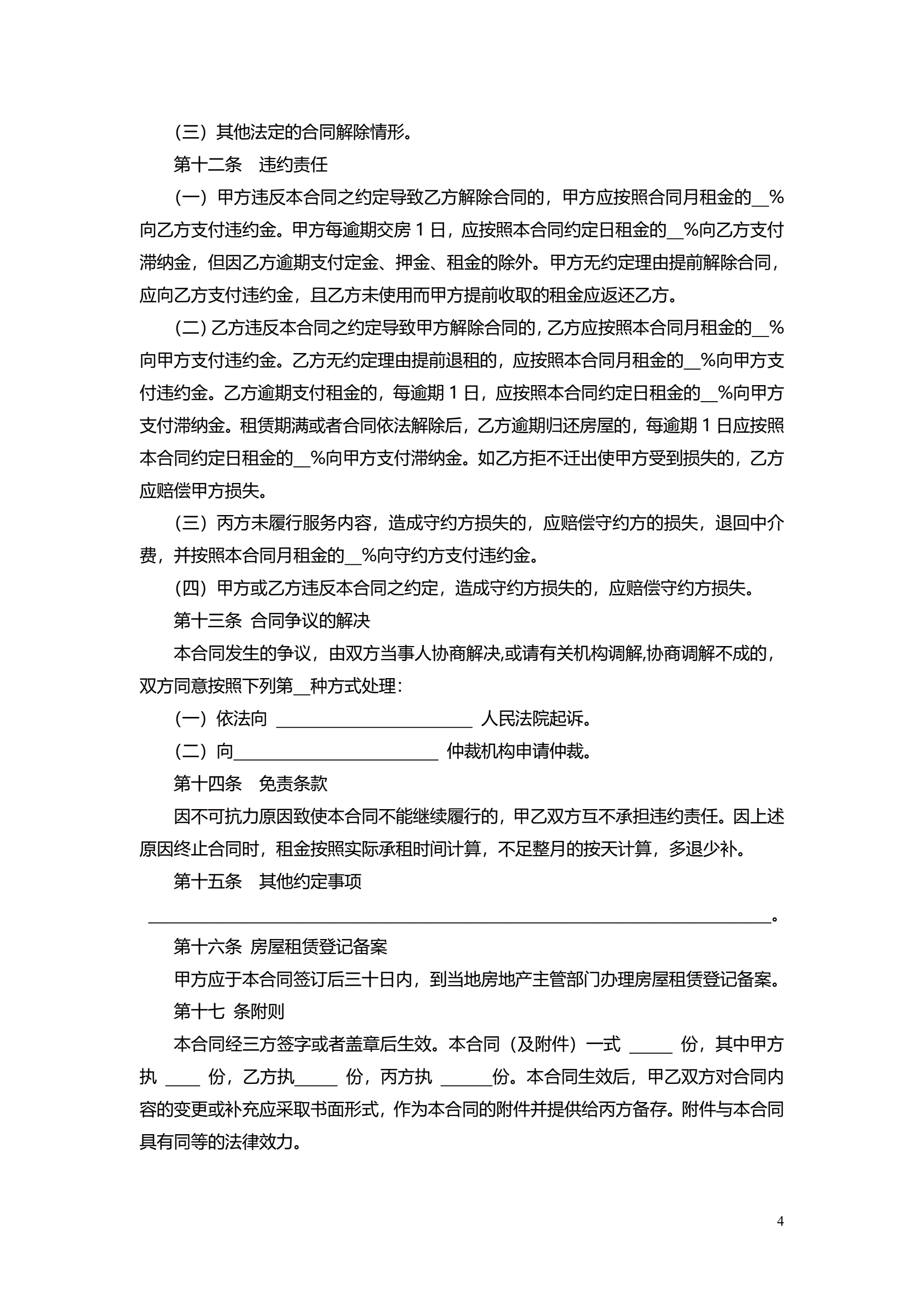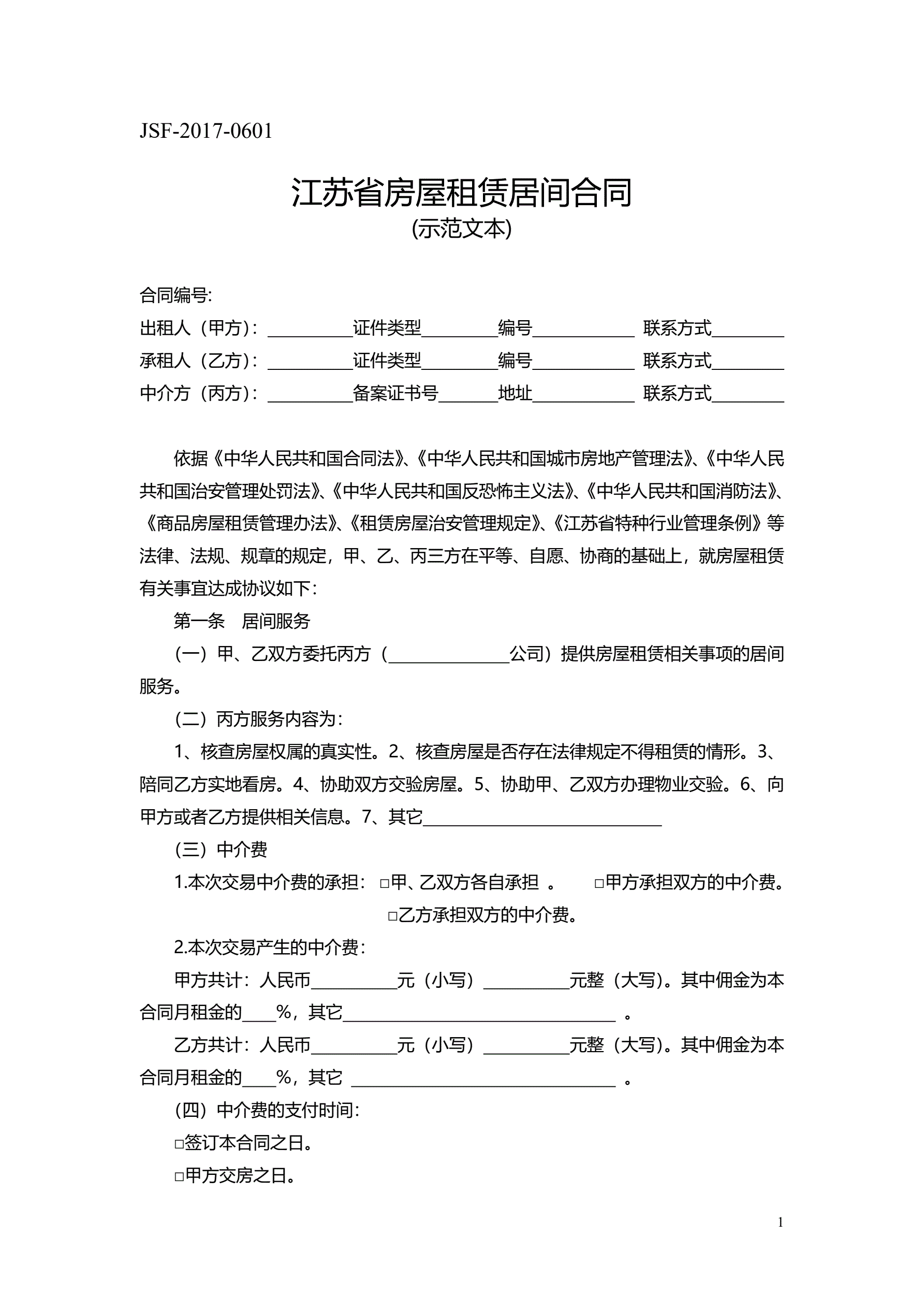 >江苏省房屋租赁居间合同示范文本