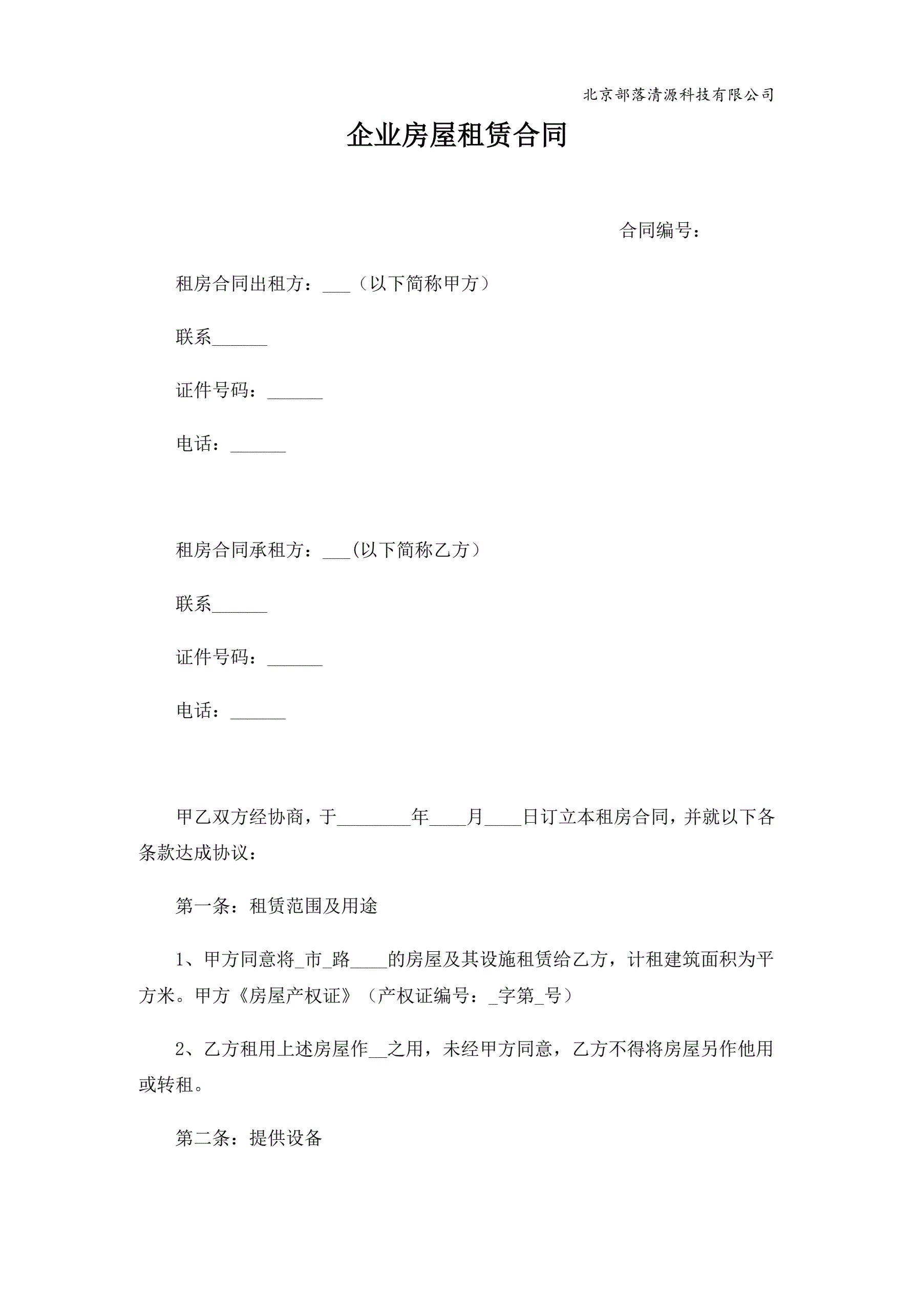 企业房屋租赁合同