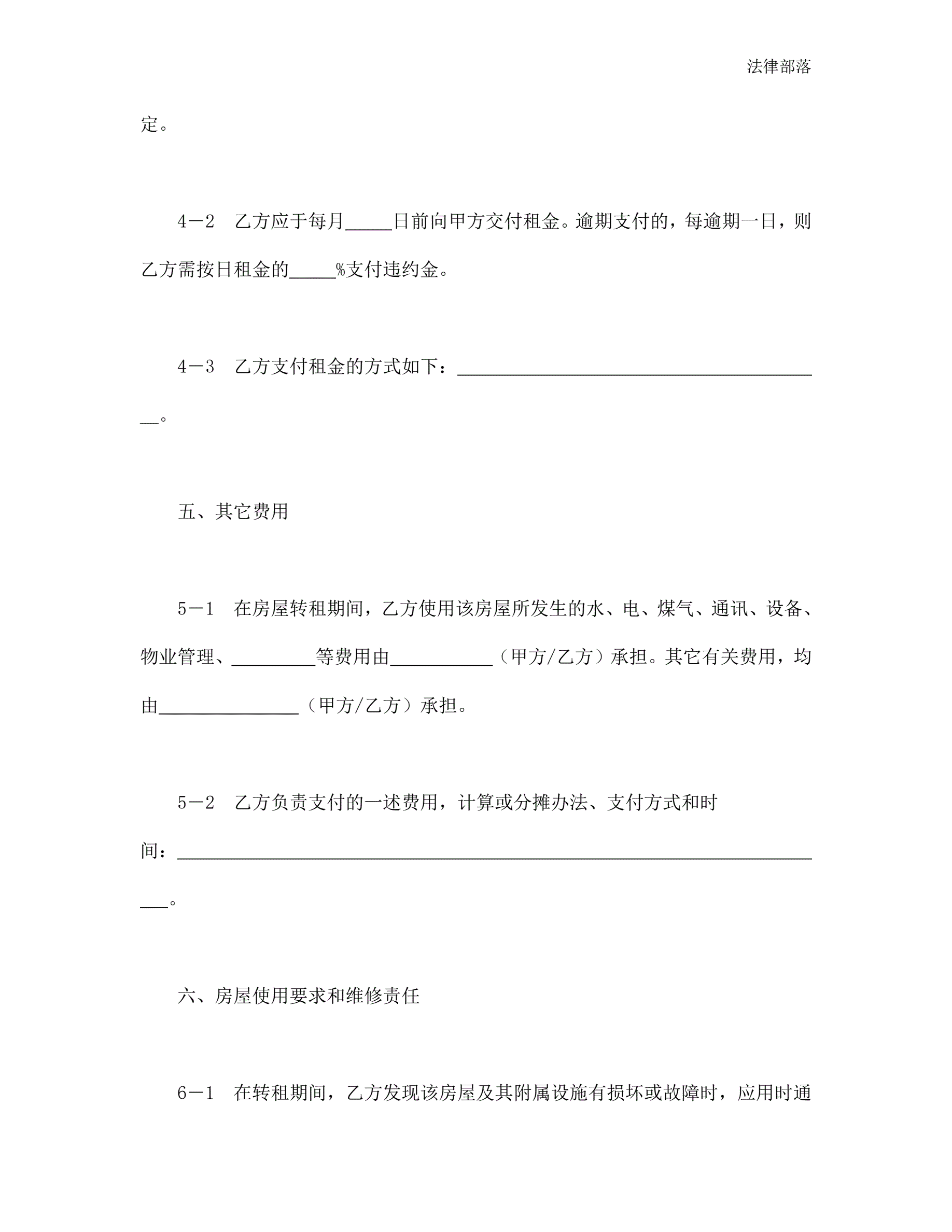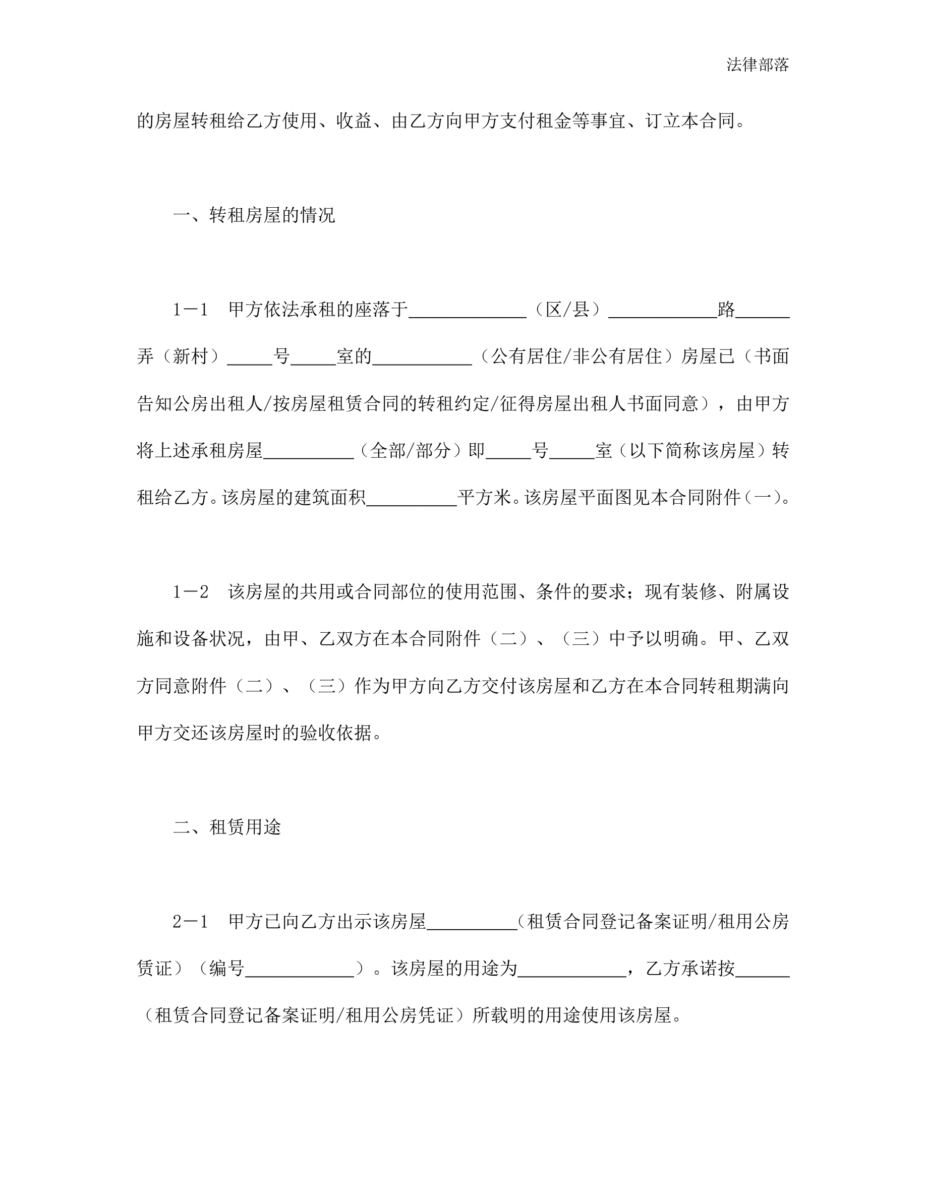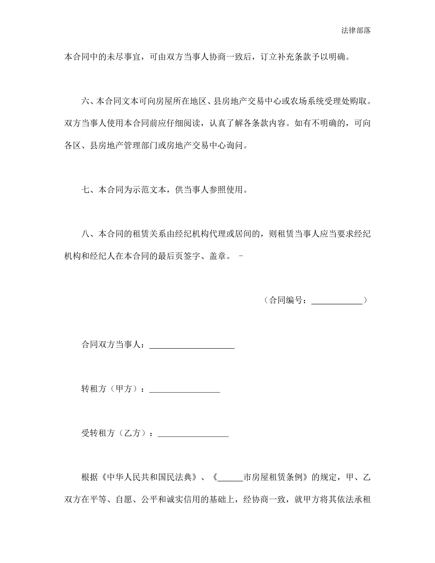 >房屋转租合同(新版)