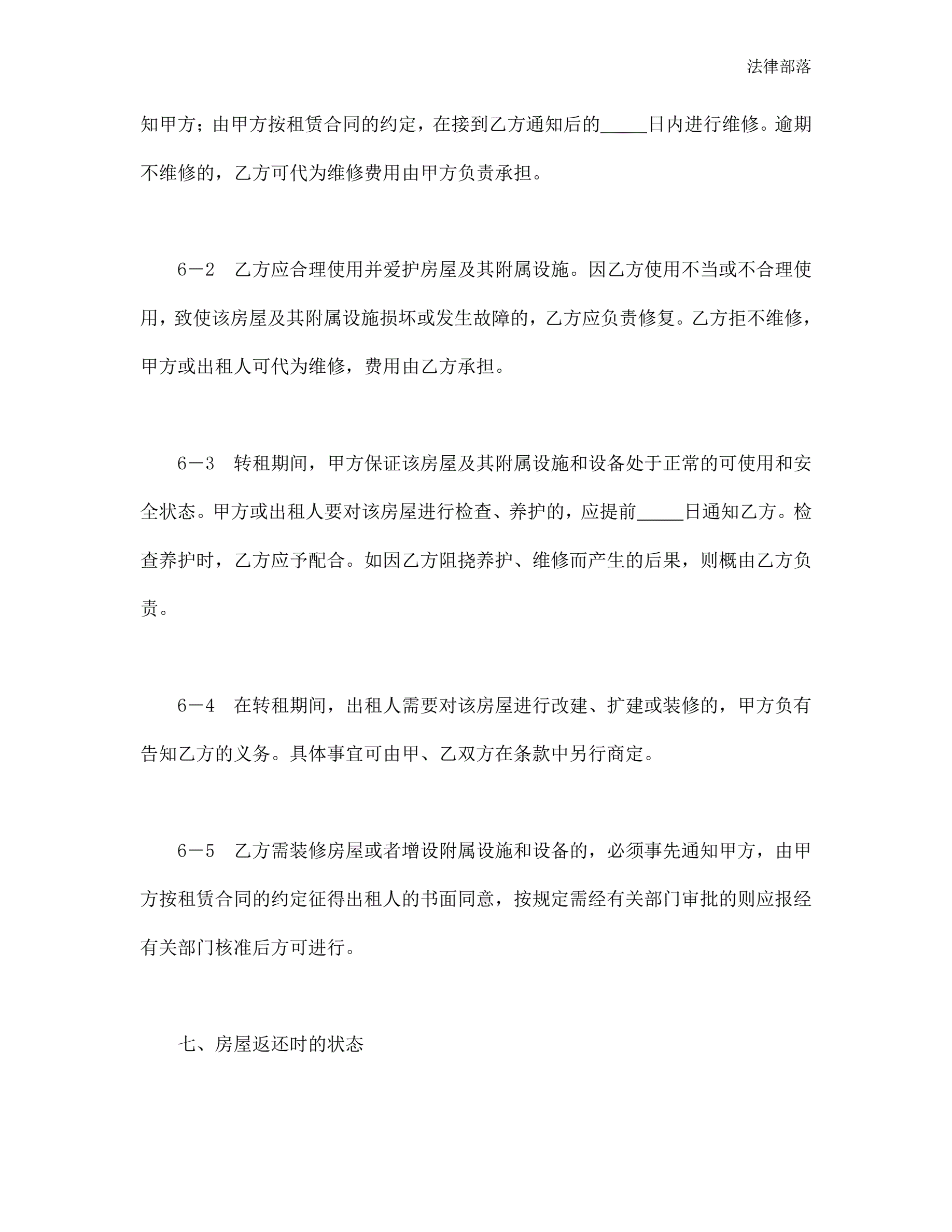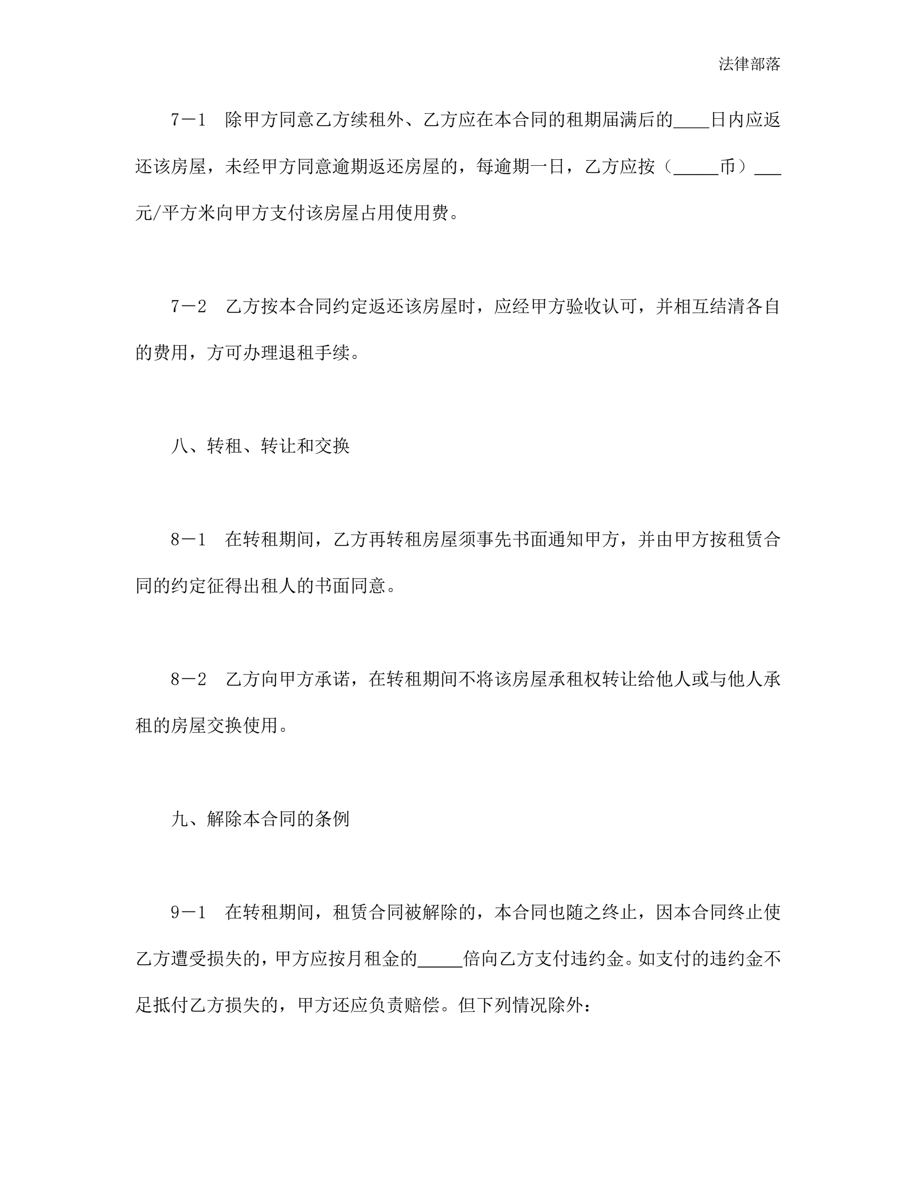 房屋转租合同(新版)