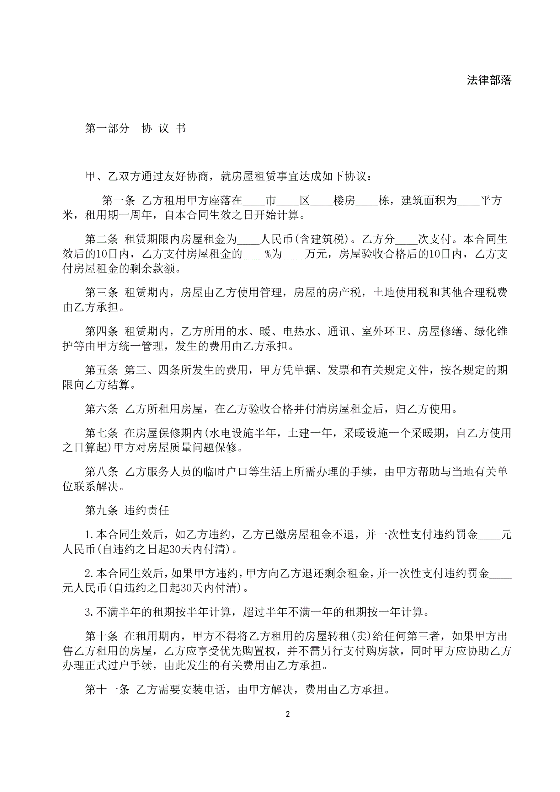 房屋租赁合同(通用)