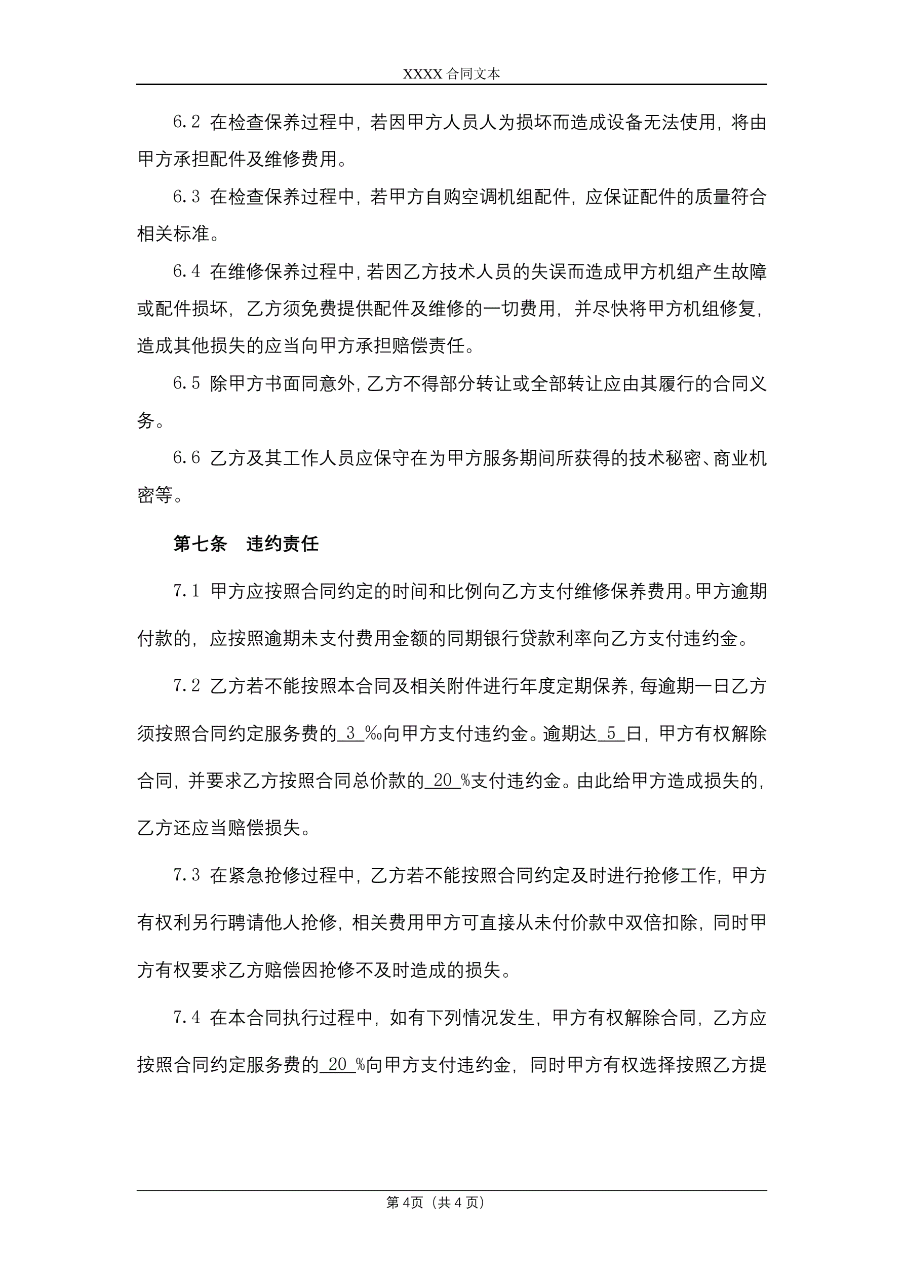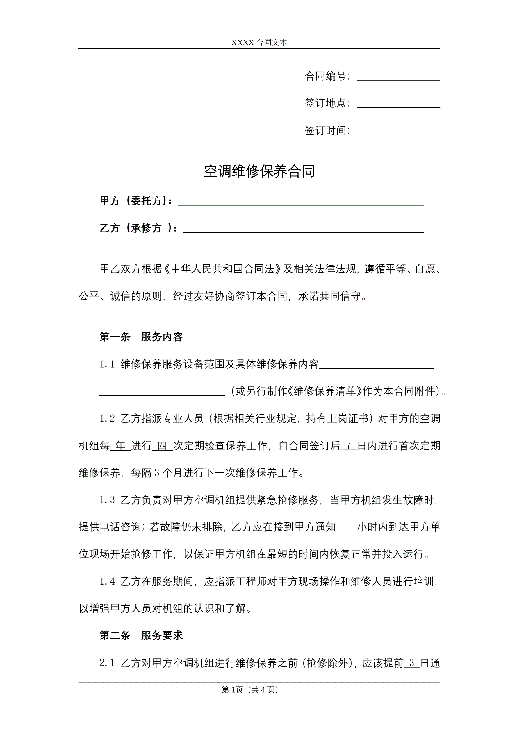 >空调维修保养合同