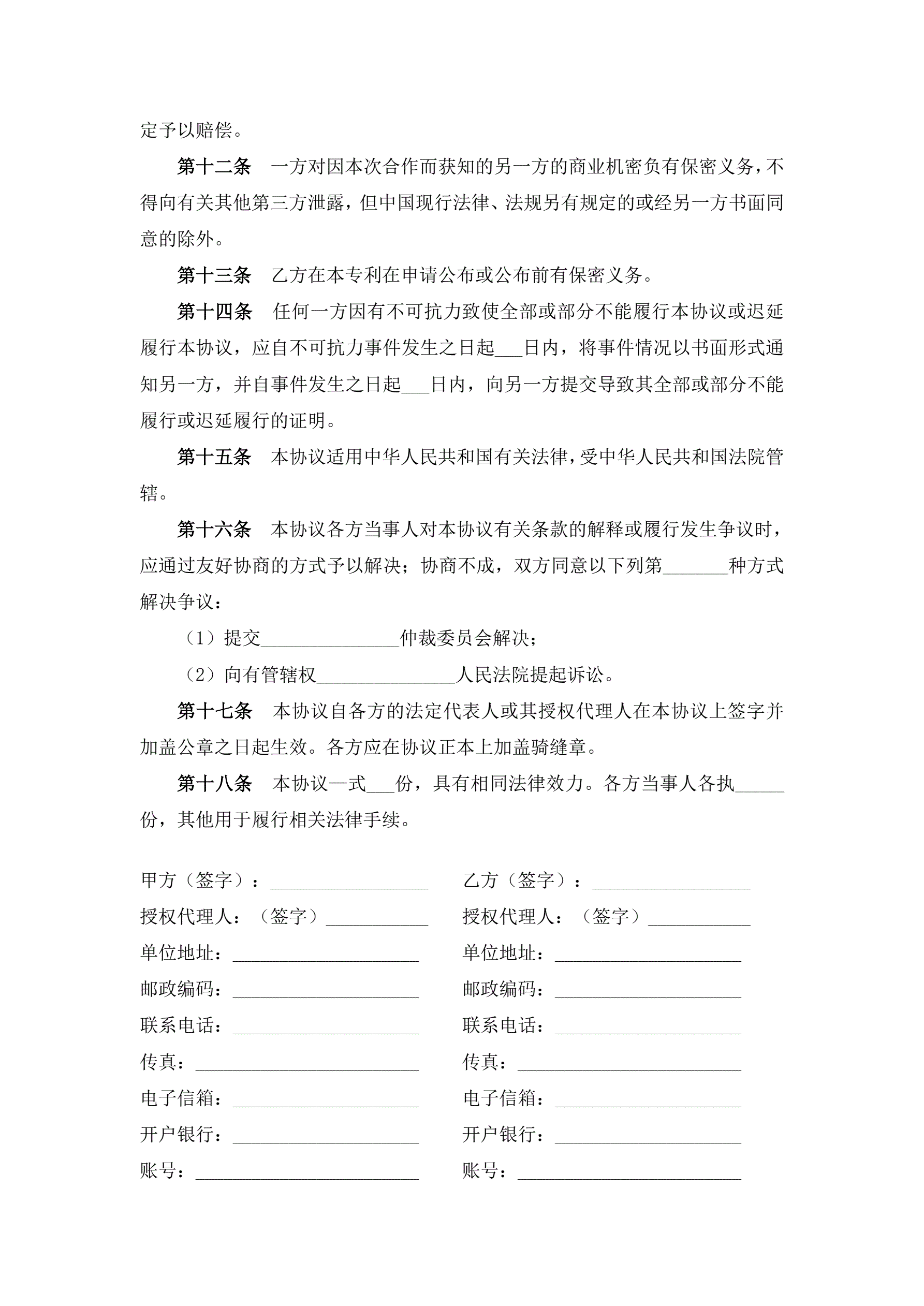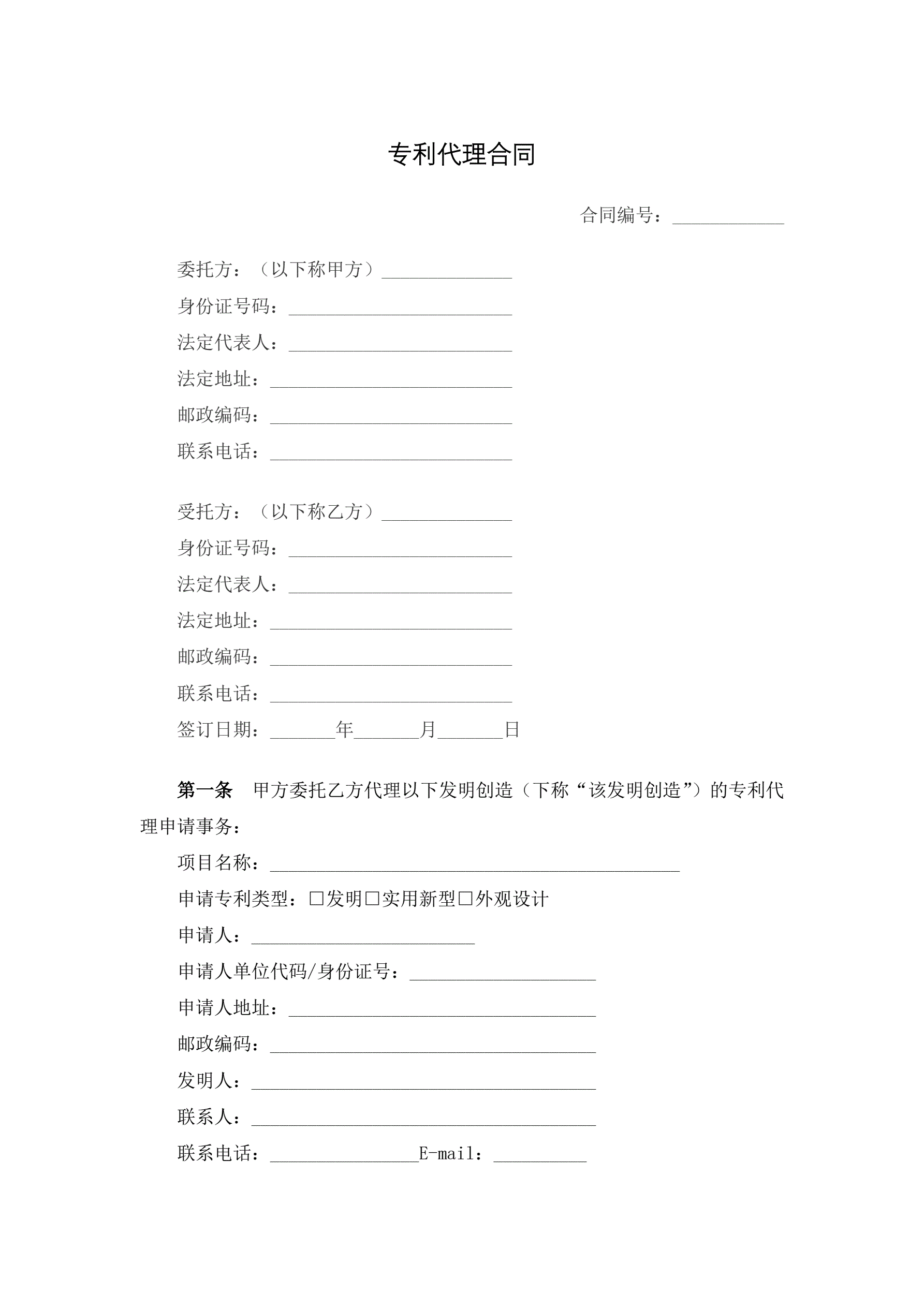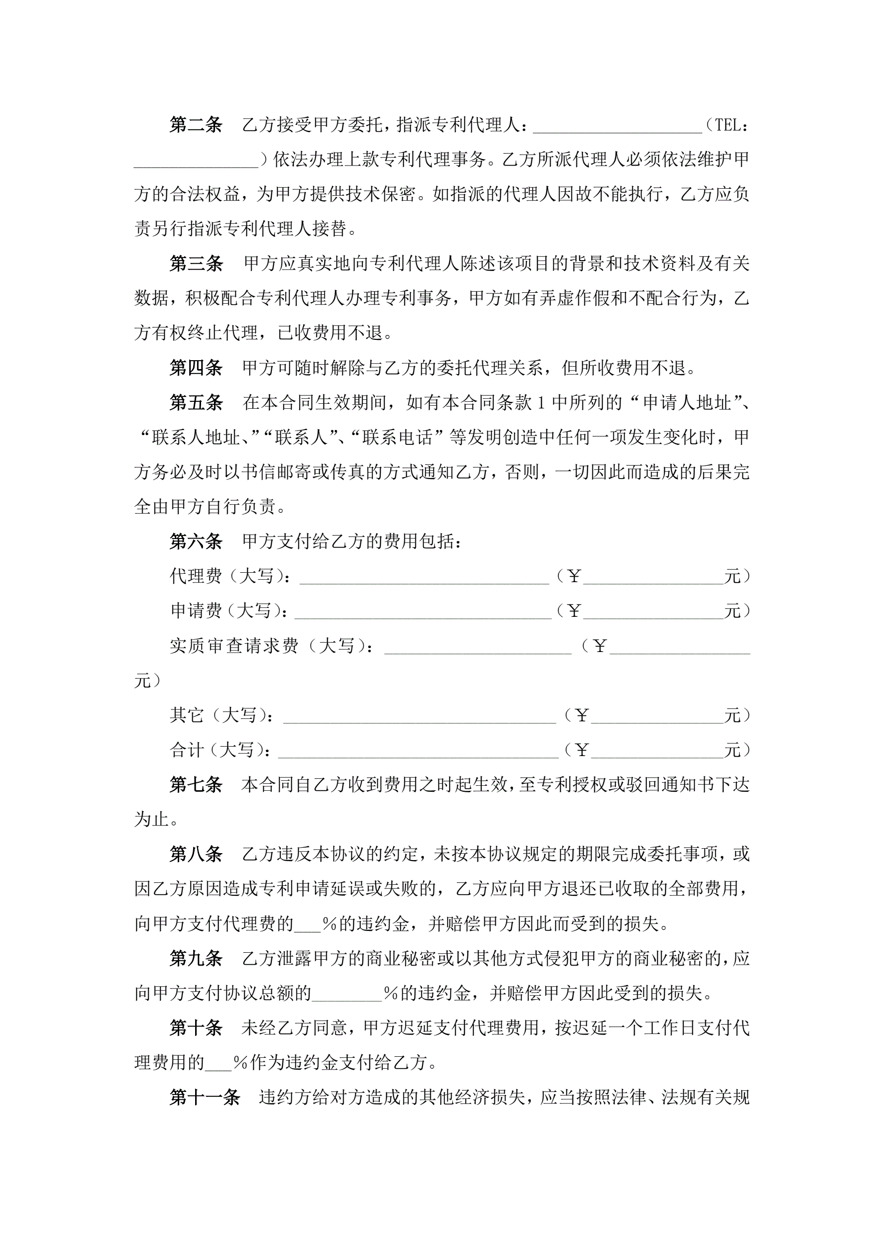 专利代理合同