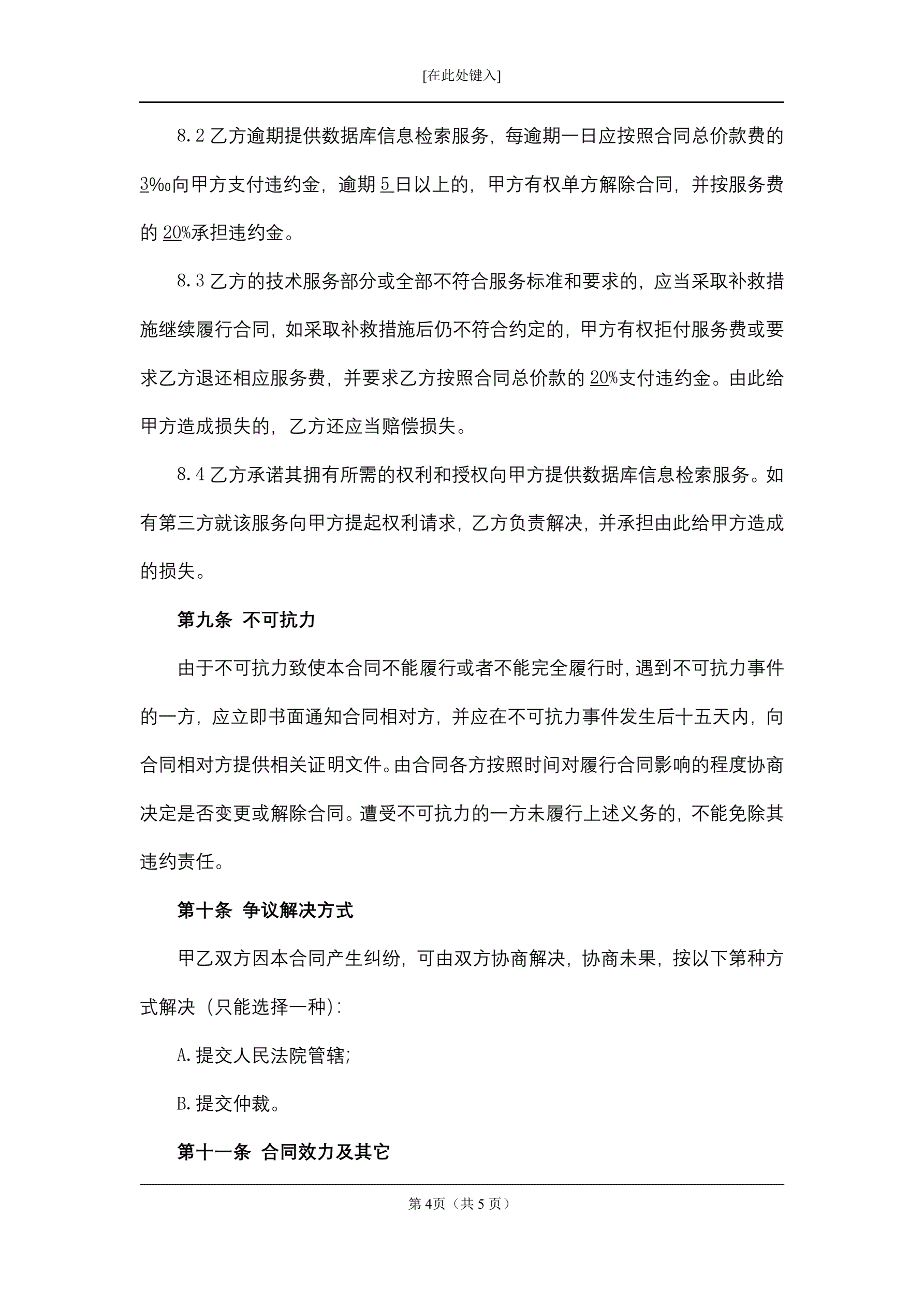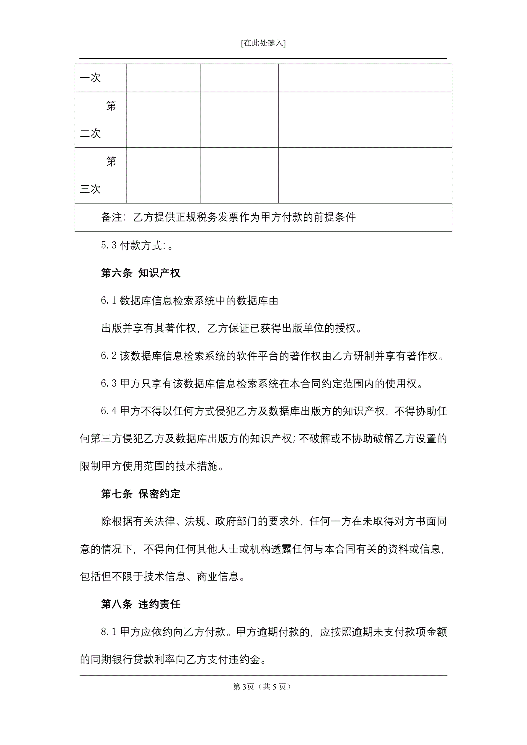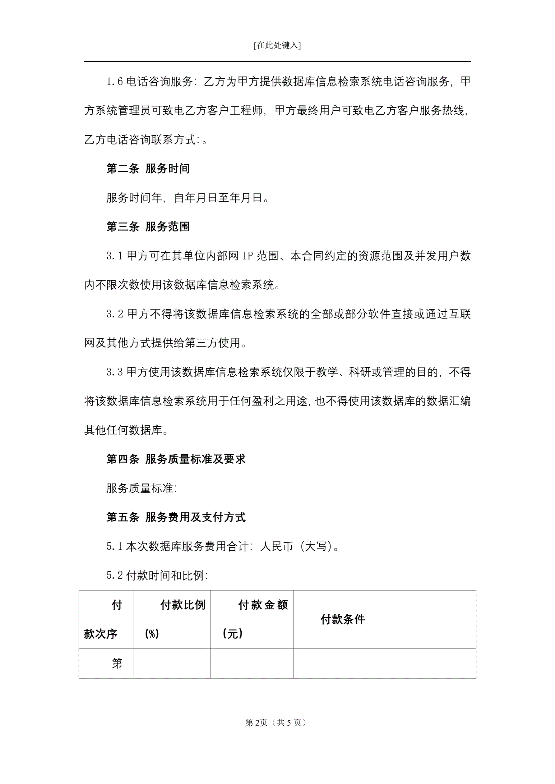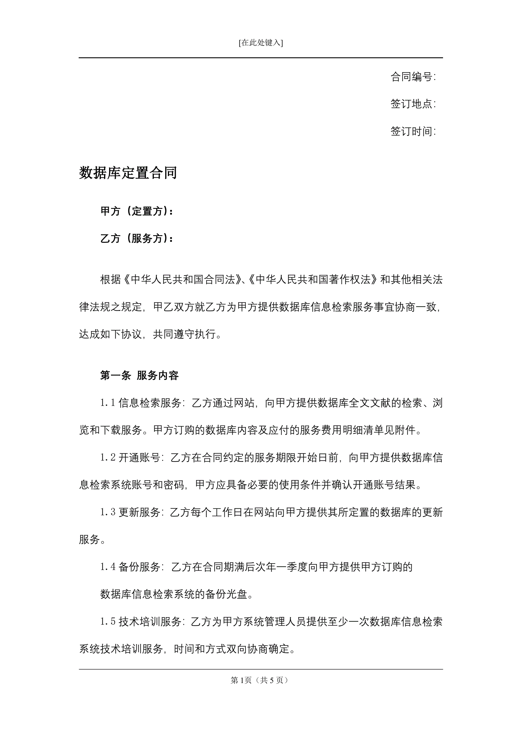 数据库定置合同