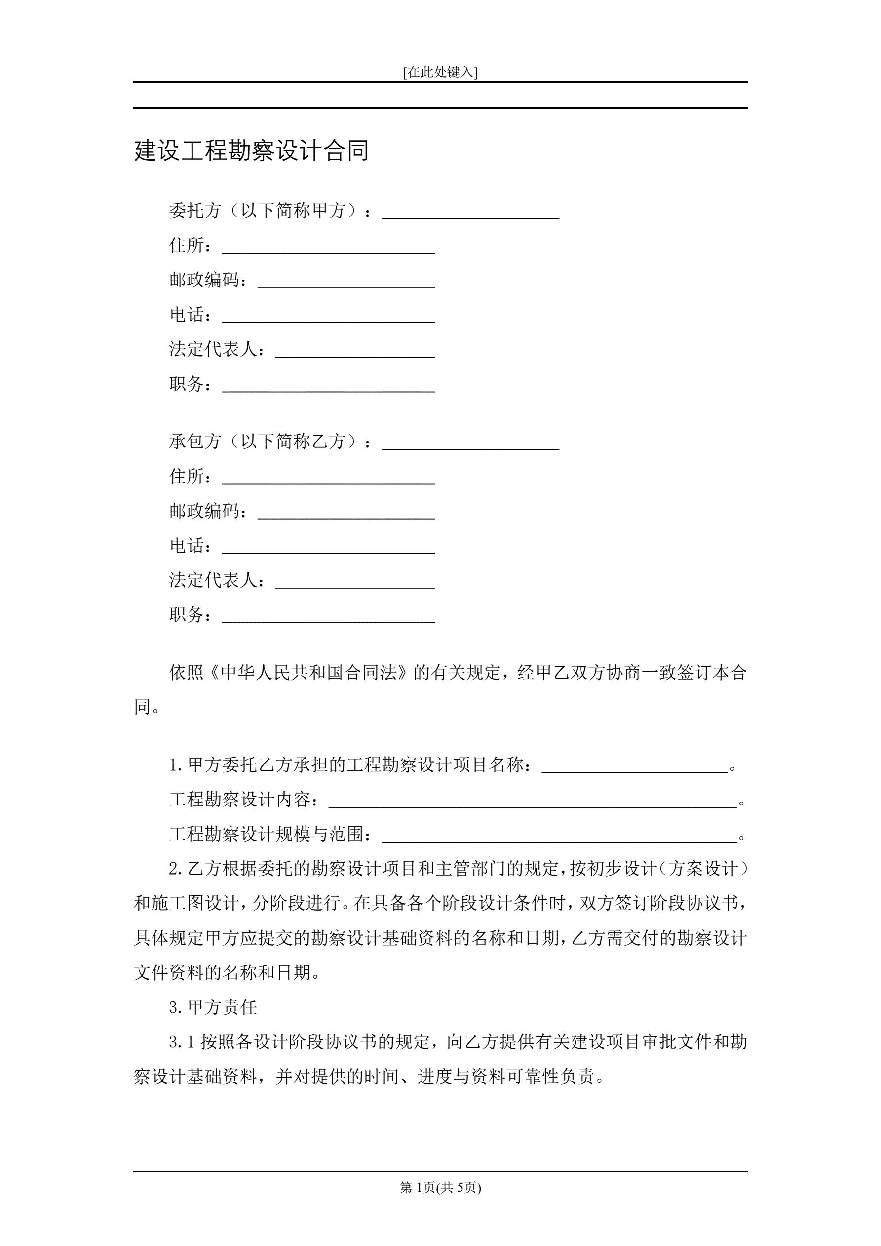 建设工程勘察设计合同