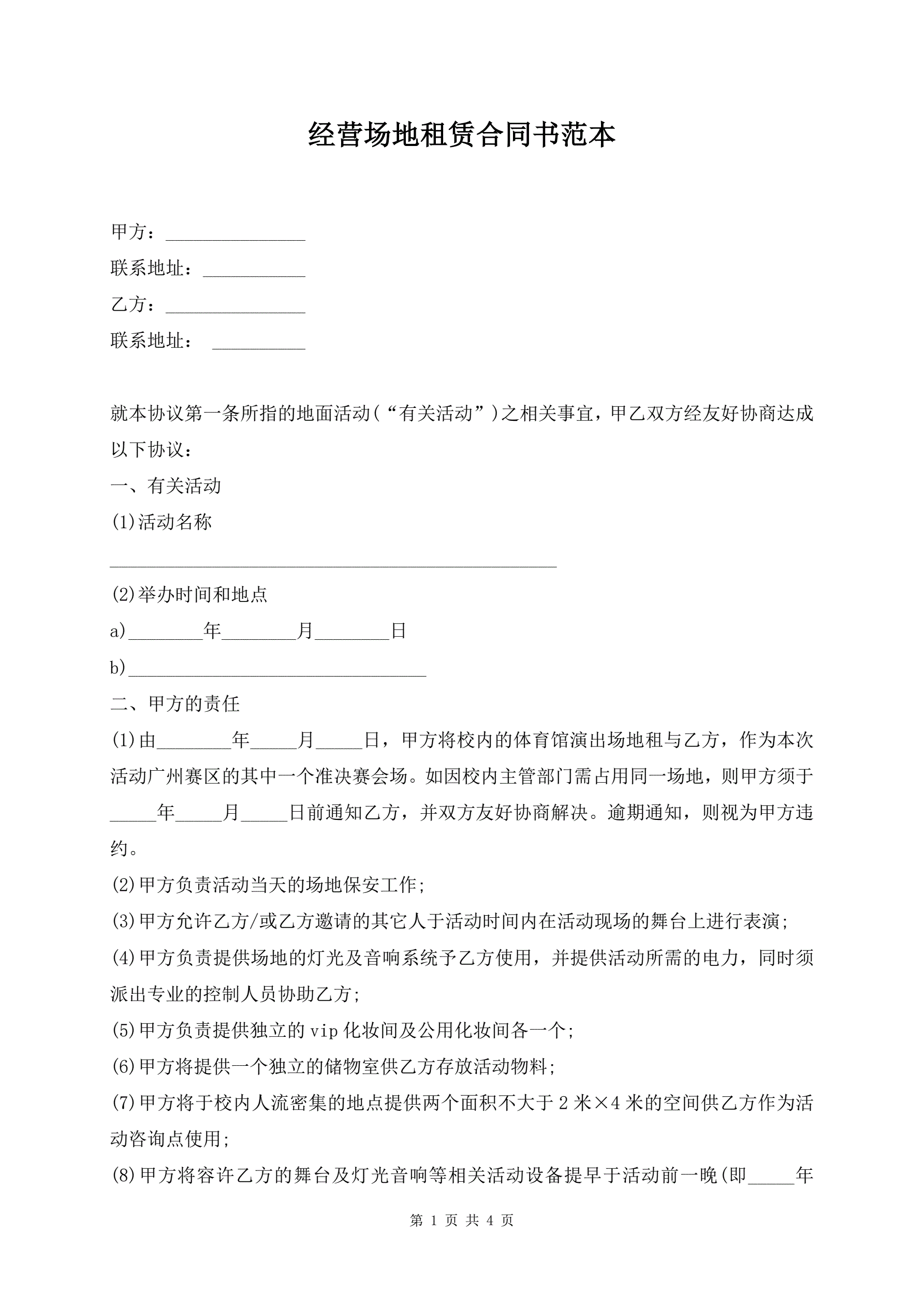 经营场地租赁合同书范本