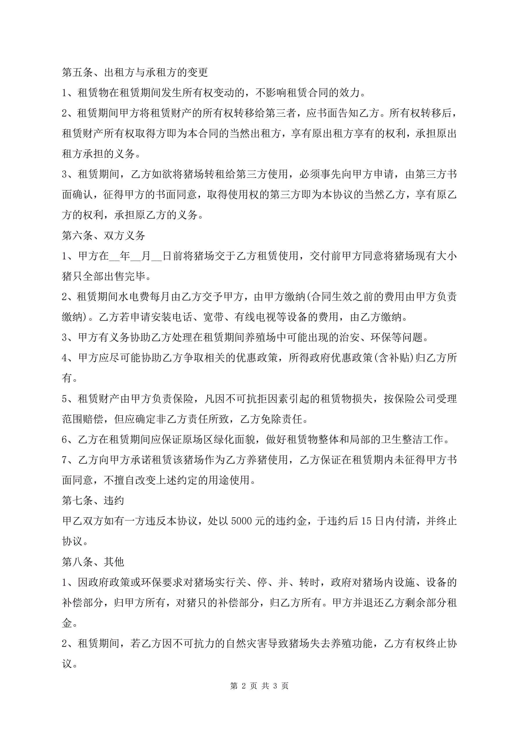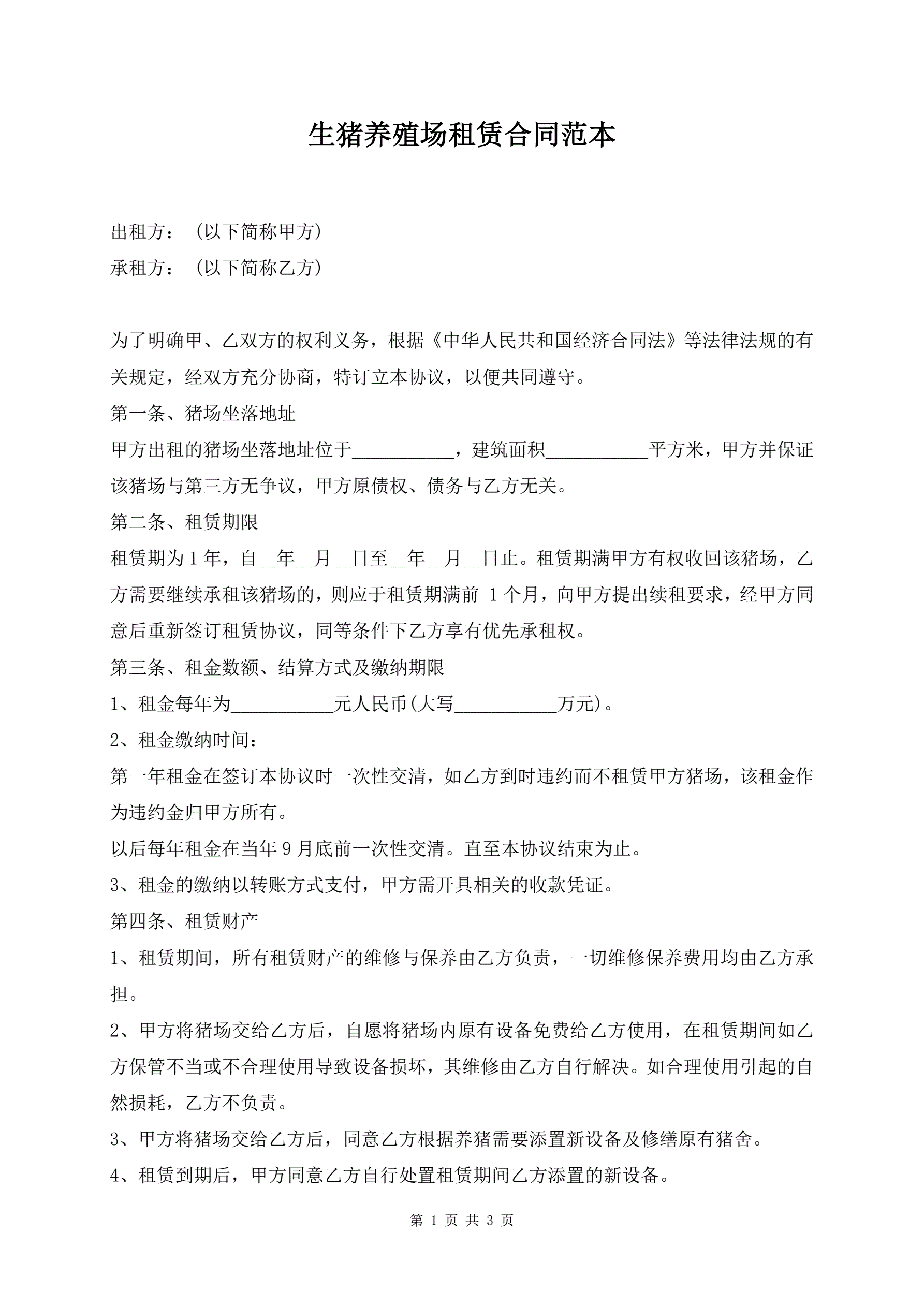 生猪养殖场租赁合同范本