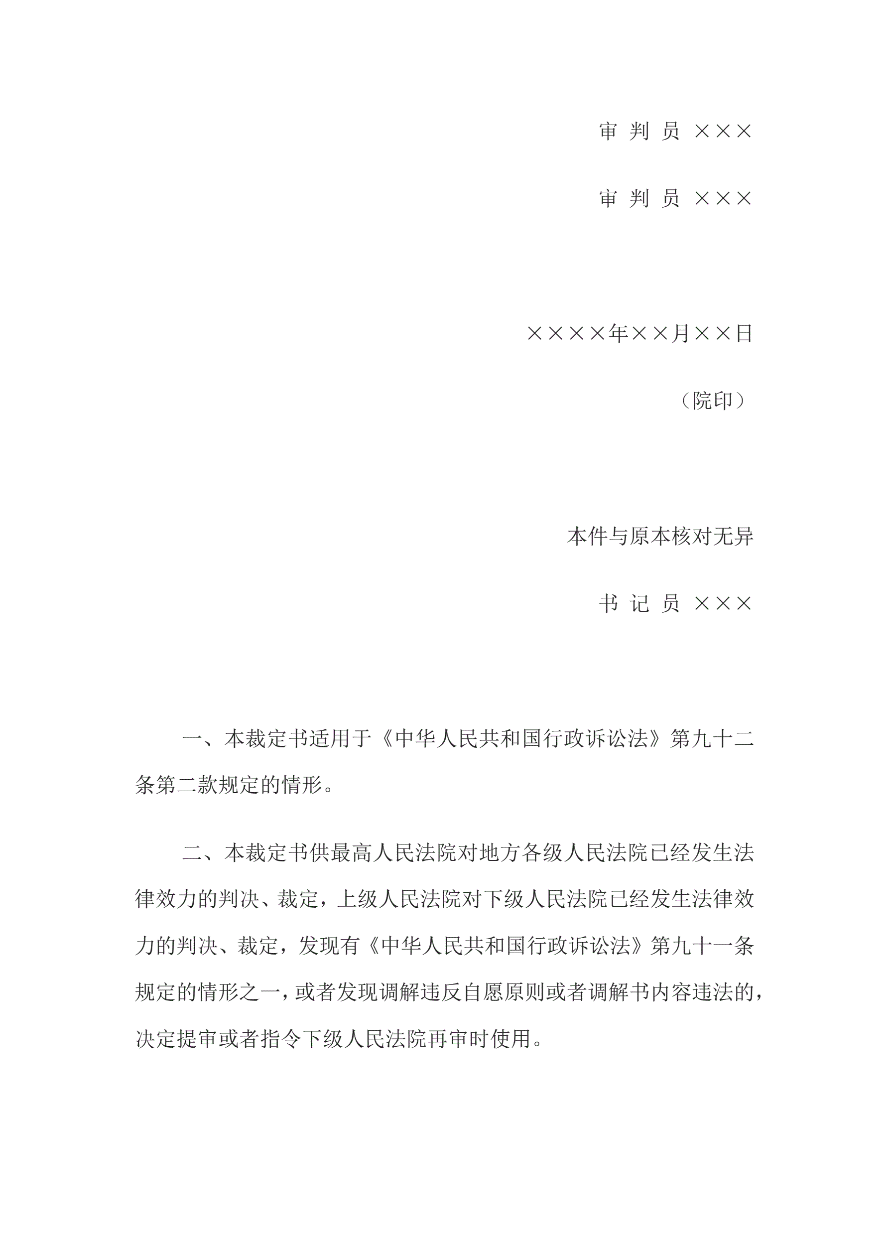 合同名称:行政裁定书(依职权提审或者指令下级法院再审用)