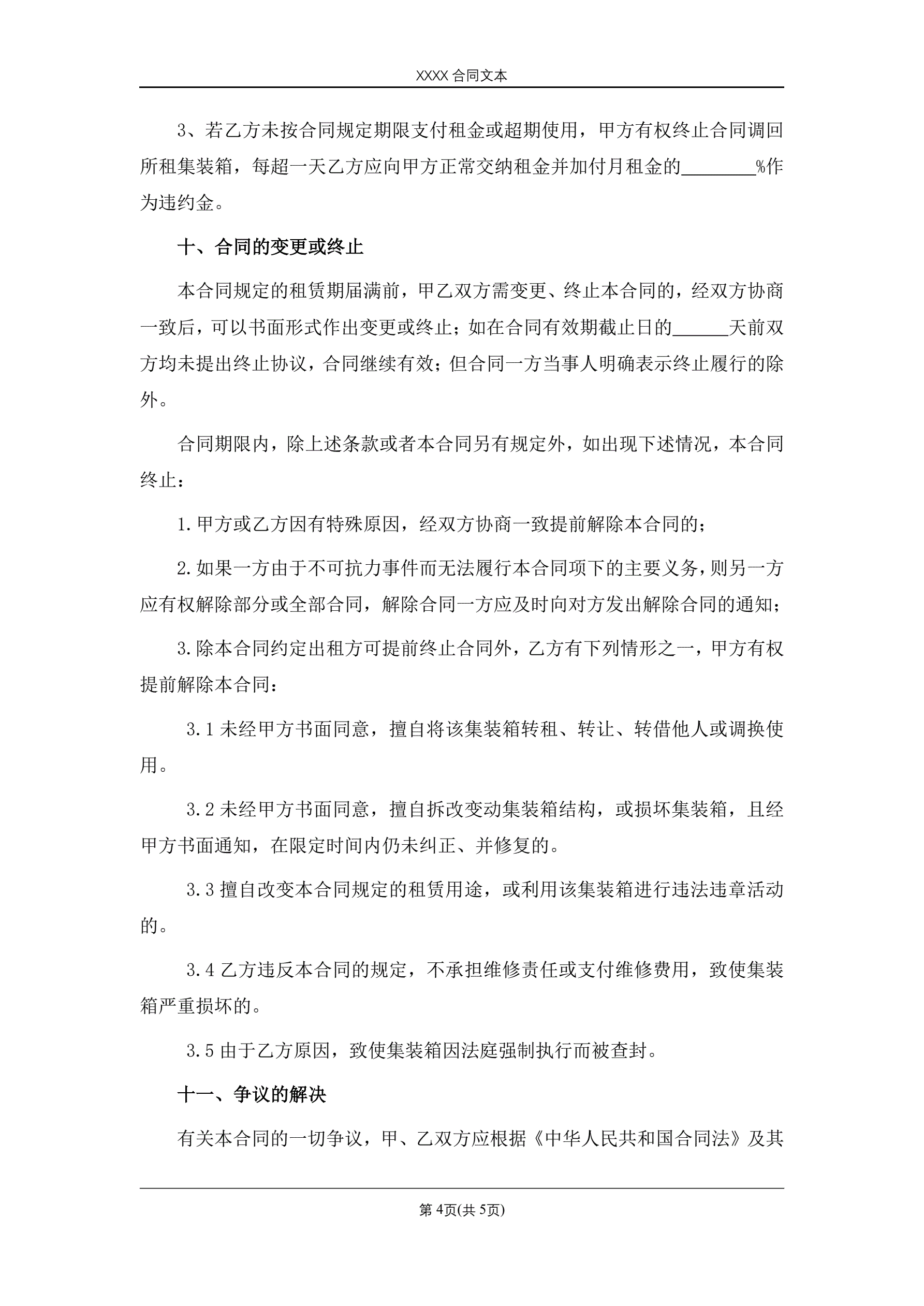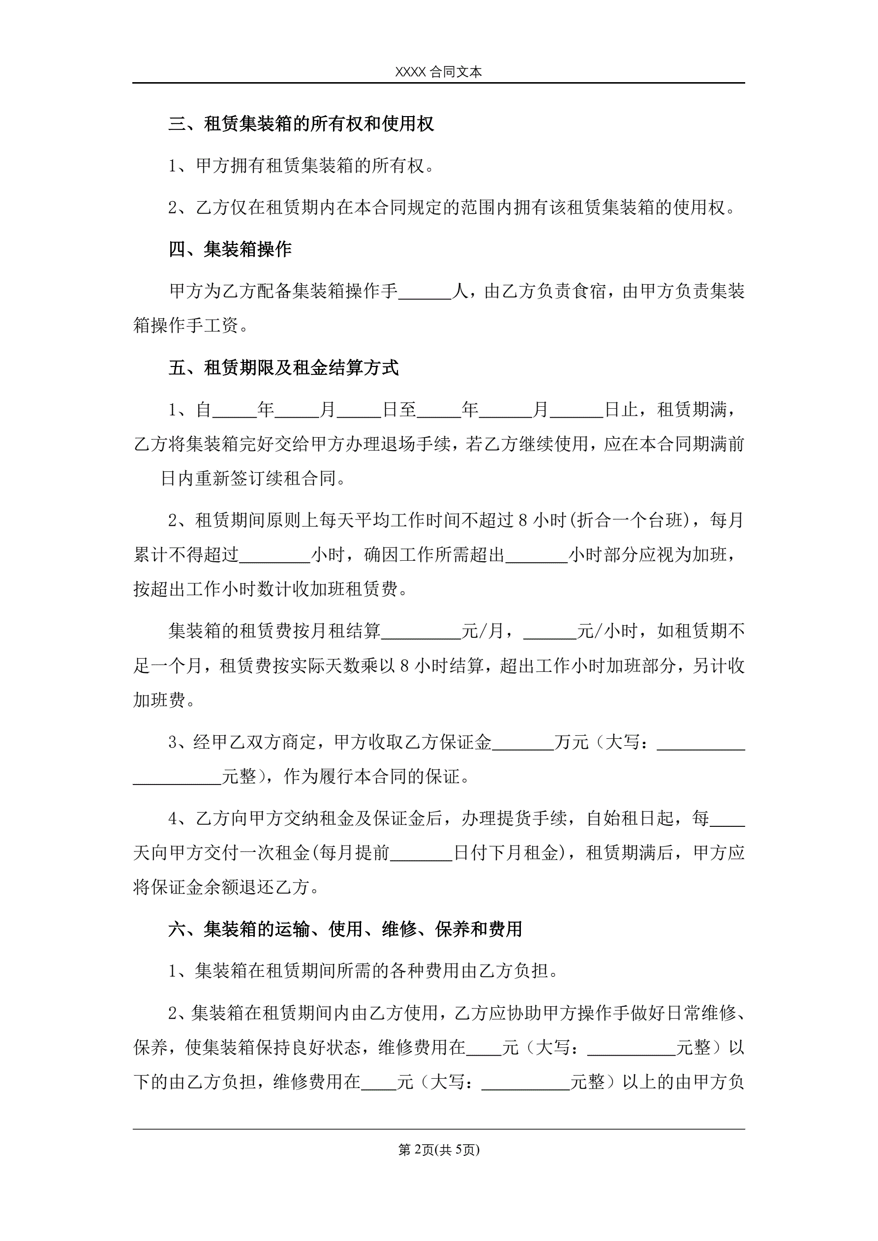 >集装箱租赁合同