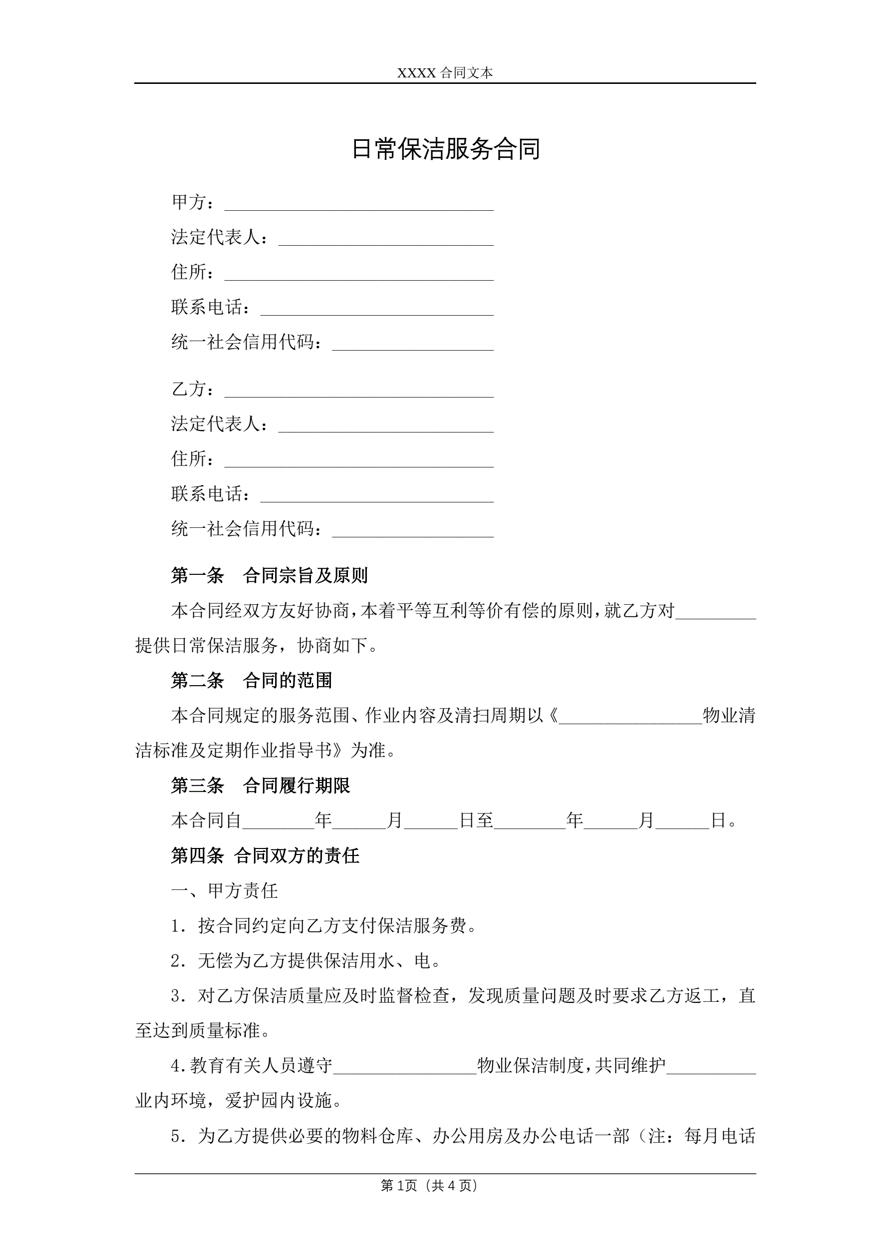 日常保洁服务合同